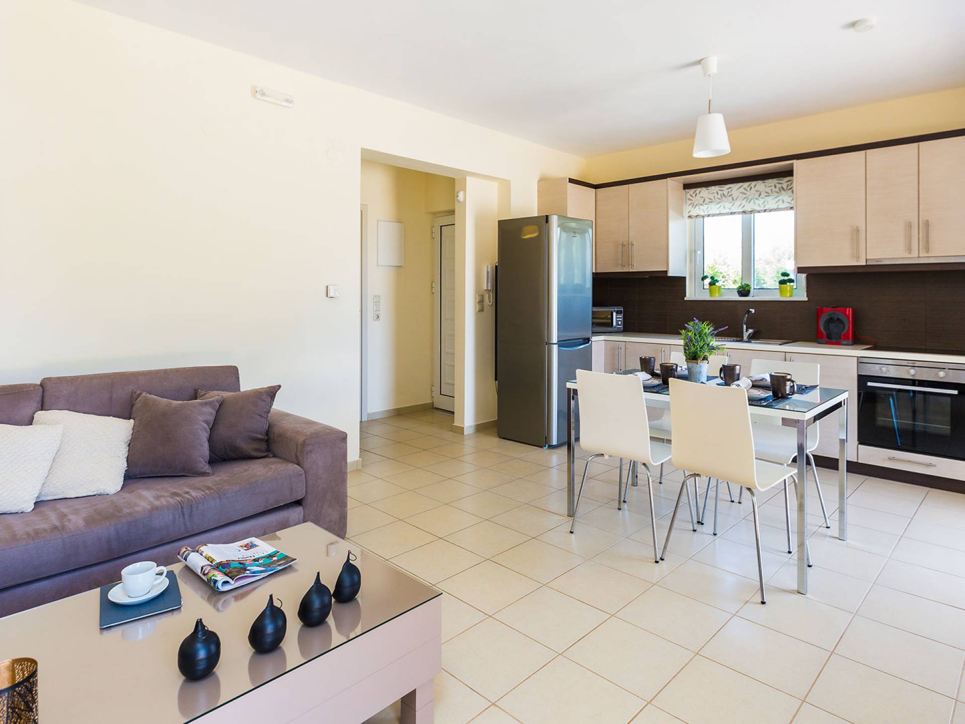 Nonostante l’atmosfera appartata, Loutraki dista solo 20 minuti dal centro storico di Chania, una delle città più affascinanti del Mediterraneo. Passeggiate tra vicoli veneziani, cenate sul porto antico e scoprite botteghe artigianali. Poi tornate alla quiete della vostra villa, dove l’unico suono sarà la brezza marina.