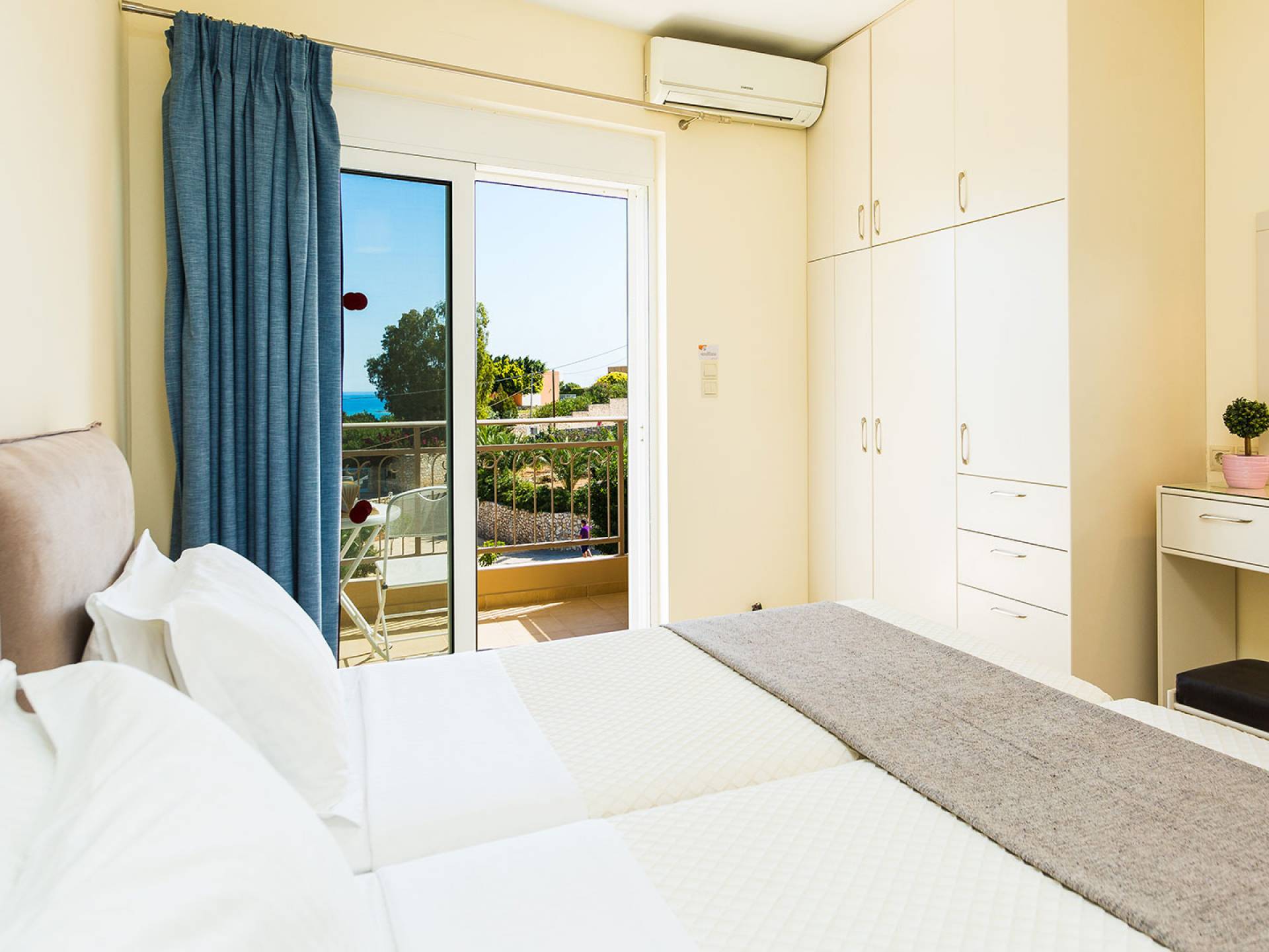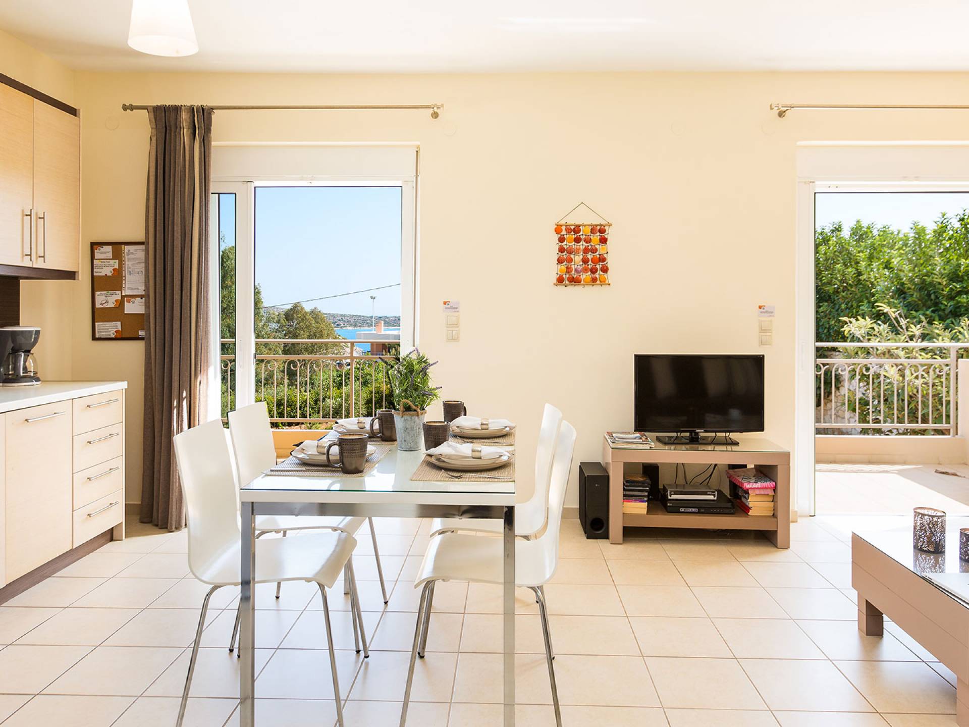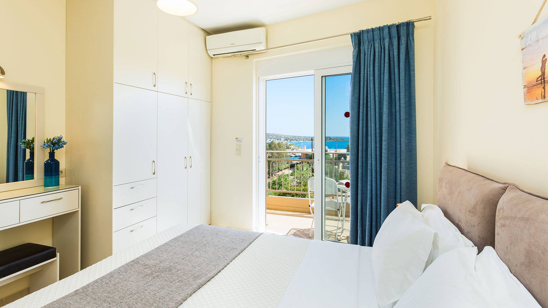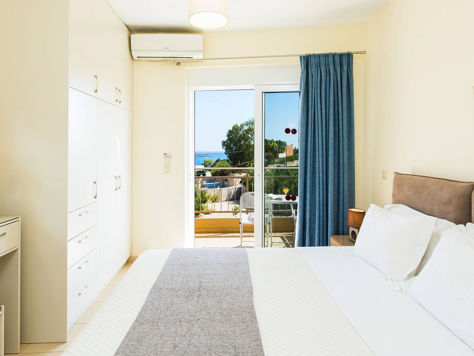 A pochi minuti di auto si trova Marathi, una spiaggia incantevole e leggermente più vivace. Le sue due baie a mezzaluna sono riparate dal vento, rendendo il mare calmo e sicuro tutto l’anno. È il luogo ideale per nuotare, fare snorkeling o paddleboard. Le taverne sul mare servono pesce fresco, meze tradizionali e ottimi vini locali, con una splendida vista sulla baia di Souda.