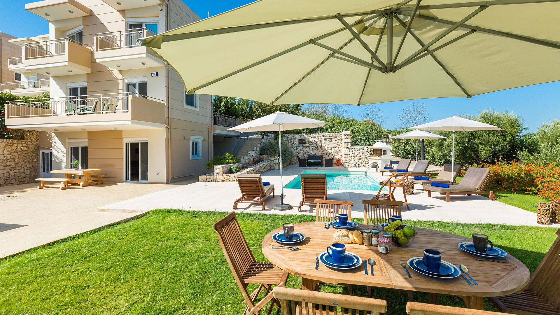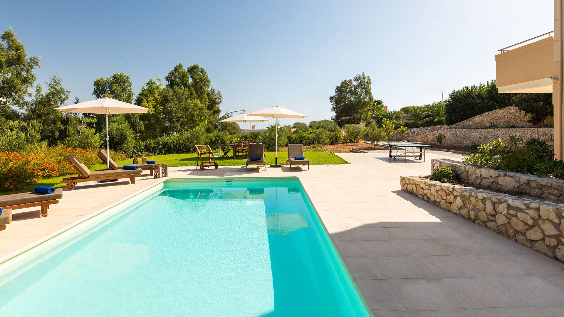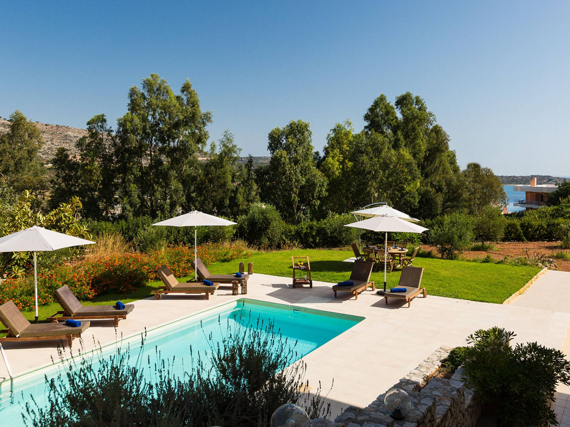Le ville a Loutraki sono progettate per integrarsi armoniosamente con l’ambiente naturale. Molte offrono piscine private, terrazze ombreggiate con vista mare e, in alcuni casi, accesso diretto alla spiaggia. Ogni momento qui diventa speciale: dal caffè mattutino con vista al tramonto con un calice di vino cretese.