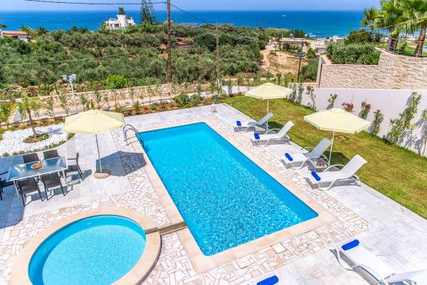 Vaya Villa Chania: attraversando le porte del patio dalle camere da letto, si trova la piscina privata circondata da una spaziosa terrazza e aiuole, con una piccola area erbosa. C'è un barbecue portatile e tavolo da pranzo esterno e sedie per cenare all'aperto mentre si guarda il tramonto. Non dimenticare i più piccoli del tuo gruppo: c'è anche una piscina separata per bambini. Entrando dalla porta d'ingresso al piano inferiore c'è un piccolo corridoio con 2 porte che conducono alle camere da letto. Una scala a chiocciola vi porta alla zona giorno con meravigliosa vista sul mare che migliorerà il vostro soggiorno. Al piano superiore, la zona giorno open space è il luogo perfetto per rilassarsi lontano dal calore del sole. Gli arredi eleganti e di buon gusto e le fresche tonalità neutre con tocchi di colore creano uno spazio davvero rilassato. I 2 balconi offrono viste sulla piscina e sul giardino con ampie viste sul Mar Egeo.
