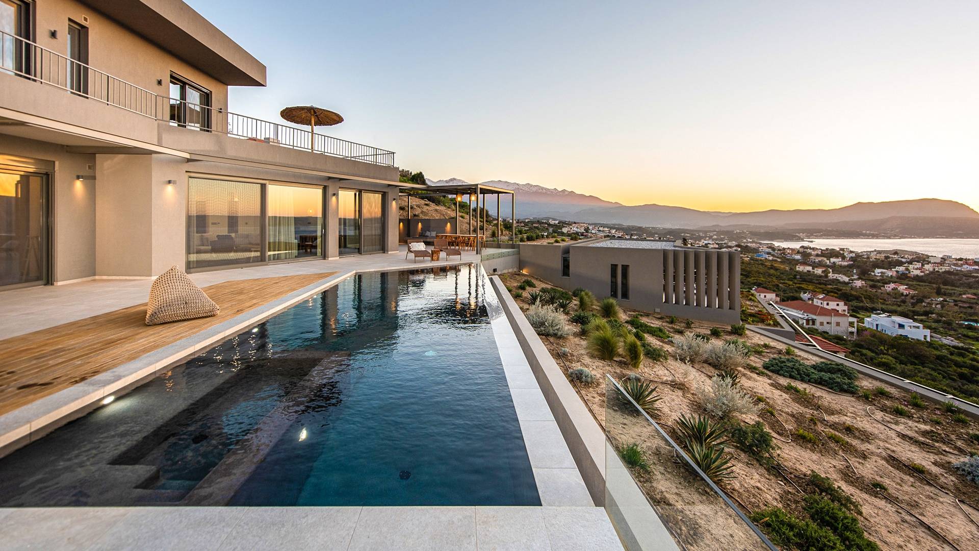 Con viste mozzafiato del tramonto sulla baia di Chania, la villa Omora è una nuovissima splendida villa e offre il massimo rifugio per il relax e il lusso. Arroccato in alto ma vicino alla costa cretese, si trova in una bellissima zona, piena di tranquilli villaggi greci tradizionali, a pochi minuti da incantevoli spiagge sabbiose e calette nascoste. La villa può ospitare comodamente fino a 6 persone e dispone di 3 camere matrimoniali, una grande piscina a sfioro riscaldata e una fantastica zona pranzo all'aperto e barbecue.
