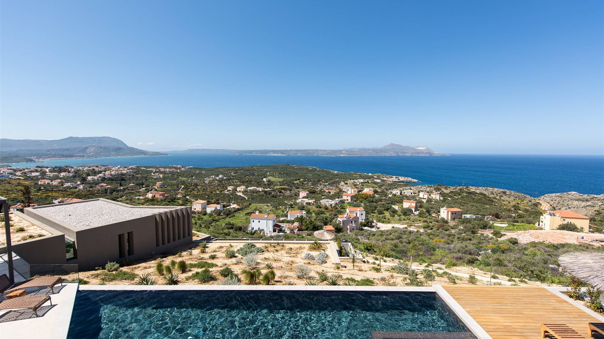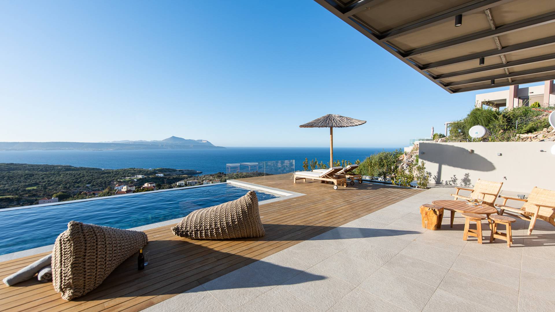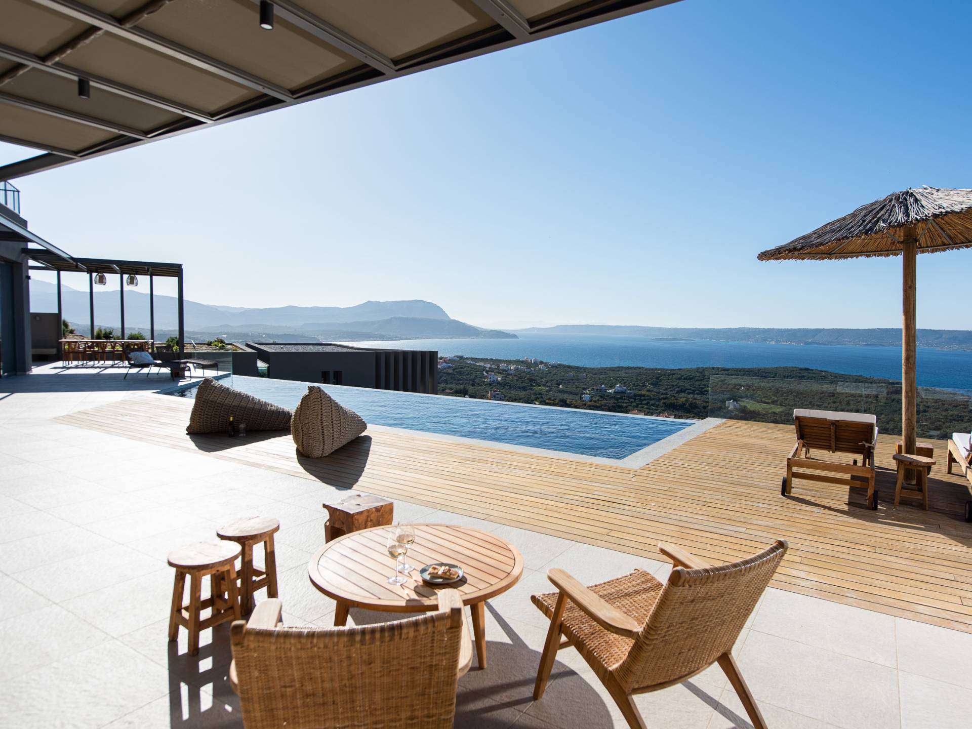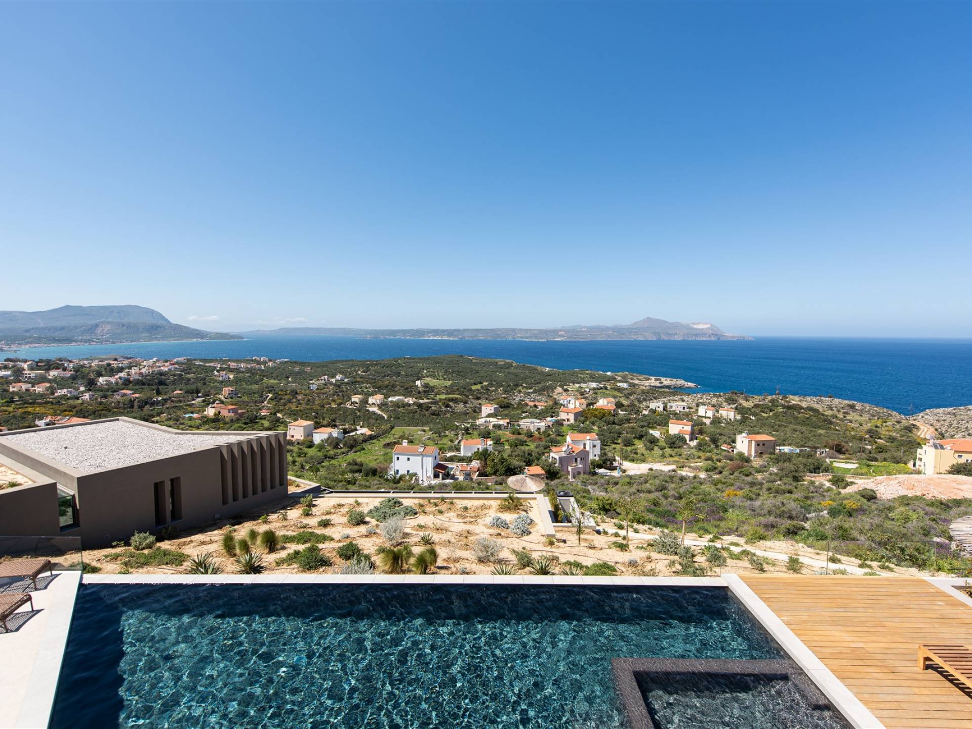 In combinazione con molteplici balconi e terrazze progettati per essere privati e mostrare anche viste fantastiche, la villa vanta anche una spaziosa cucina a pianta aperta, sala da pranzo e area lounge all'interno della villa. Progettata e arredata in modo superbo, questa villa offre a famiglie e gruppi un'esperienza a 5 stelle ed è la base perfetta per visitare la meravigliosa zona di Creta occidentale. Visita alcune delle spiagge più belle del mondo o semplicemente rilassati nella villa e goditi la sua splendida vista sul mare e sulle montagne.