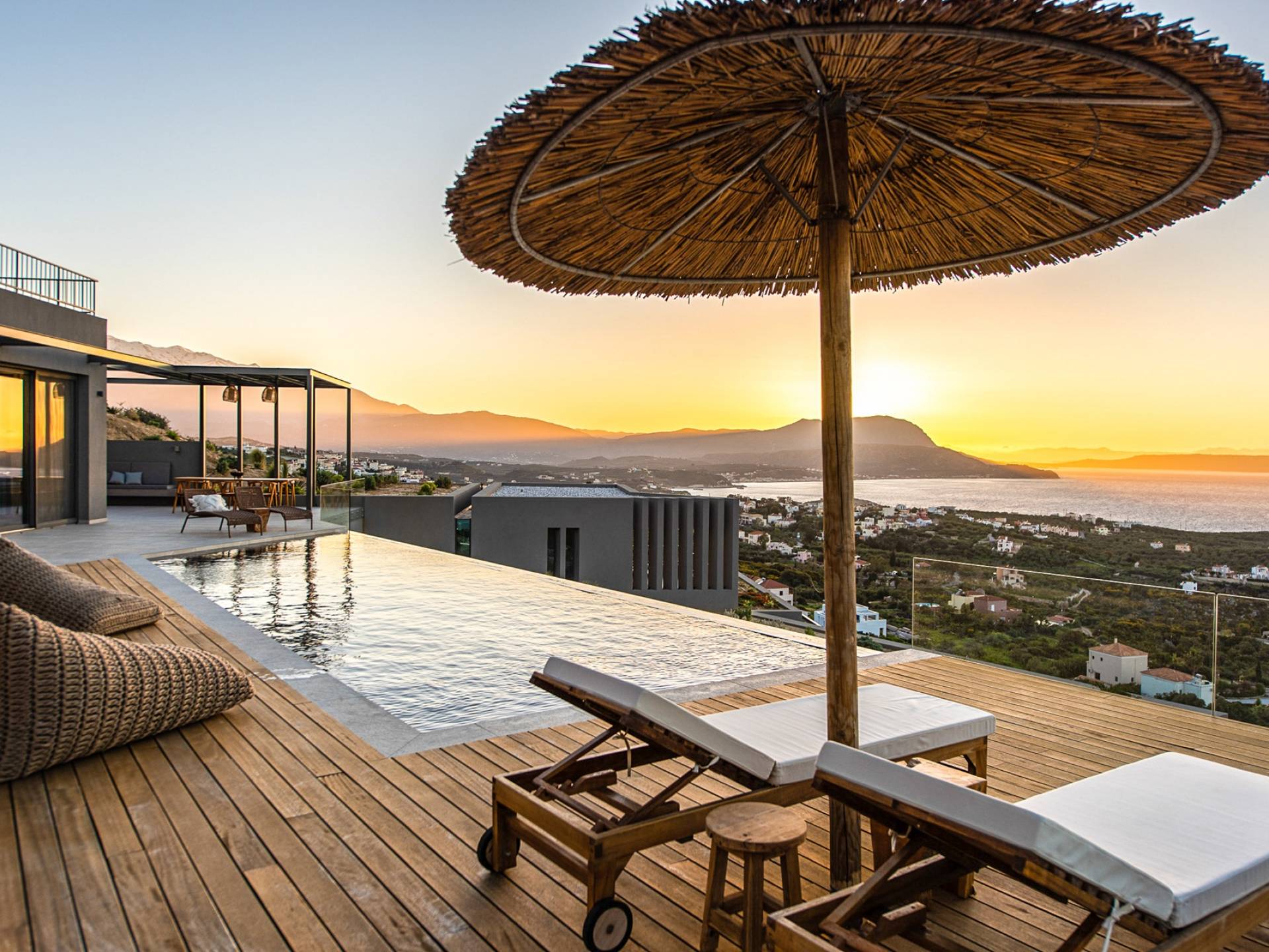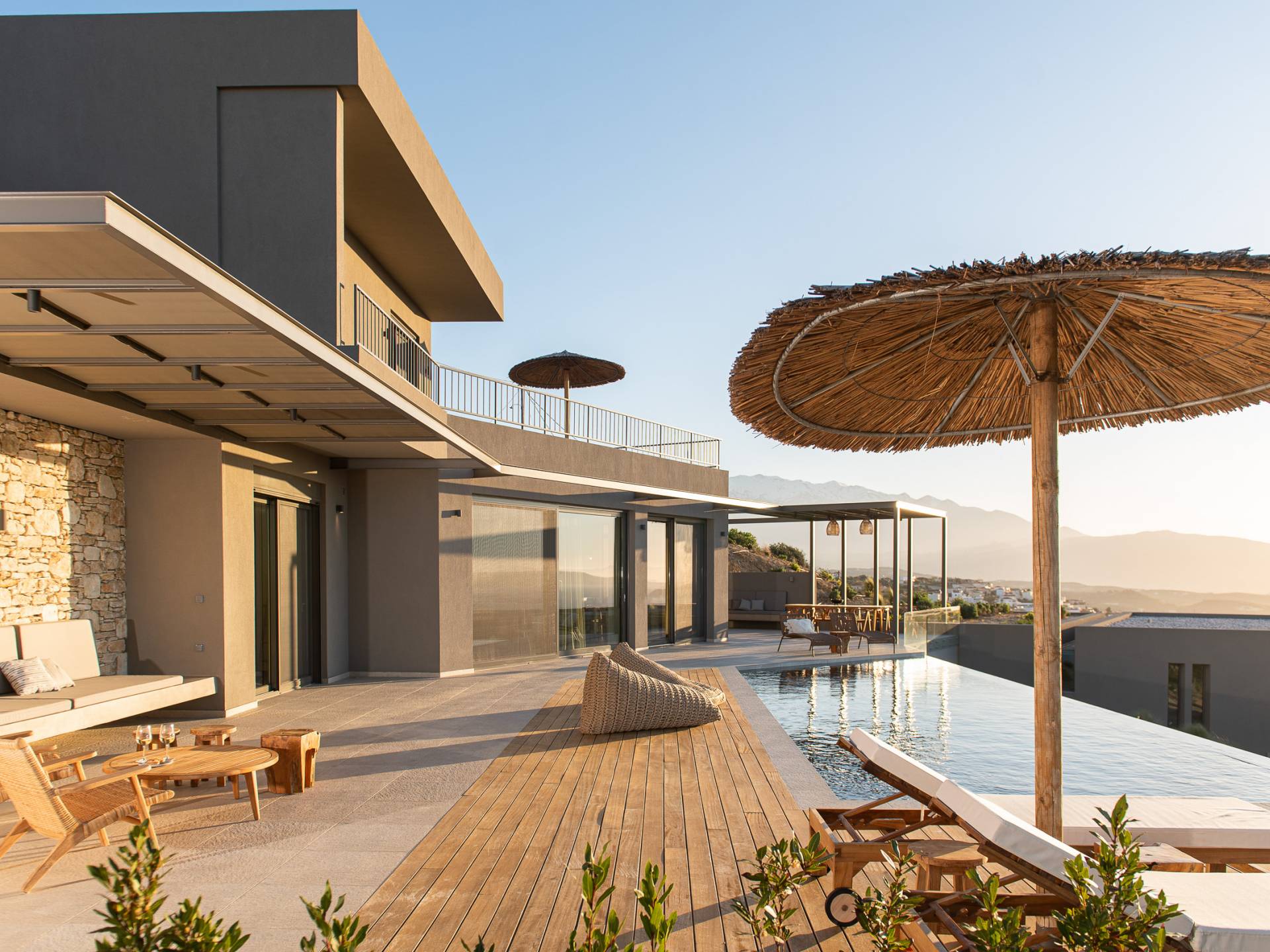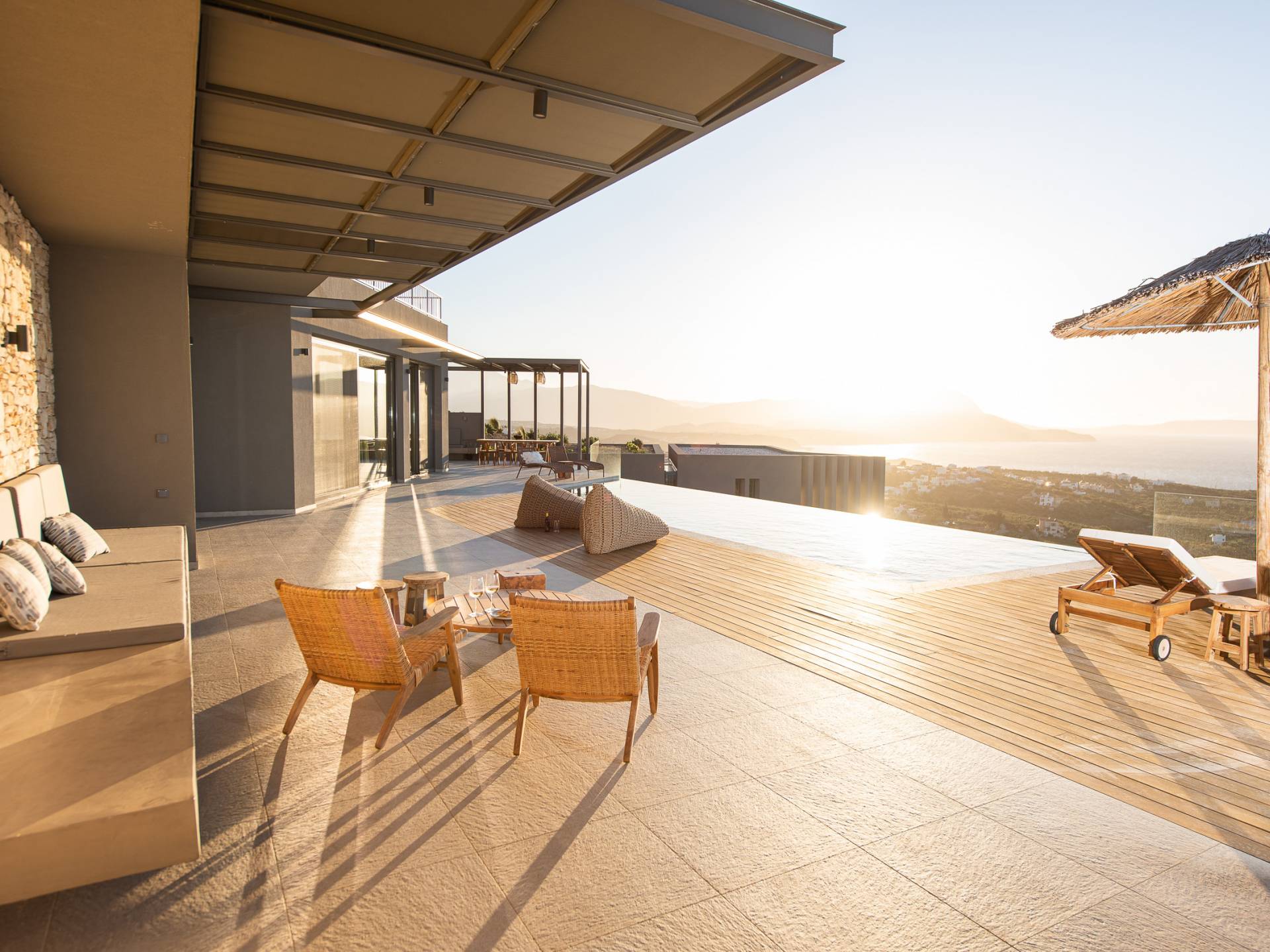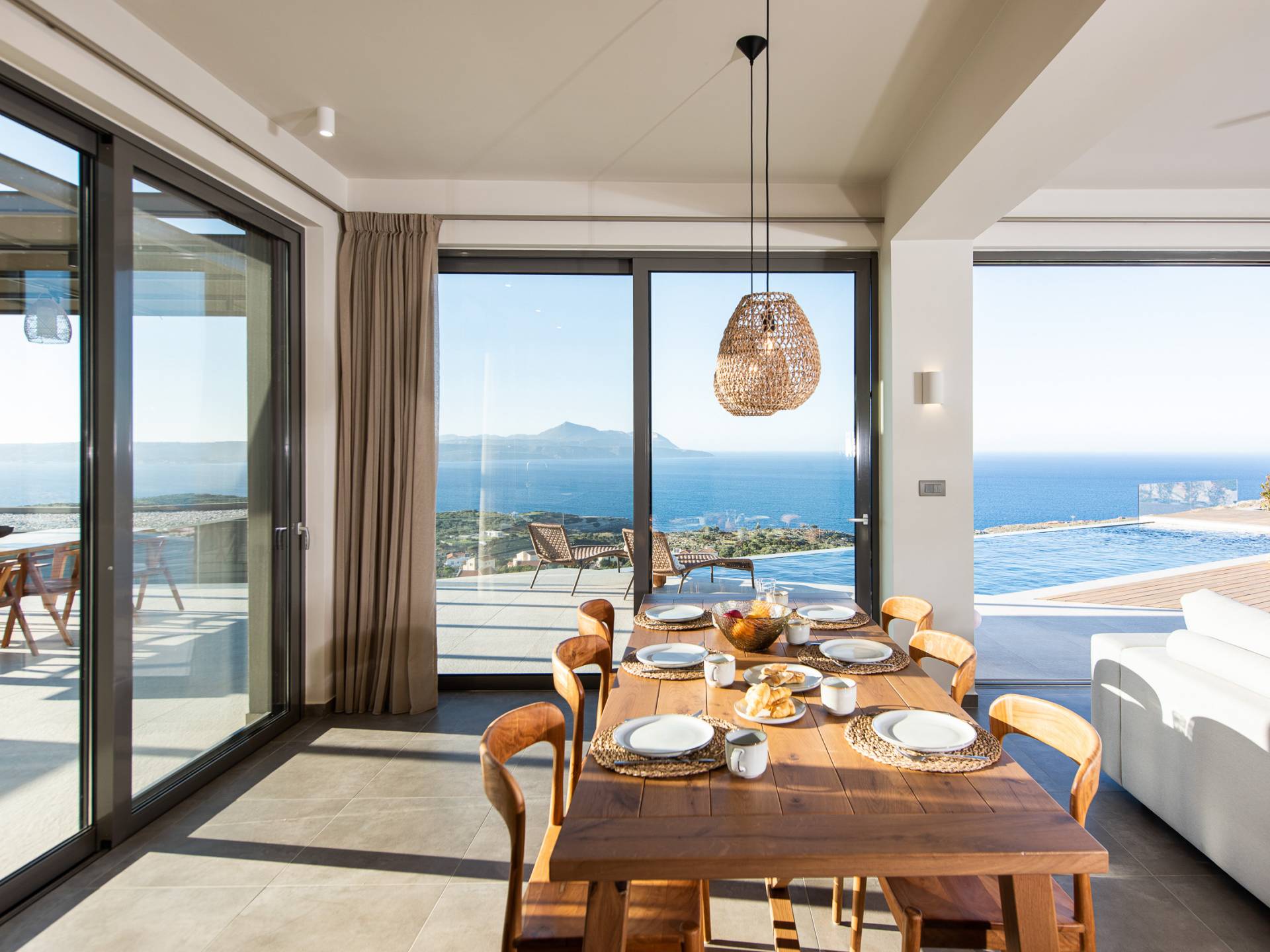 In combinazione con molteplici balconi e terrazze progettati per essere privati e mostrare anche viste fantastiche, la villa vanta anche una spaziosa cucina a pianta aperta, sala da pranzo e area lounge all'interno della villa. Progettata e arredata in modo superbo, questa villa offre a famiglie e gruppi un'esperienza a 5 stelle ed è la base perfetta per visitare la meravigliosa zona di Creta occidentale. Visita alcune delle spiagge più belle del mondo o semplicemente rilassati nella villa e goditi la sua splendida vista sul mare e sulle montagne.