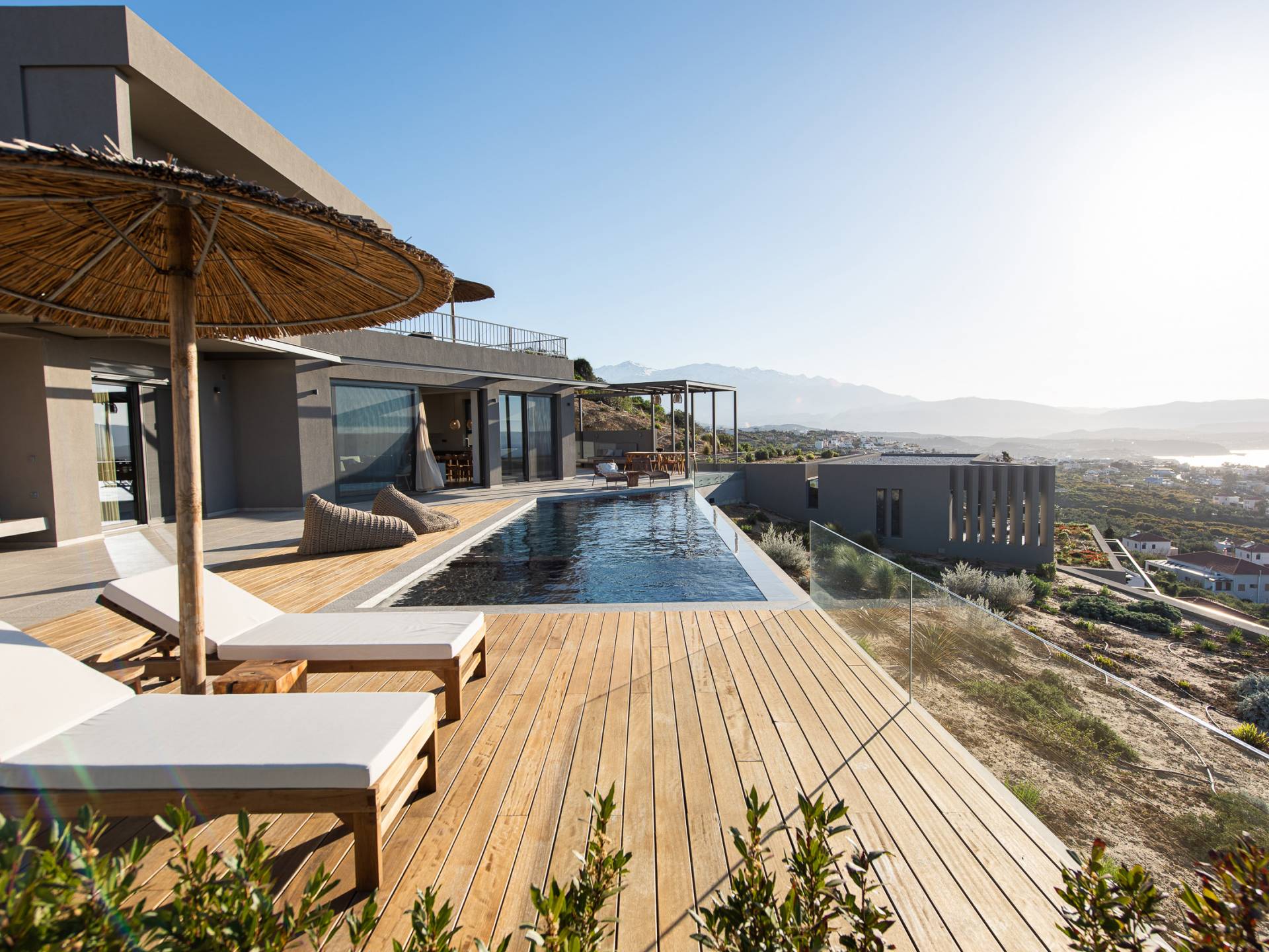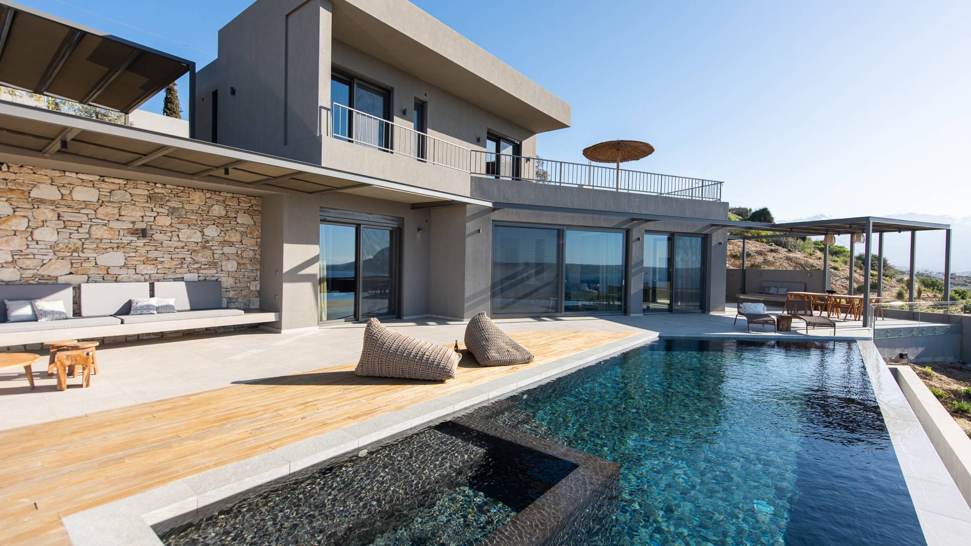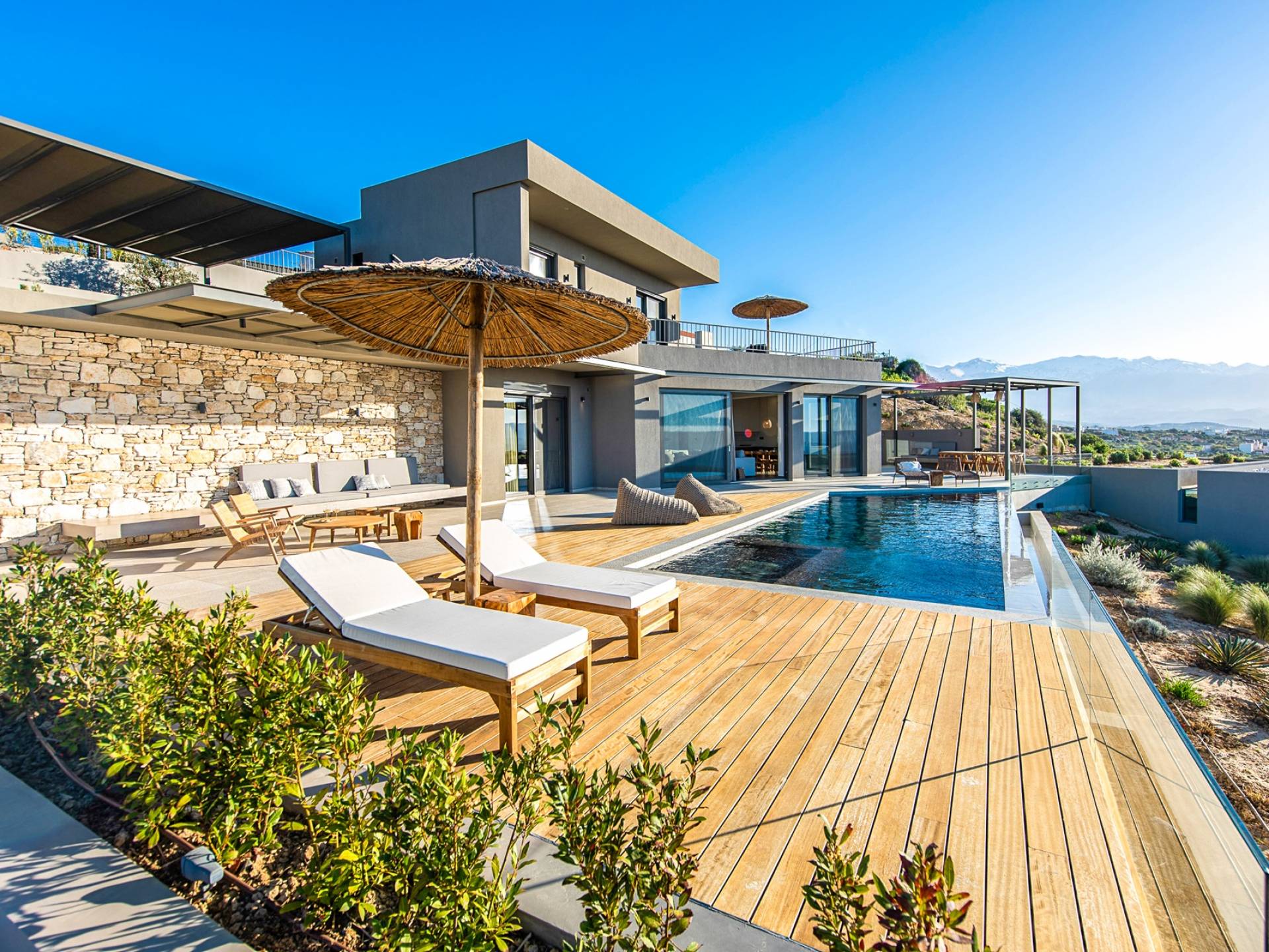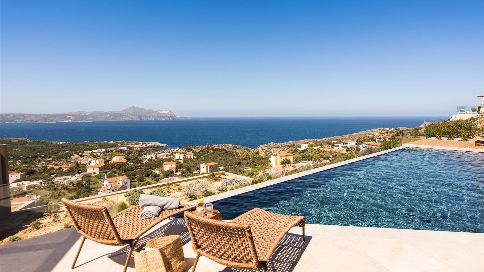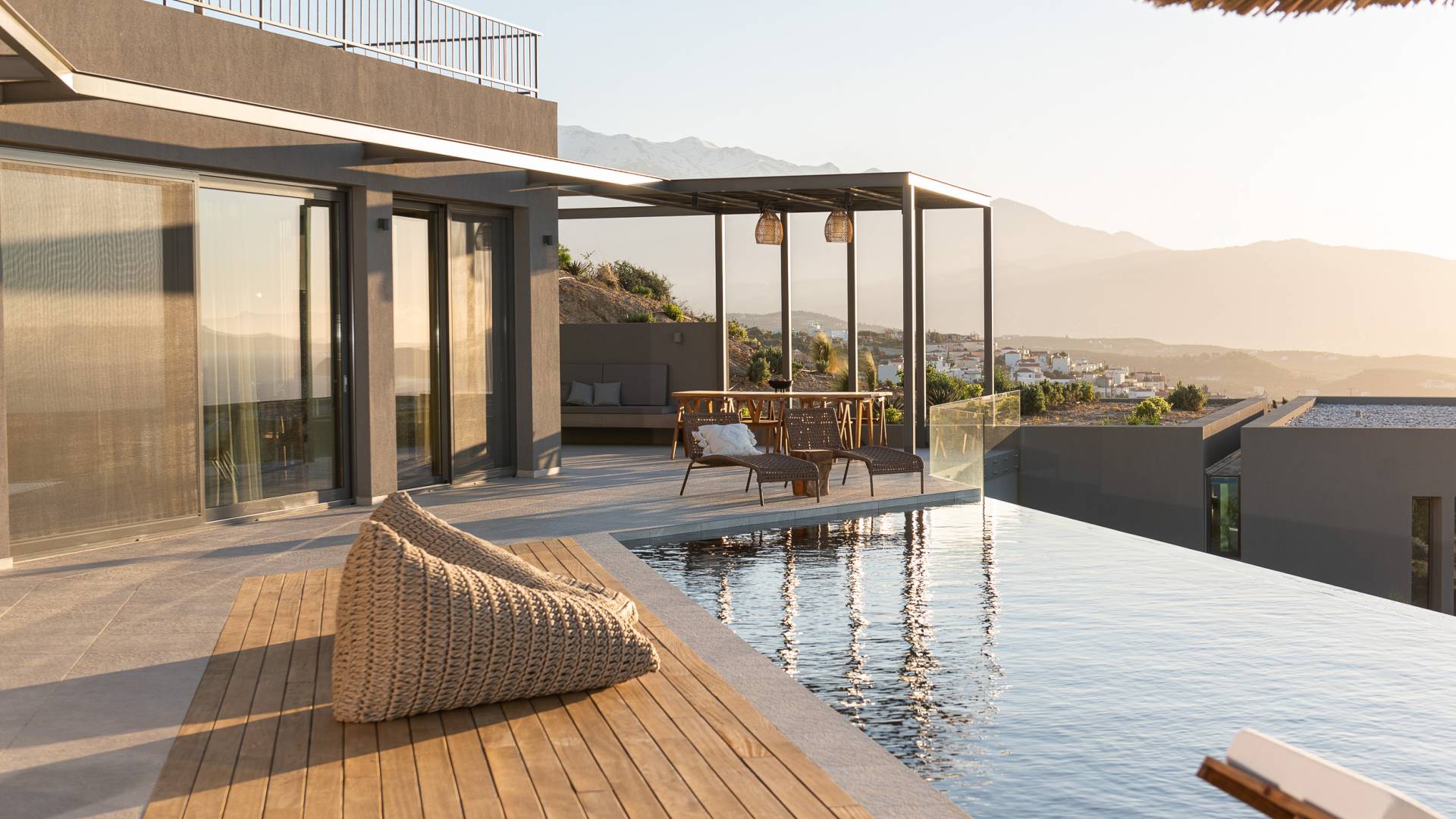 Villa Omora Chania è a soli 45 minuti di auto dall'aeroporto internazionale di Chania e dalla storica città veneziana di Chania, conosciuta come la "piccola Venezia". Disposta su due piani, la villa è stata progettata per sfruttare il magnifico scenario e la disposizione studiata offre splendide viste dalle camere da letto e dalle zone giorno. Il piano superiore e l'ingresso principale della casa dispongono di 2 camere matrimoniali con ampi balconi. Il piano inferiore dispone di un'ulteriore camera matrimoniale, una spaziosa zona giorno a pianta aperta e accesso alla piscina, sala da pranzo all'aperto e terrazze