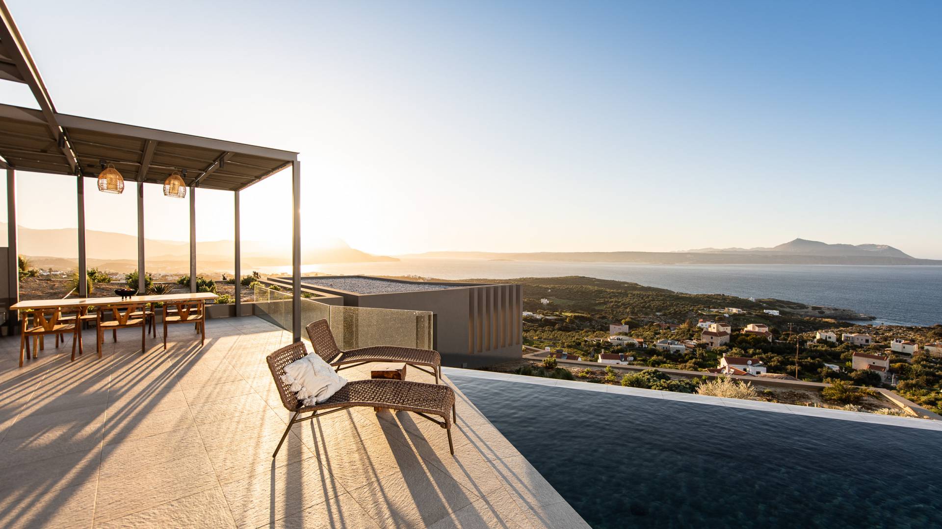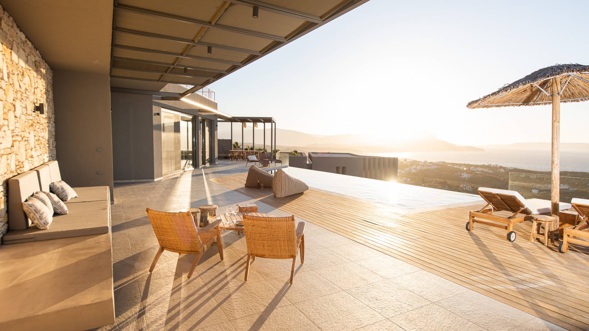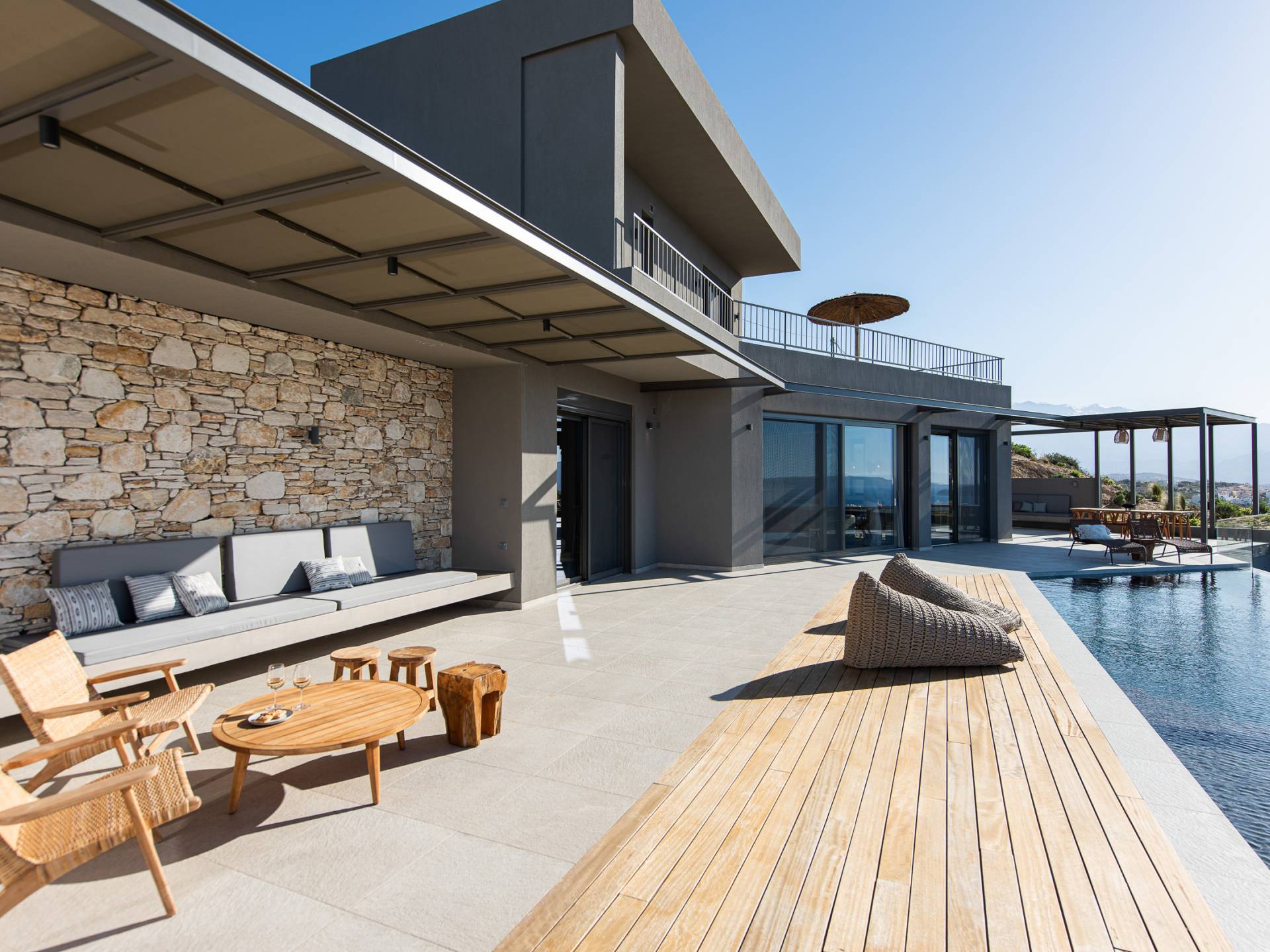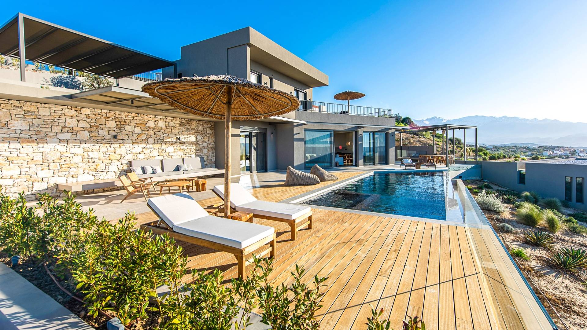 Villa Omora Chania è a soli 45 minuti di auto dall'aeroporto internazionale di Chania e dalla storica città veneziana di Chania, conosciuta come la "piccola Venezia". Disposta su due piani, la villa è stata progettata per sfruttare il magnifico scenario e la disposizione studiata offre splendide viste dalle camere da letto e dalle zone giorno. Il piano superiore e l'ingresso principale della casa dispongono di 2 camere matrimoniali con ampi balconi. Il piano inferiore dispone di un'ulteriore camera matrimoniale, una spaziosa zona giorno a pianta aperta e accesso alla piscina, sala da pranzo all'aperto e terrazze