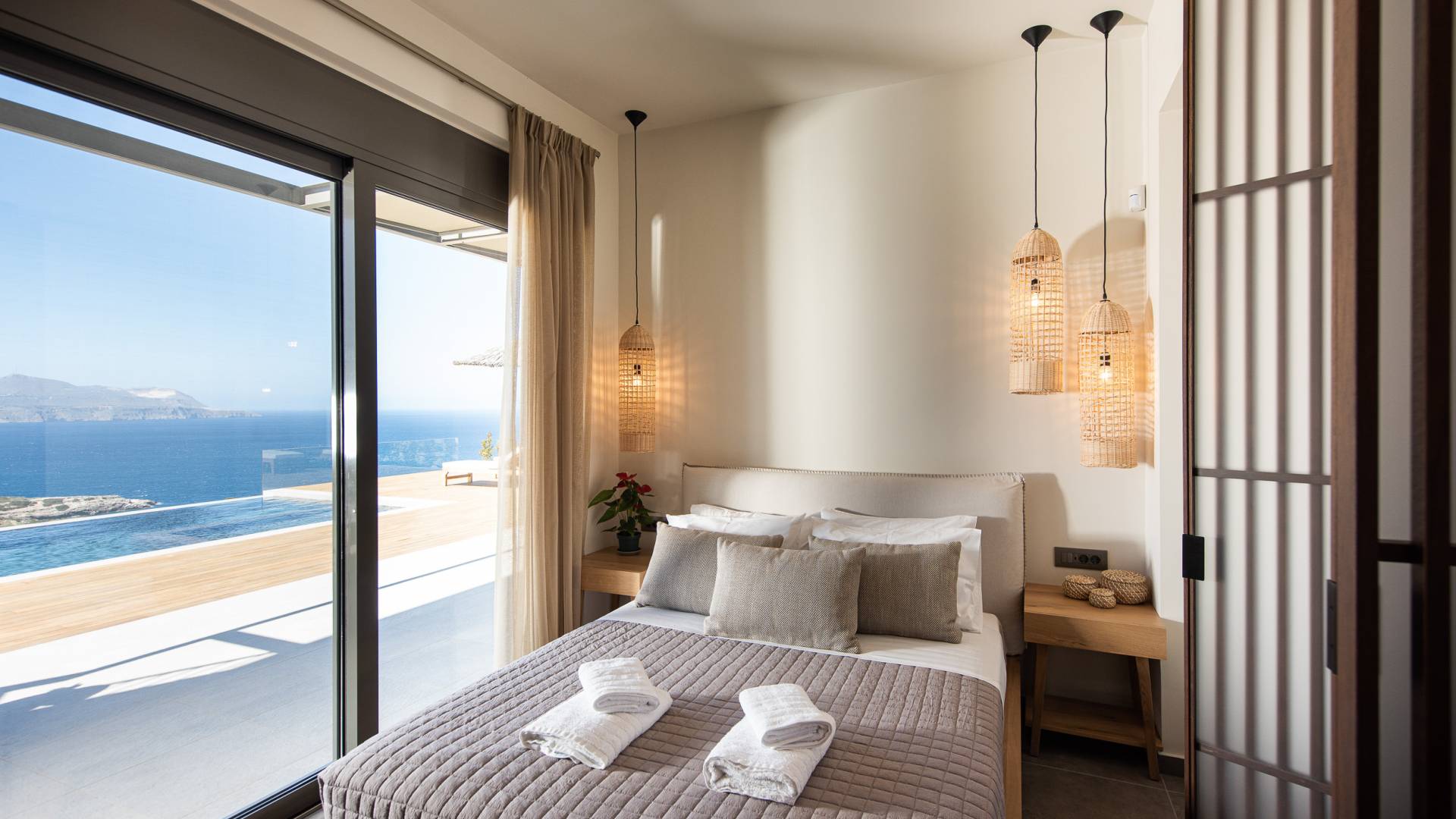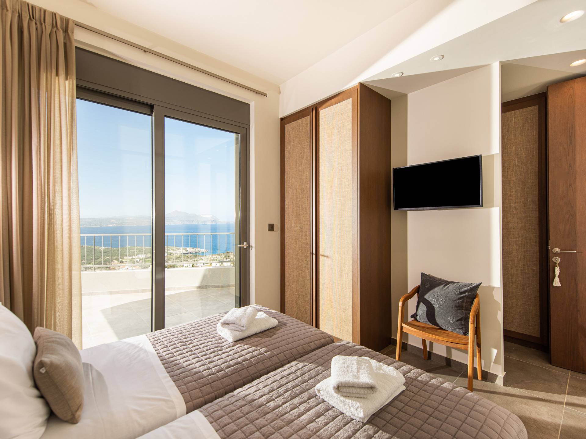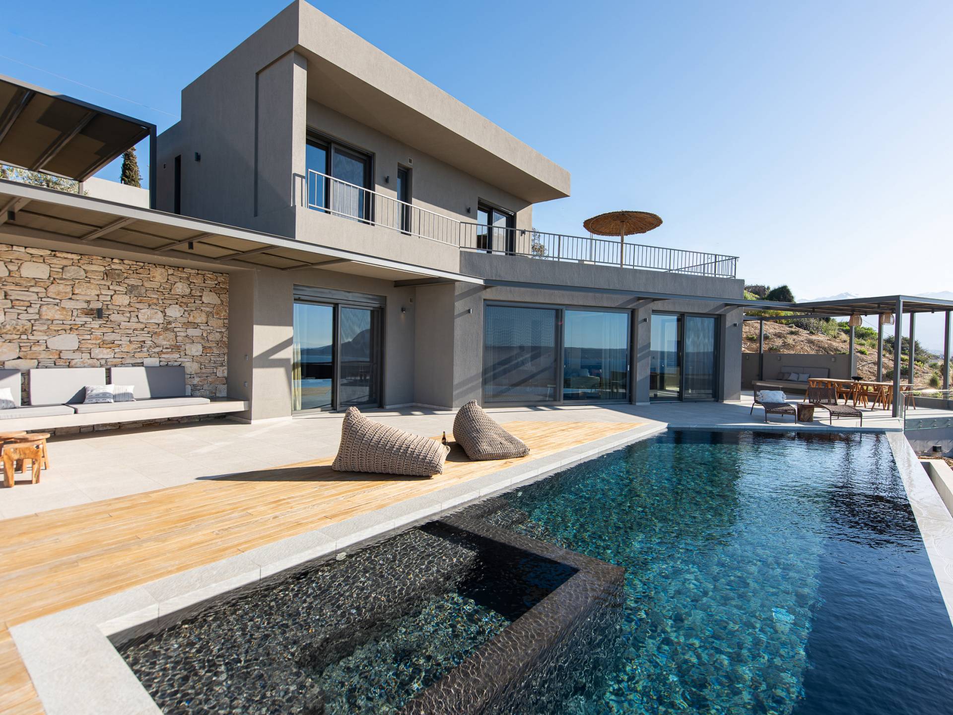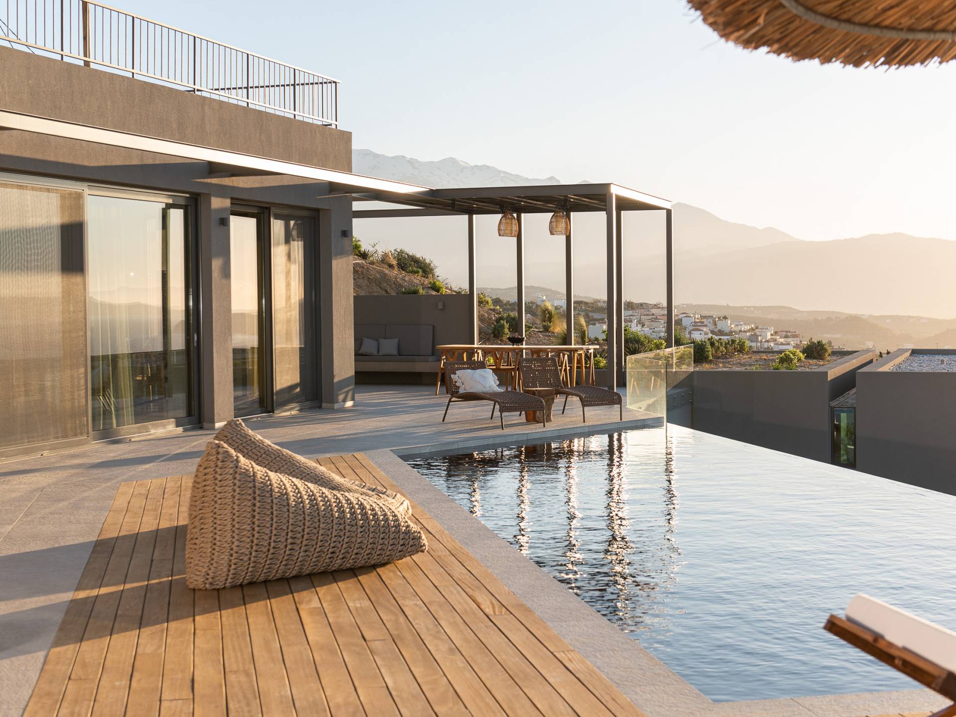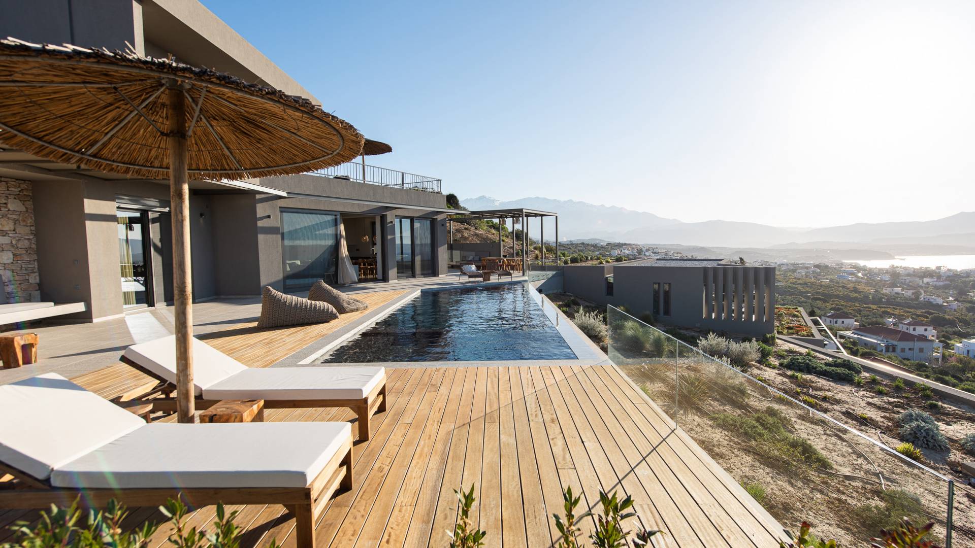 Villa Omora Chania è a soli 45 minuti di auto dall'aeroporto internazionale di Chania e dalla storica città veneziana di Chania, conosciuta come la "piccola Venezia". Disposta su due piani, la villa è stata progettata per sfruttare il magnifico scenario e la disposizione studiata offre splendide viste dalle camere da letto e dalle zone giorno. Il piano superiore e l'ingresso principale della casa dispongono di 2 camere matrimoniali con ampi balconi. Il piano inferiore dispone di un'ulteriore camera matrimoniale, una spaziosa zona giorno a pianta aperta e accesso alla piscina, sala da pranzo all'aperto e terrazze