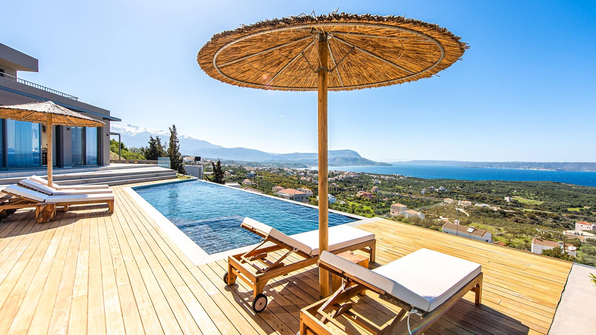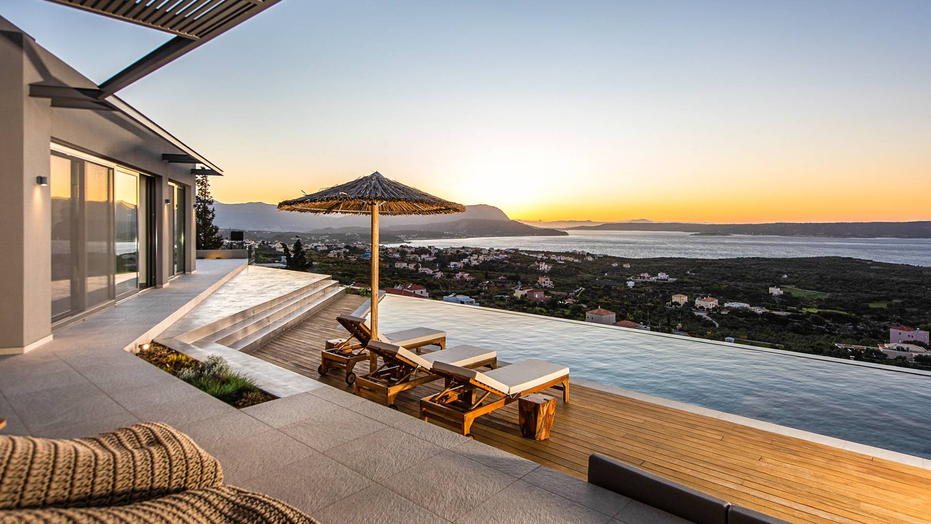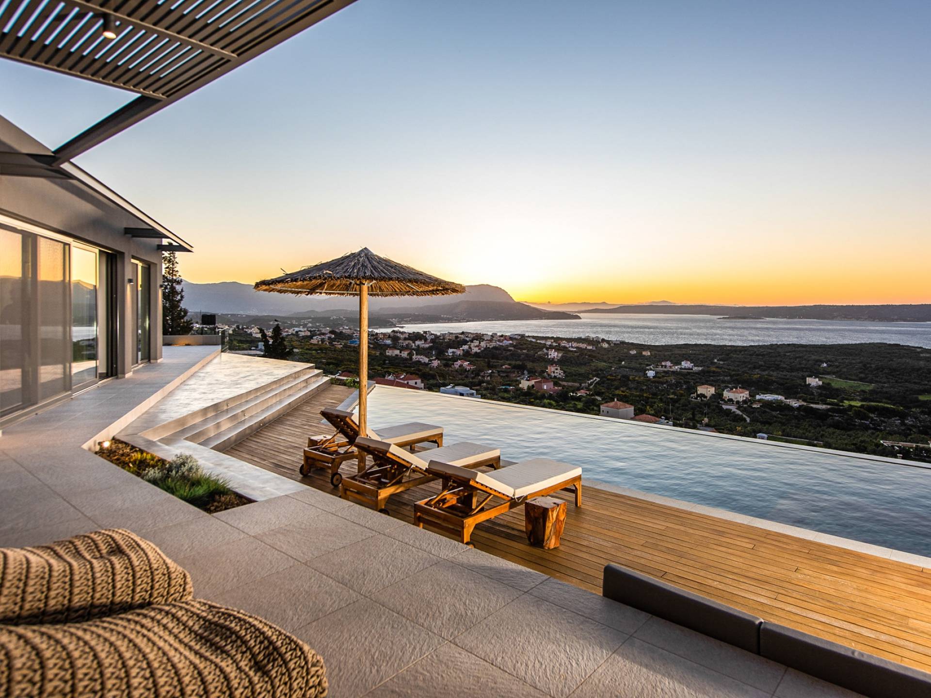 With breathtaking sunset views over the bay of Chania, Villa Alenas Chania is a brand new stunning villa and provides the ultimate retreat for relaxation and luxury. Perched high up but close from the Cretan coast, it is located in a beautiful area, full of sleepy traditional Greek villages, and just a few minutes away from lovely sandy beaches and hidden coves.