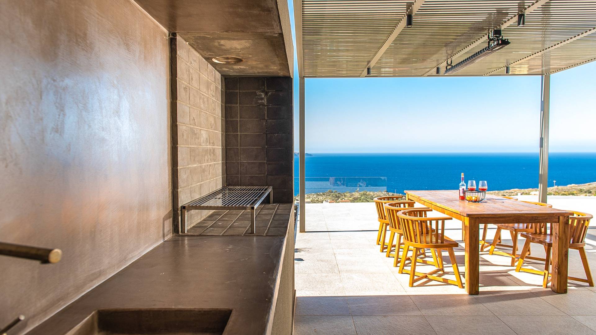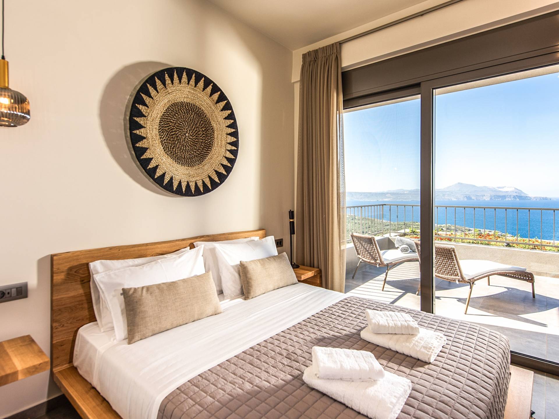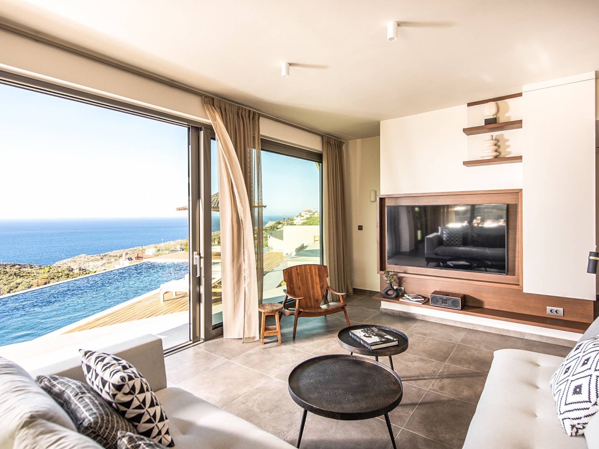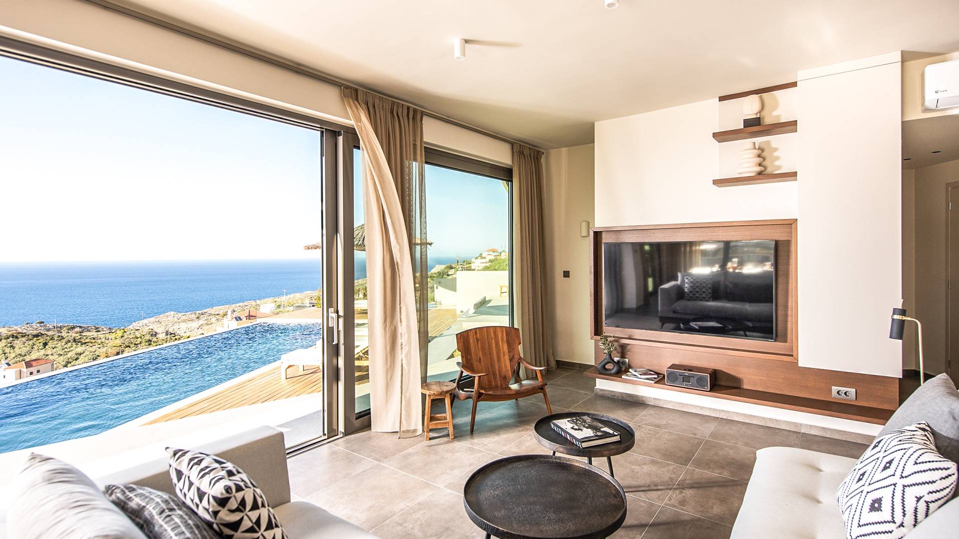 Villa Alenas Chania comfortably sleeps up to 8 people and features 3 double bedrooms and a cinema room with a sleeper sofa that can accommodate up to 2 people, a large heated infinity swimming pool, and a fantastic outdoor dining and BBQ area. Combined with multiple balconies and terraces which were designed to be both private and also showcase the fantastic views, the villa also boasts a spacious open-plan kitchen, dining, and lounge area inside the villa.
