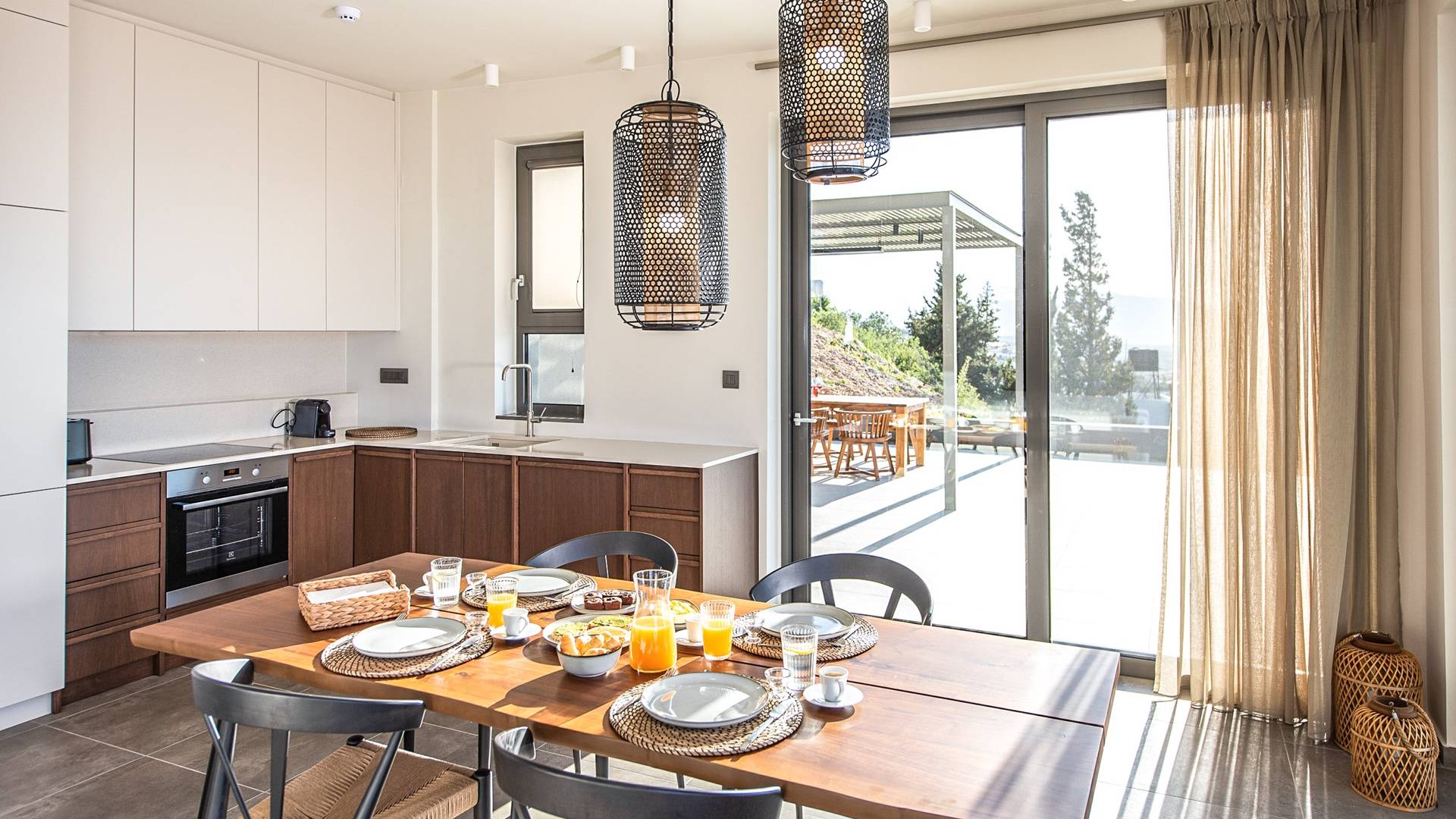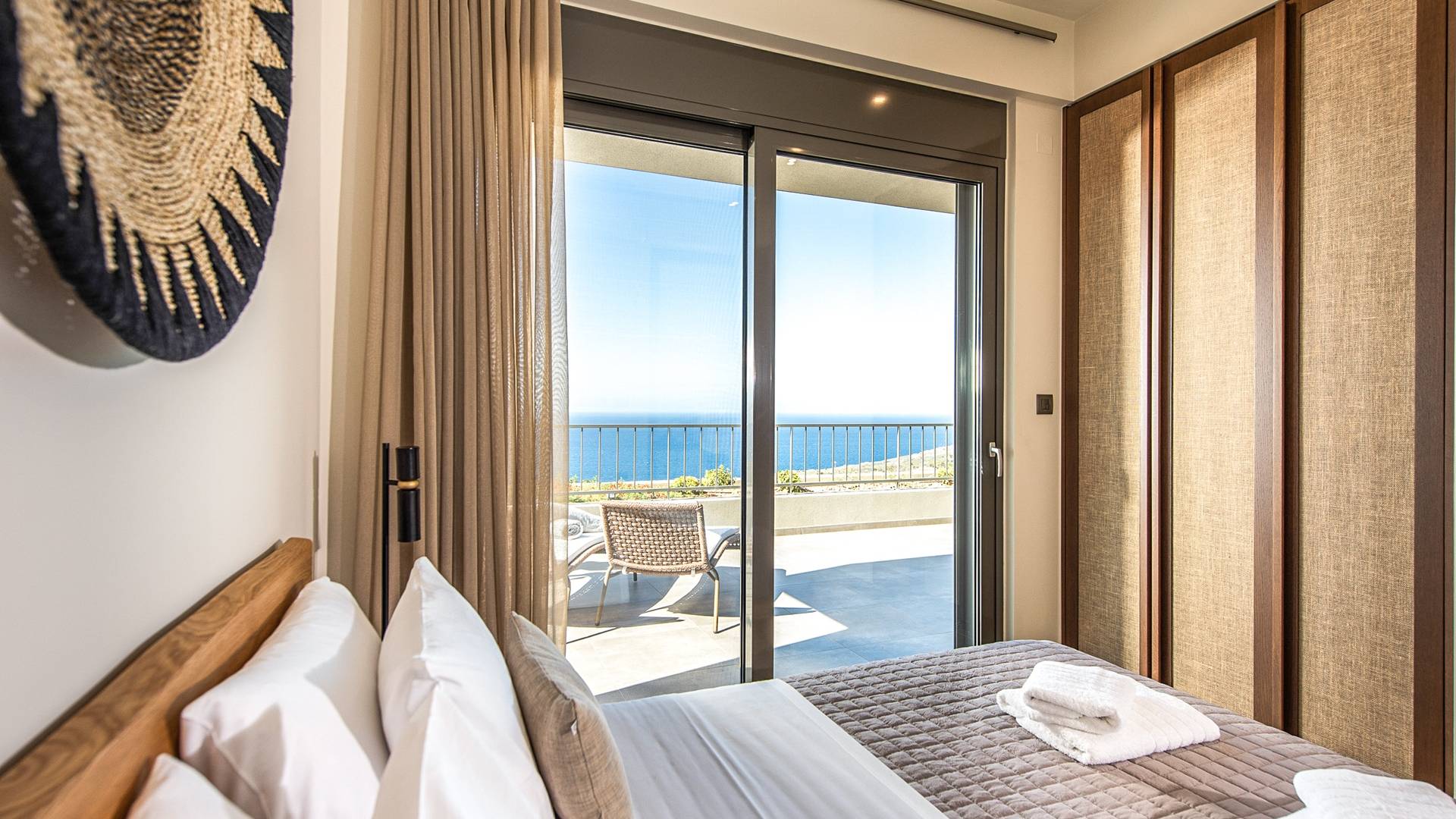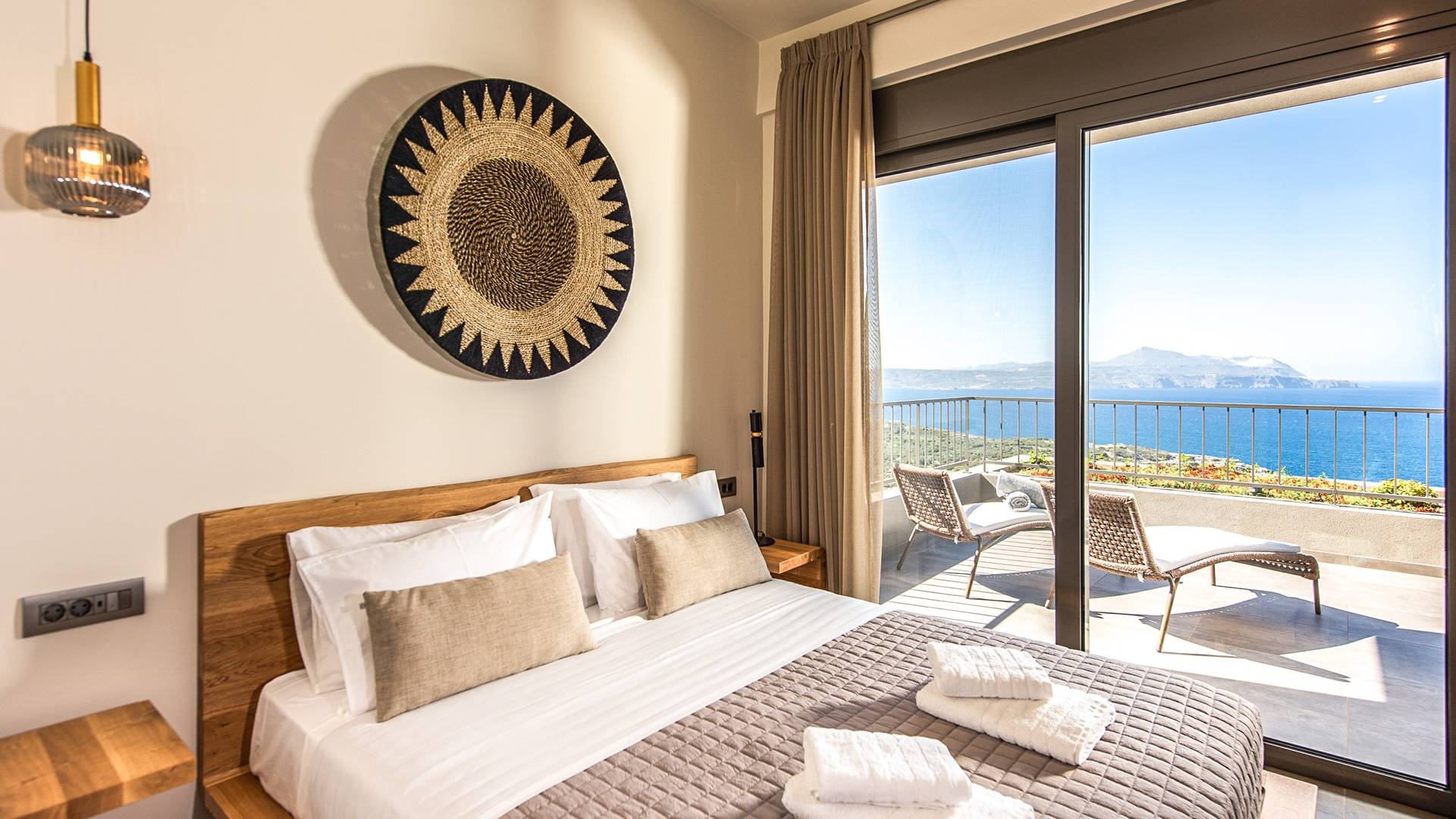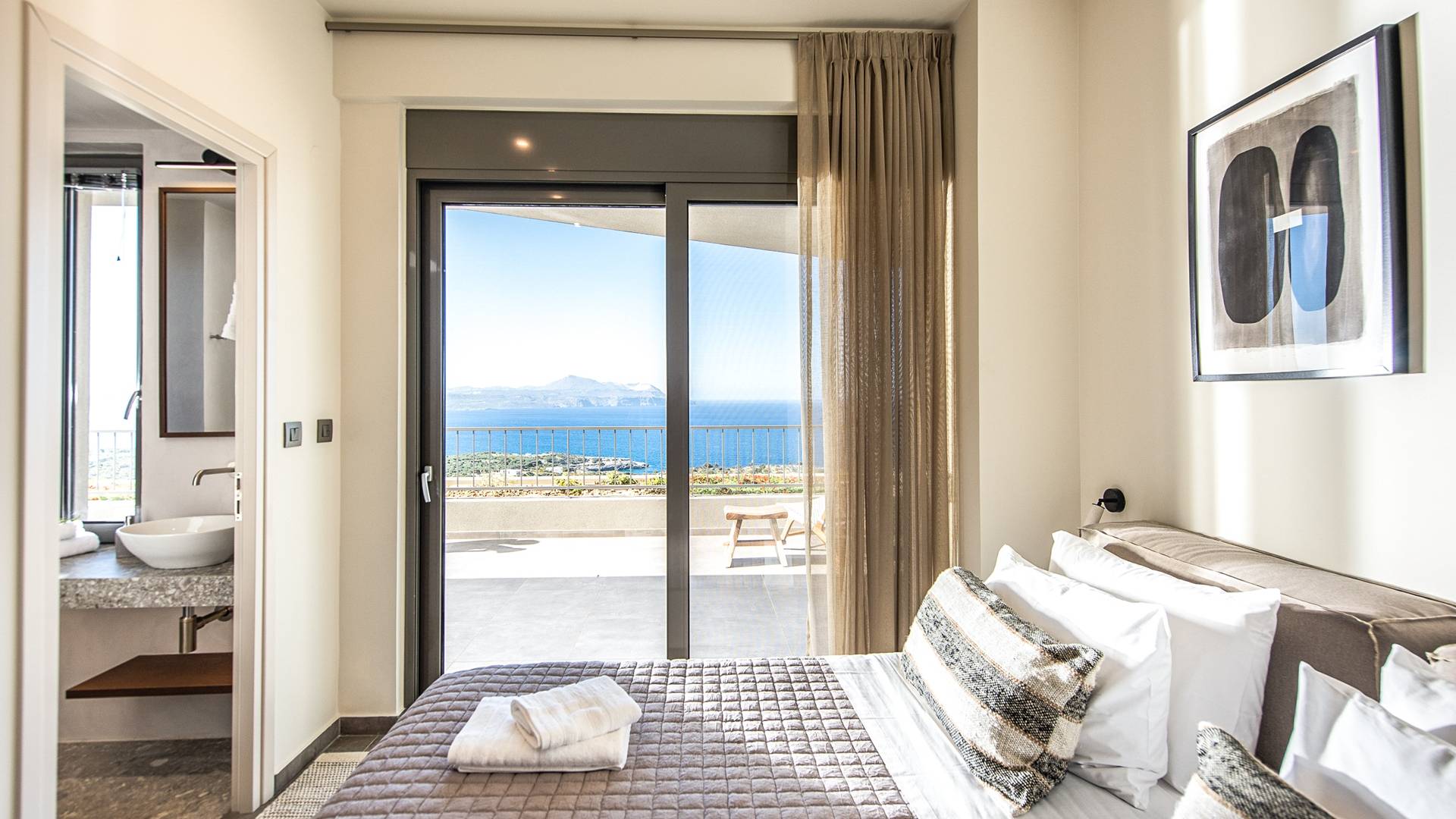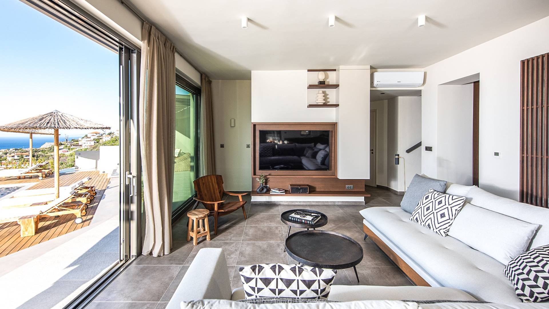 Villa Alenas Chania comfortably sleeps up to 8 people and features 3 double bedrooms and a cinema room with a sleeper sofa that can accommodate up to 2 people, a large heated infinity swimming pool, and a fantastic outdoor dining and BBQ area. Combined with multiple balconies and terraces which were designed to be both private and also showcase the fantastic views, the villa also boasts a spacious open-plan kitchen, dining, and lounge area inside the villa.