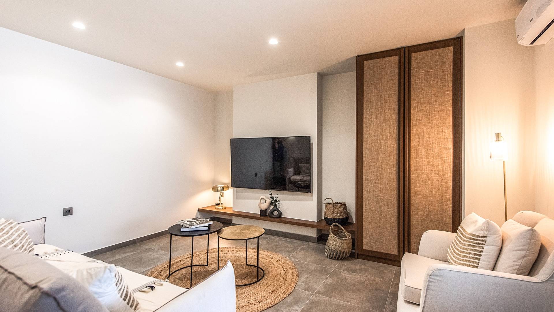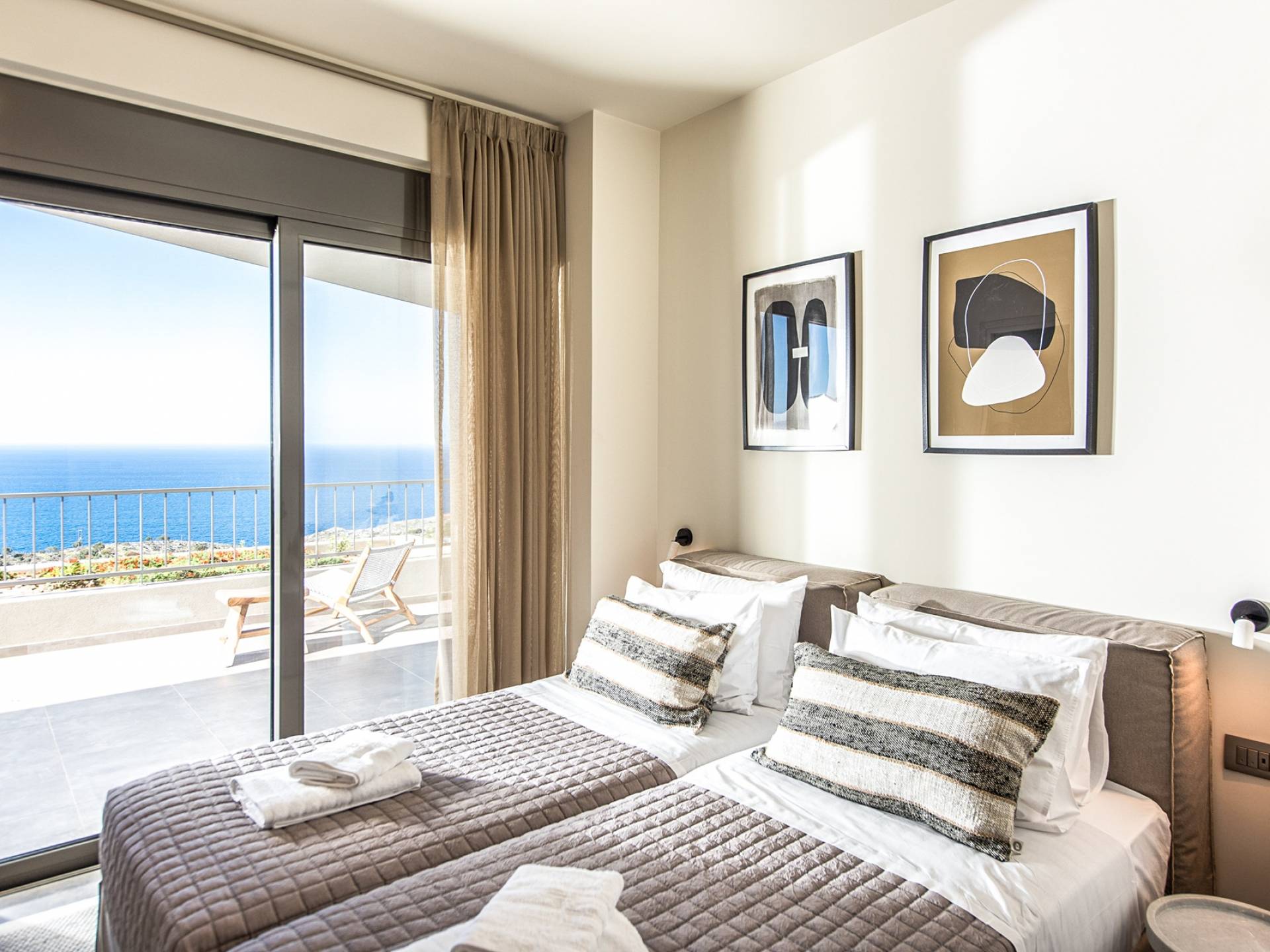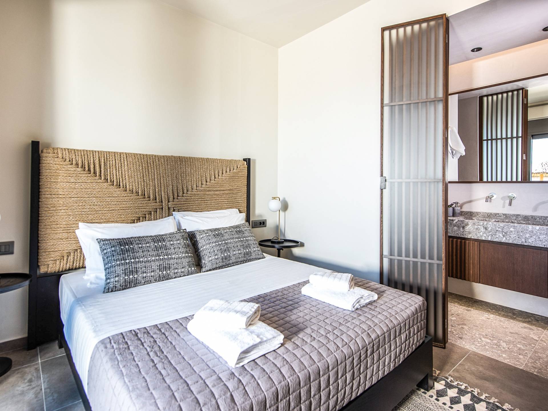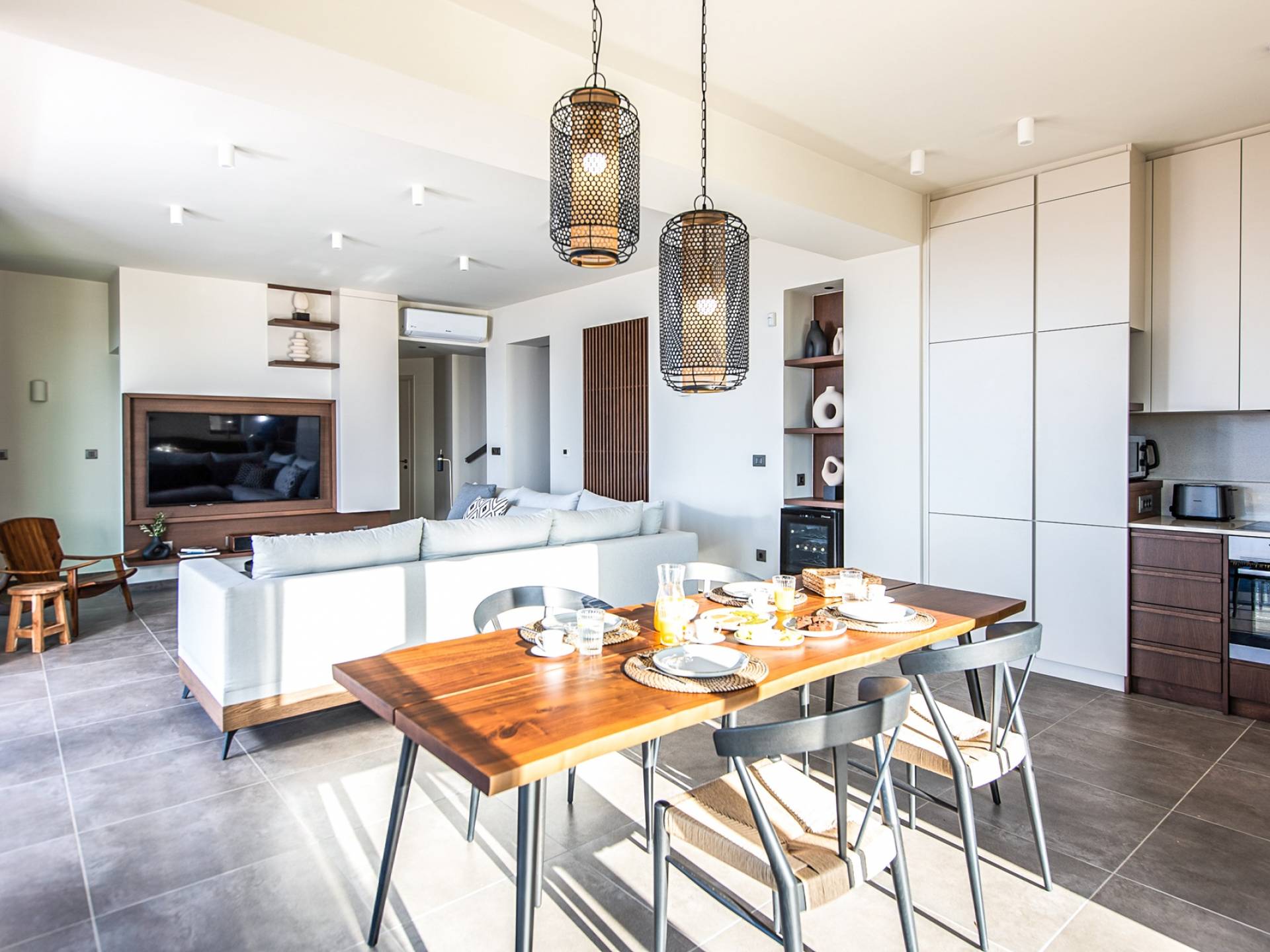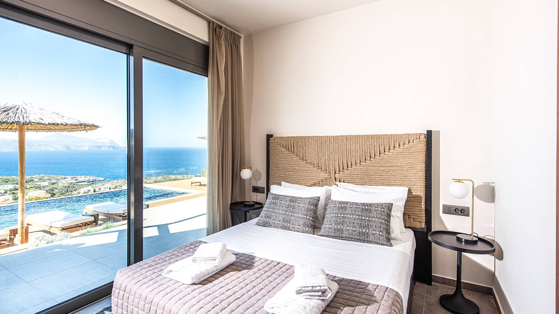 Villa Alenas Chania comfortably sleeps up to 8 people and features 3 double bedrooms and a cinema room with a sleeper sofa that can accommodate up to 2 people, a large heated infinity swimming pool, and a fantastic outdoor dining and BBQ area. Combined with multiple balconies and terraces which were designed to be both private and also showcase the fantastic views, the villa also boasts a spacious open-plan kitchen, dining, and lounge area inside the villa.