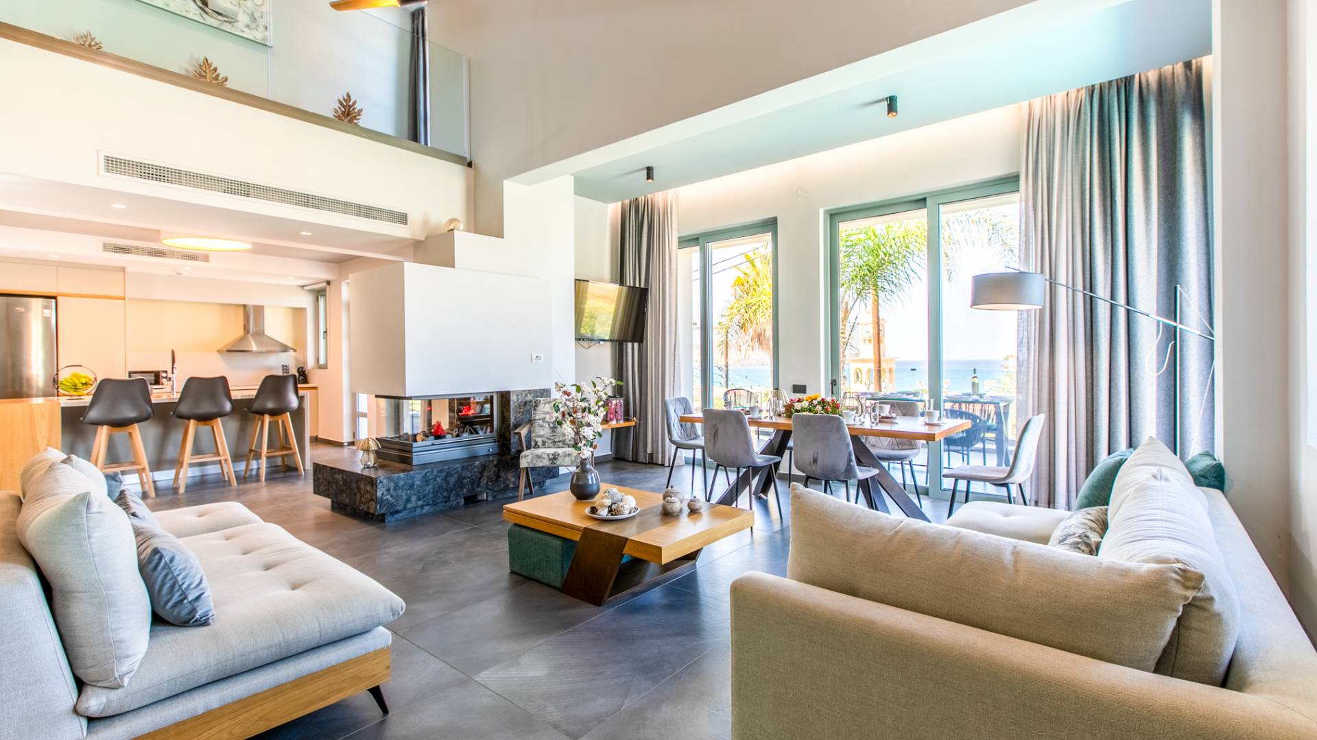 - Open-Plan Living Room with Smart TVs & sweeping sea views