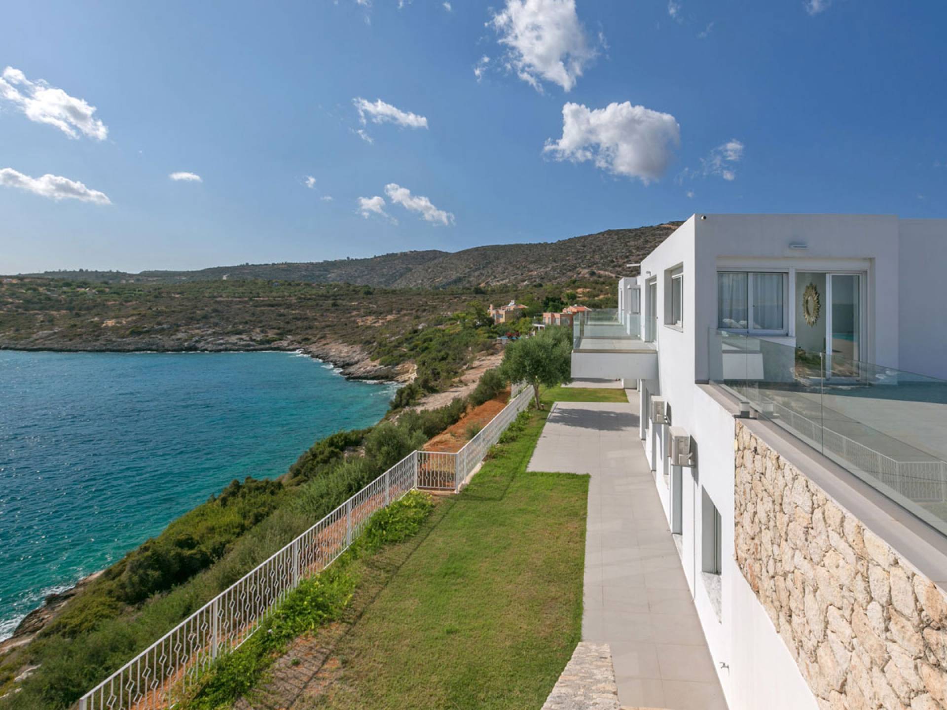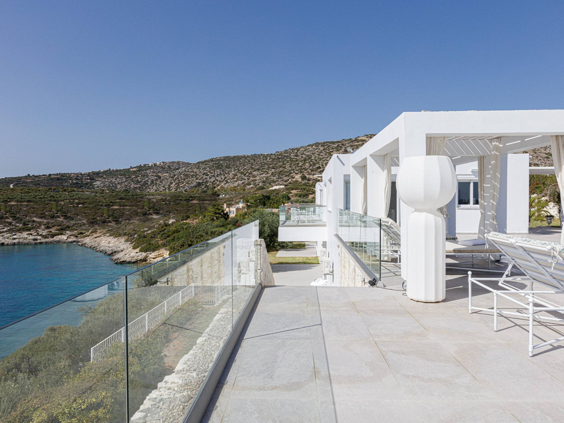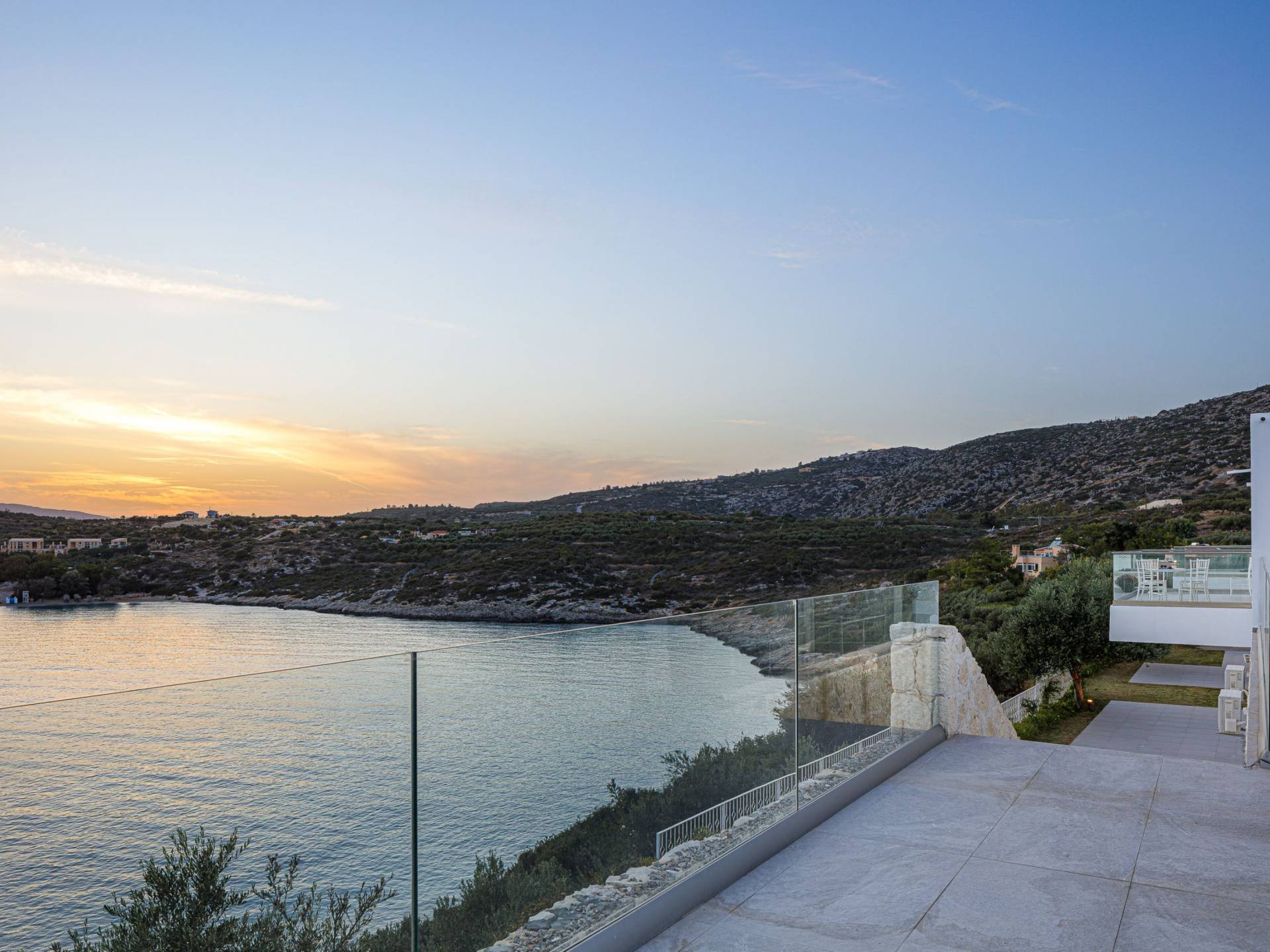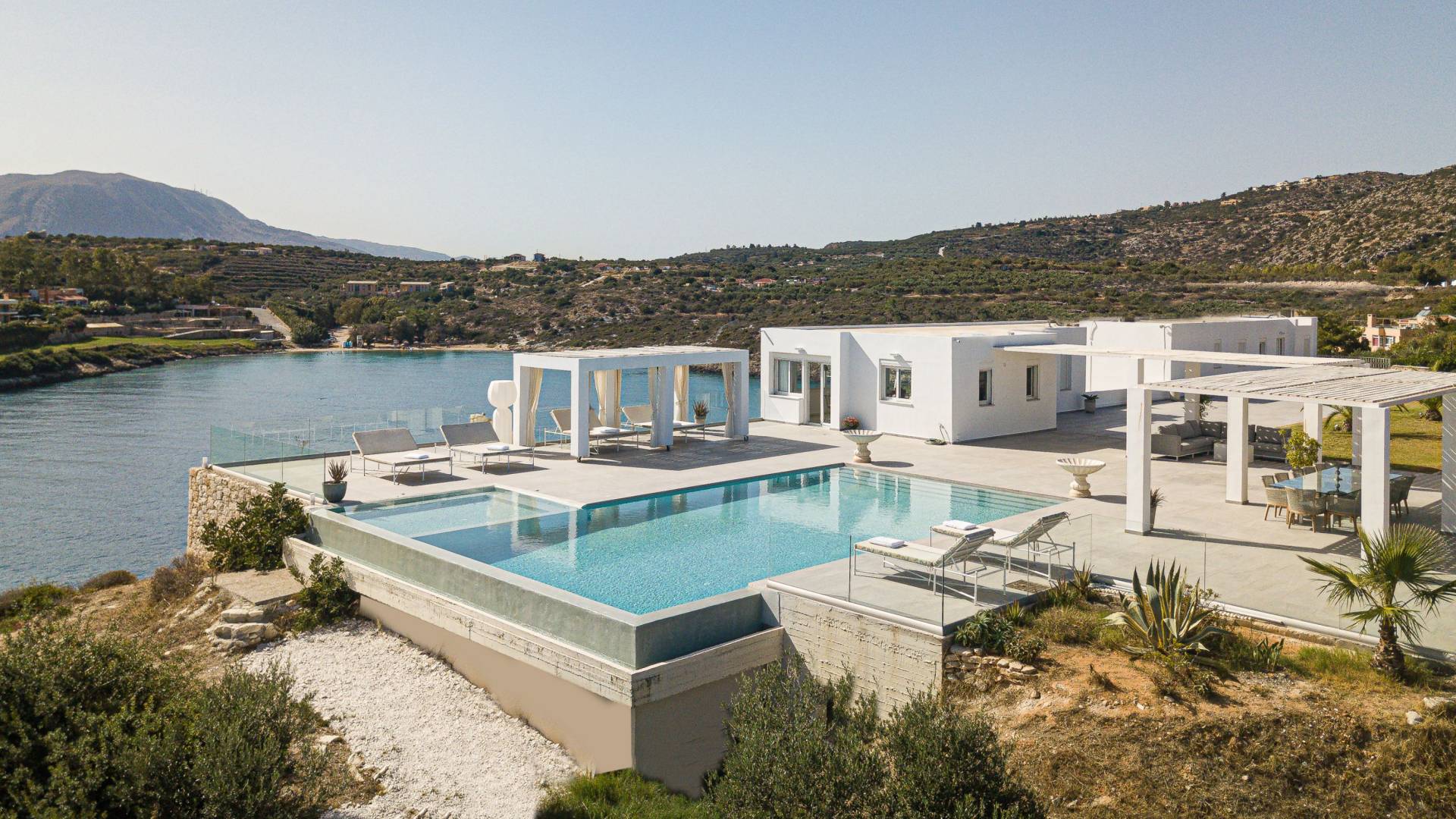 Le ville a Loutraki sono progettate per integrarsi armoniosamente con l’ambiente naturale. Molte offrono piscine private, terrazze ombreggiate con vista mare e, in alcuni casi, accesso diretto alla spiaggia. Ogni momento qui diventa speciale: dal caffè mattutino con vista al tramonto con un calice di vino cretese.