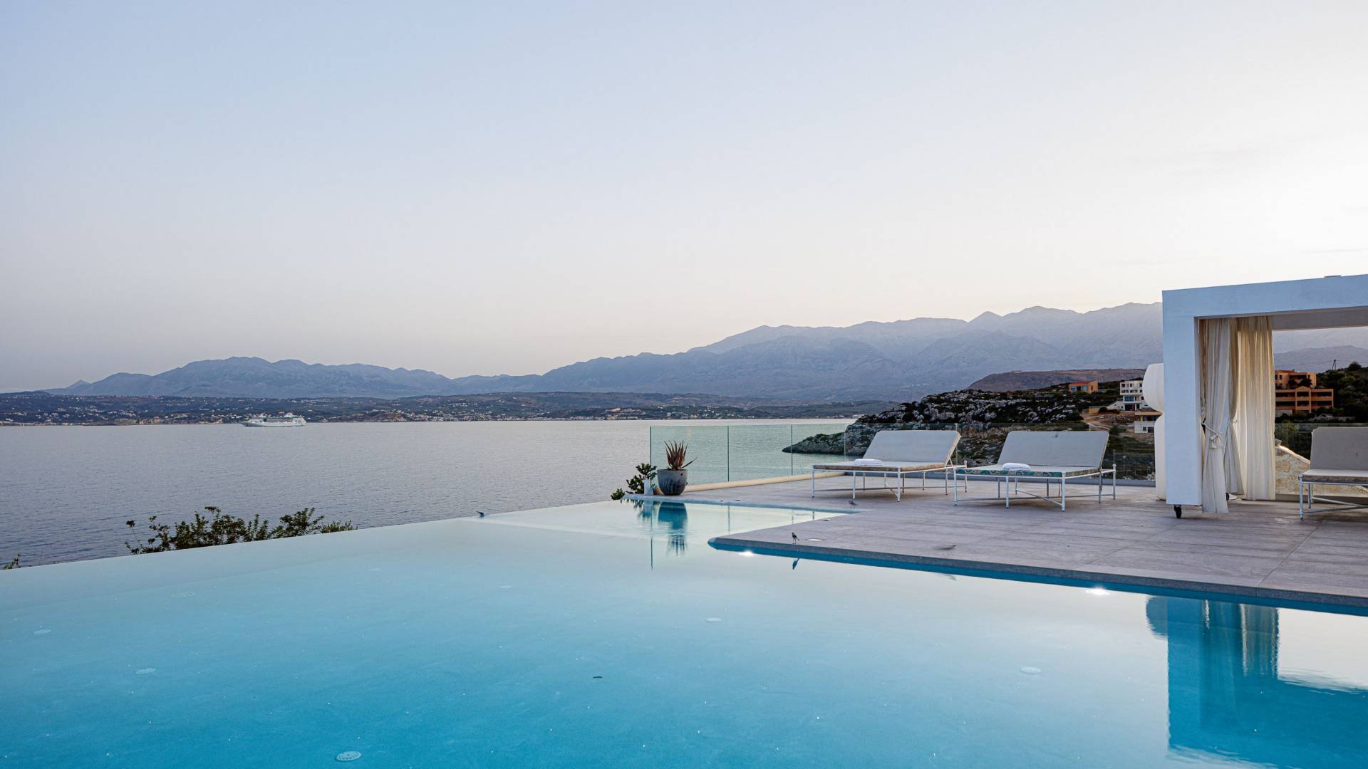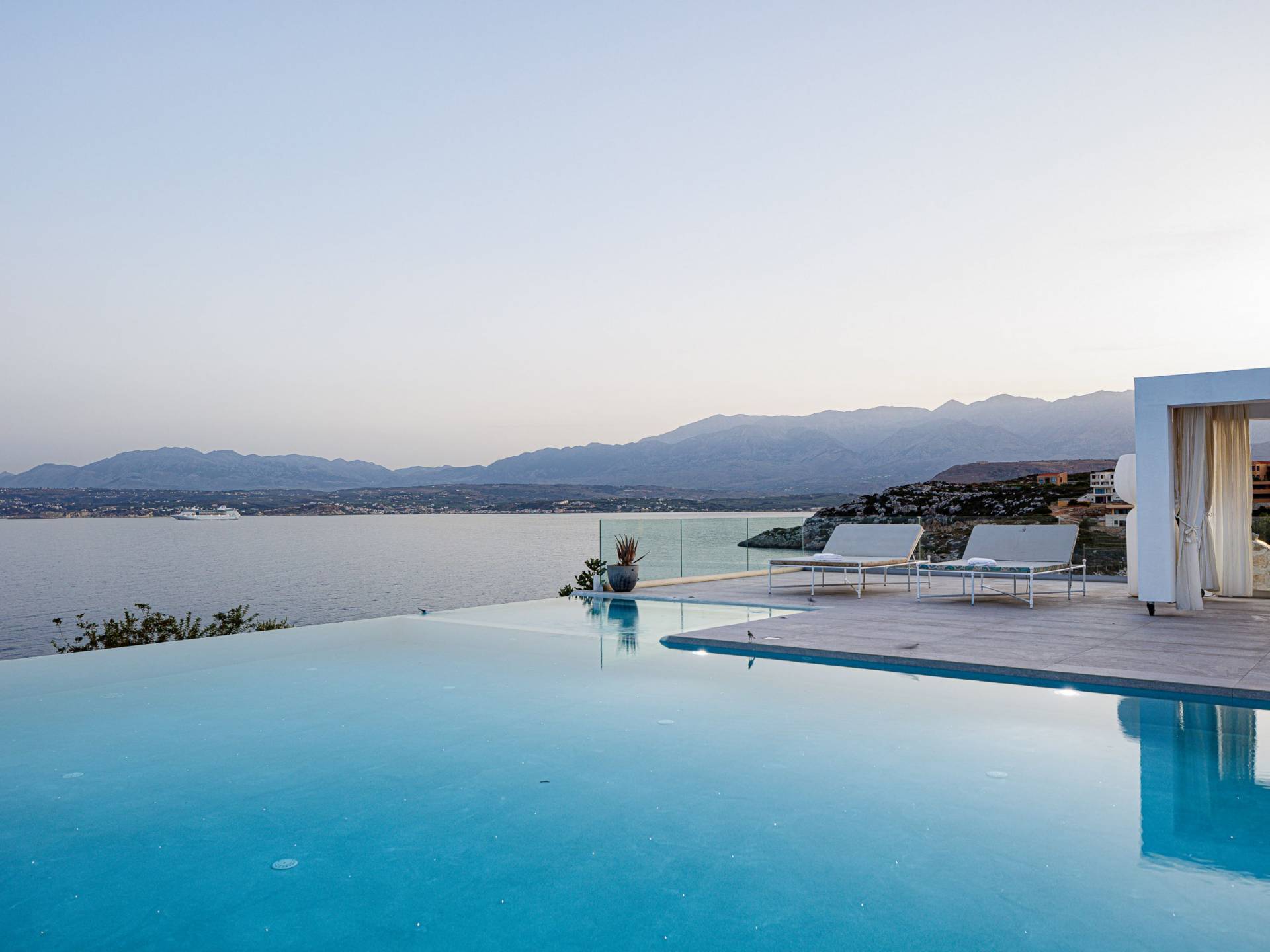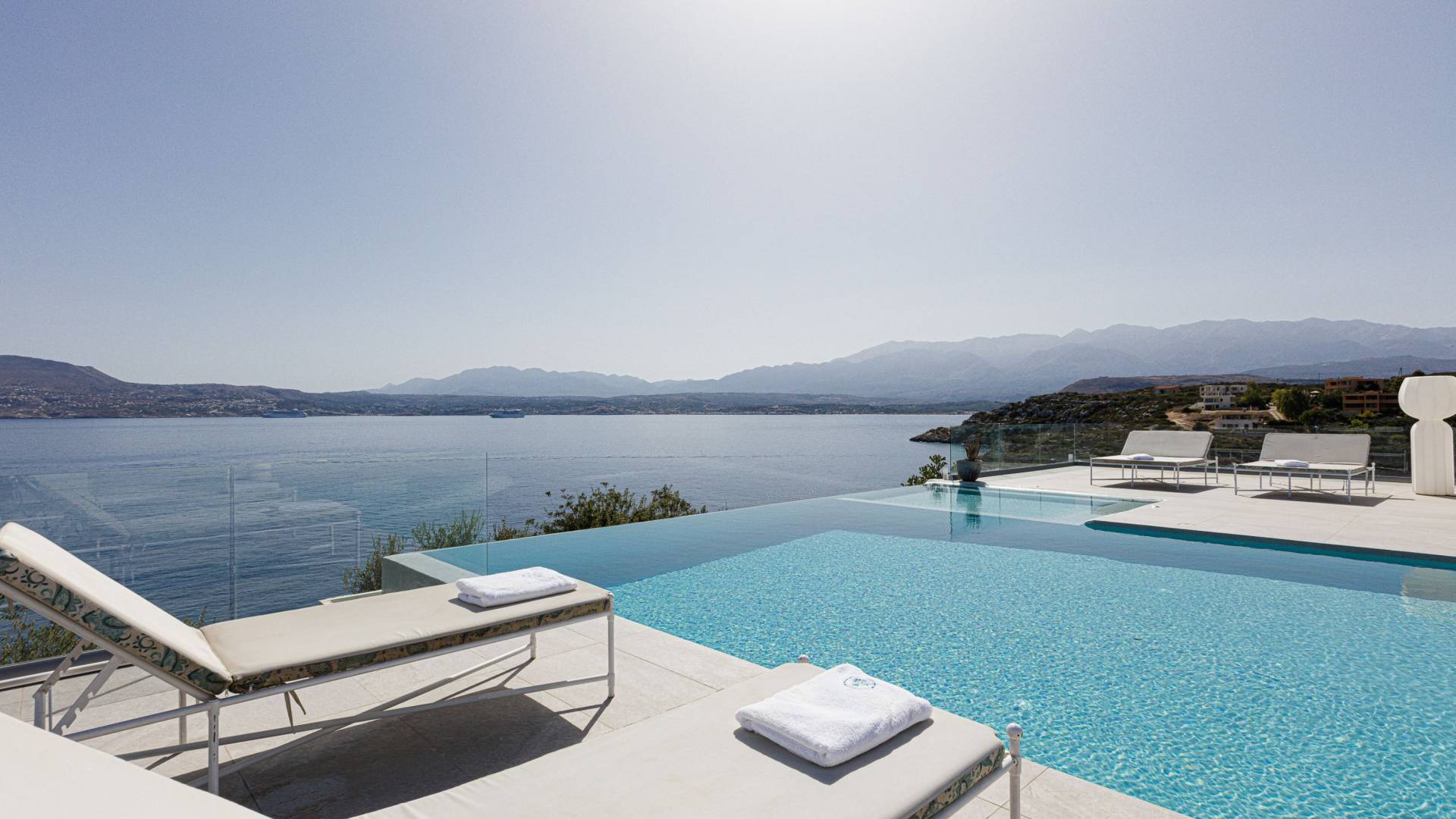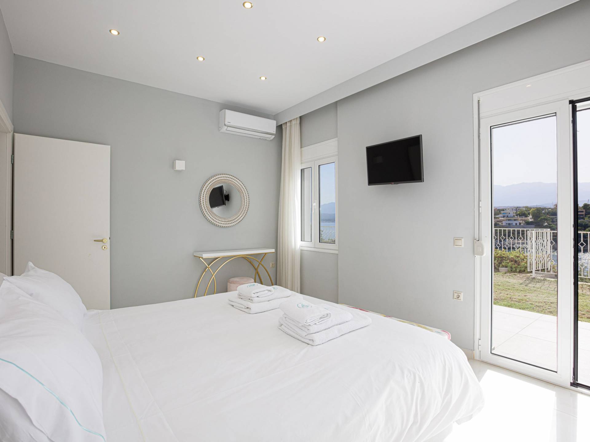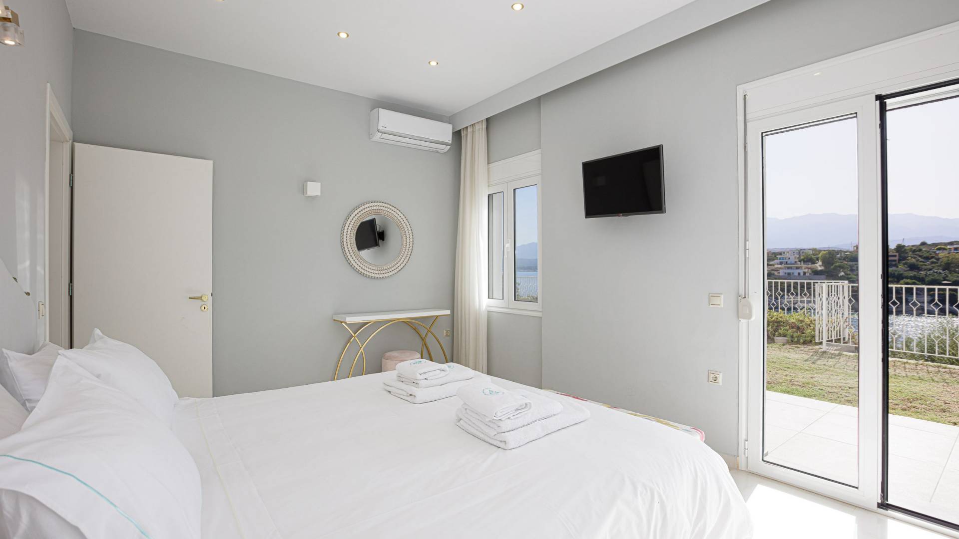Le ville a Loutraki sono progettate per integrarsi armoniosamente con l’ambiente naturale. Molte offrono piscine private, terrazze ombreggiate con vista mare e, in alcuni casi, accesso diretto alla spiaggia. Ogni momento qui diventa speciale: dal caffè mattutino con vista al tramonto con un calice di vino cretese.