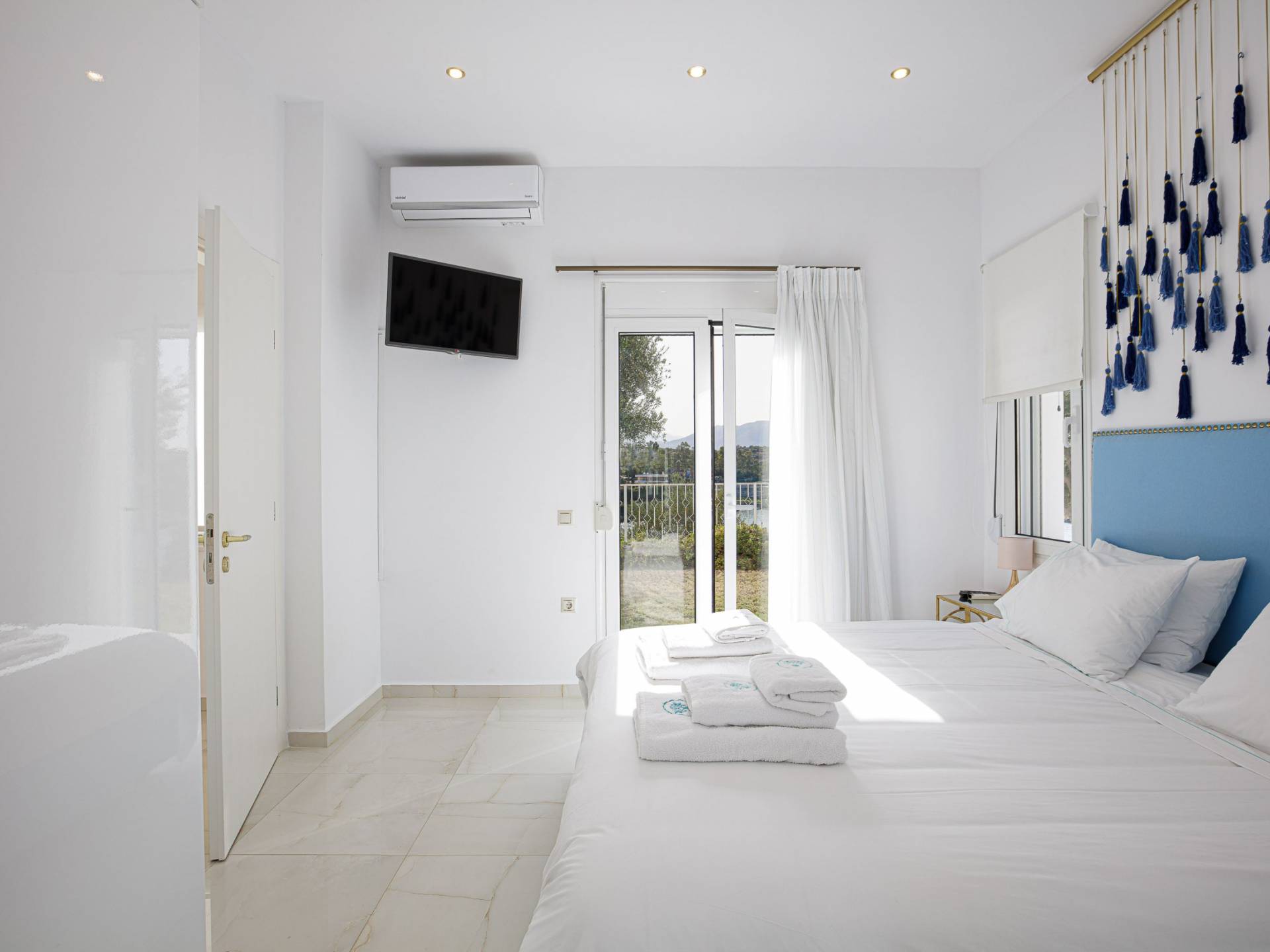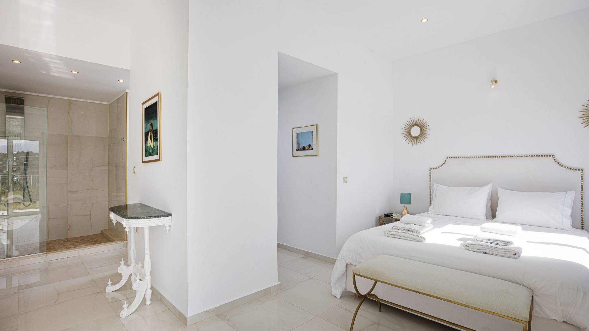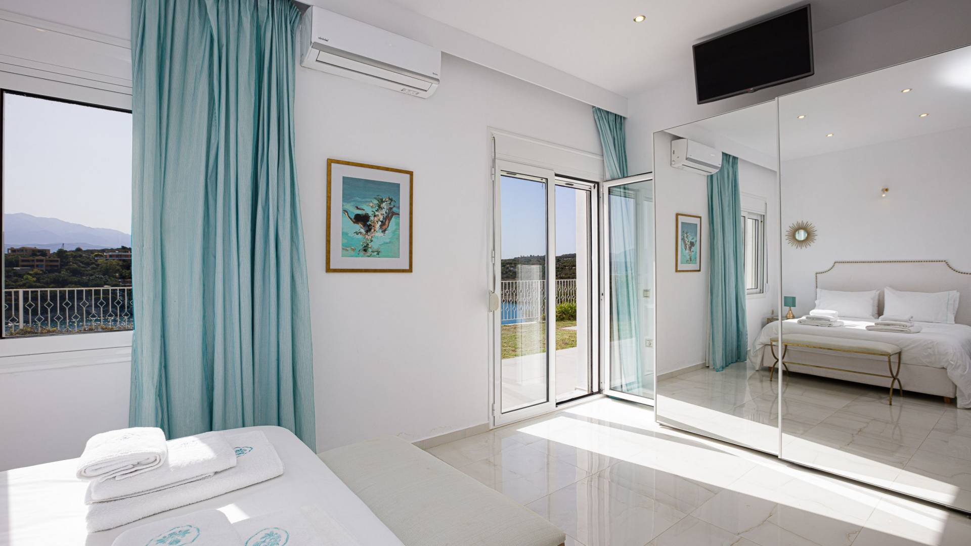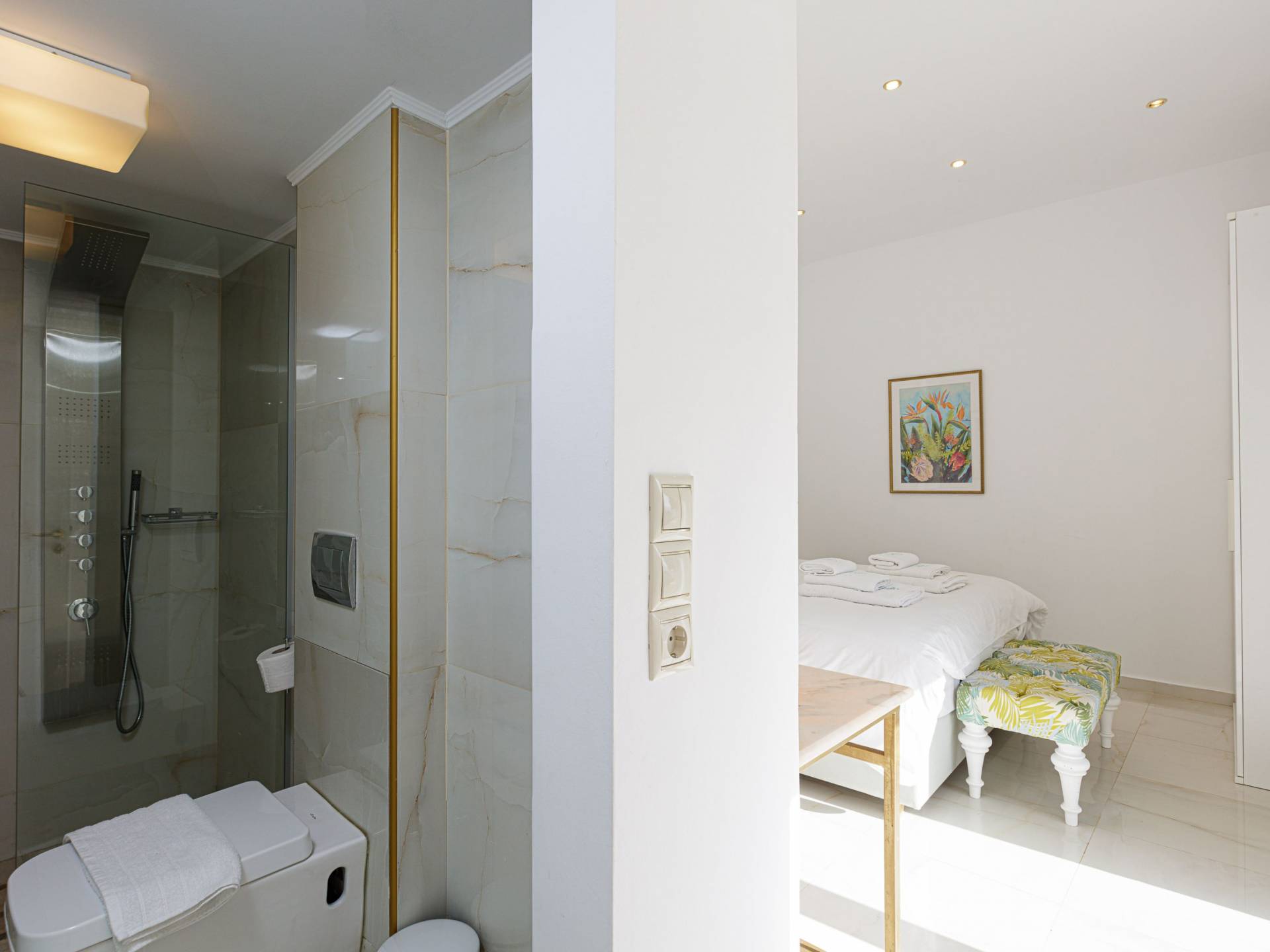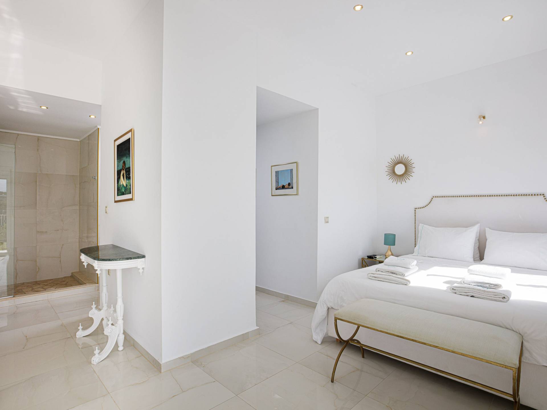 Tutte le sei eleganti camere da letto sono dotate di bagno privato piastrellato in granito, docce Jacuzzi e lavandini appoggiati su piani in marmo di alta qualità con finiture dorate. Gli ospiti possono crogiolarsi in un sonno profondo su materassi anatomici, che garantiscono comfort e relax, e svegliarsi con viste avvincenti della baia. A seconda dei desideri degli ospiti, due delle camere possono diventare doppie o matrimoniali, mentre un divano letto in uno dei tre soggiorni consente di aggiungere un letto matrimoniale aggiuntivo.