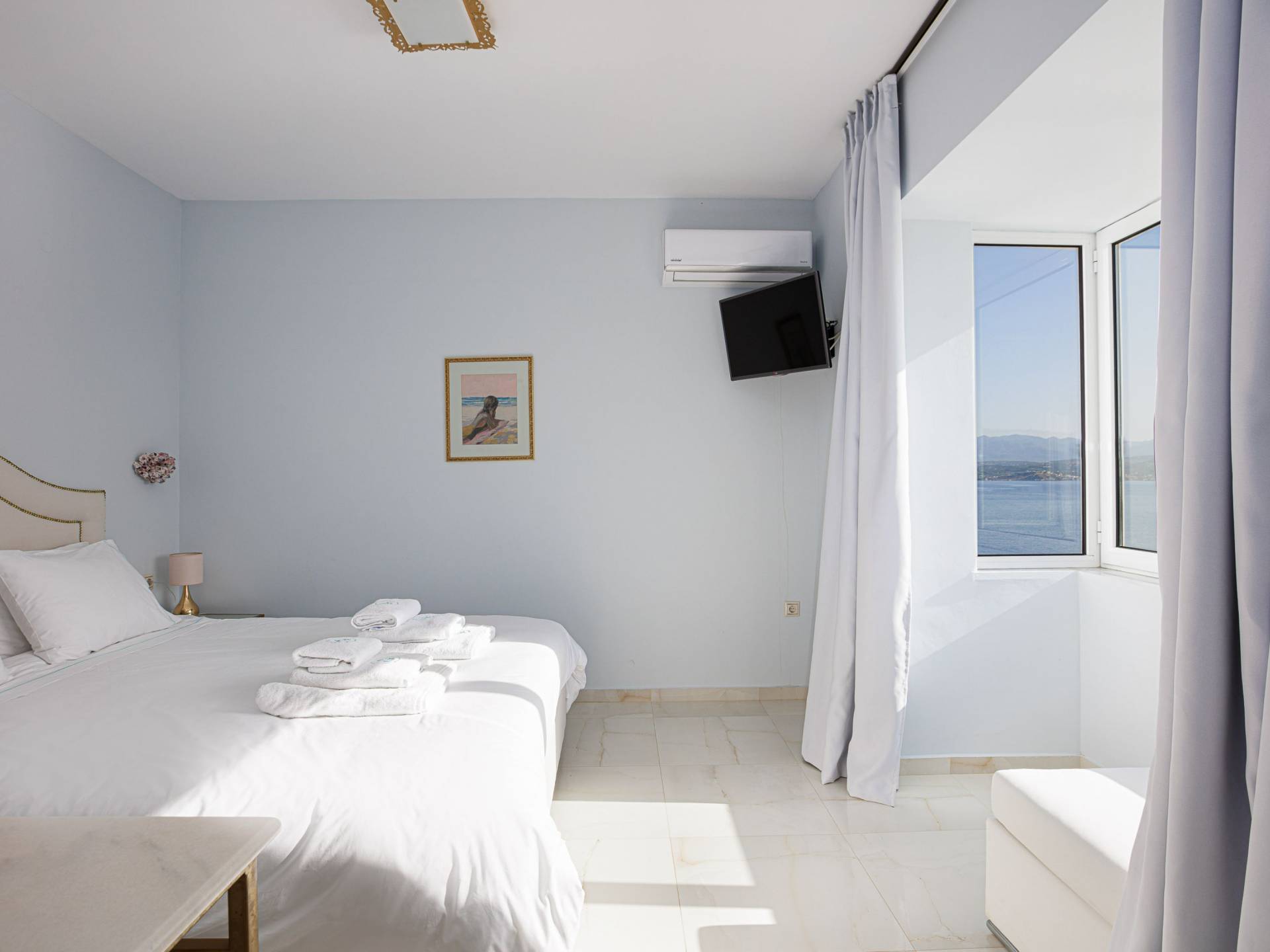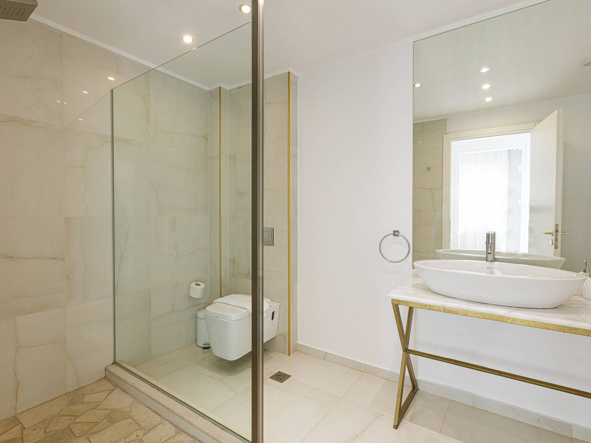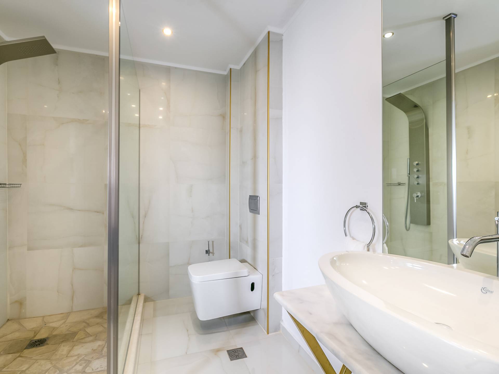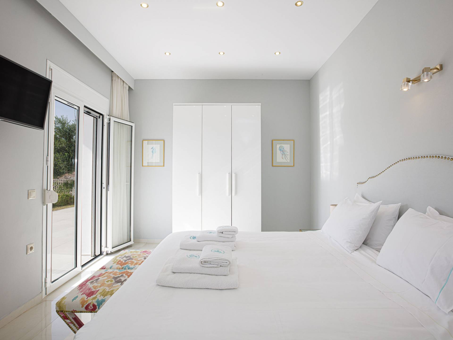 Tutte le sei eleganti camere da letto sono dotate di bagno privato piastrellato in granito, docce Jacuzzi e lavandini appoggiati su piani in marmo di alta qualità con finiture dorate. Gli ospiti possono crogiolarsi in un sonno profondo su materassi anatomici, che garantiscono comfort e relax, e svegliarsi con viste avvincenti della baia. A seconda dei desideri degli ospiti, due delle camere possono diventare doppie o matrimoniali, mentre un divano letto in uno dei tre soggiorni consente di aggiungere un letto matrimoniale aggiuntivo.