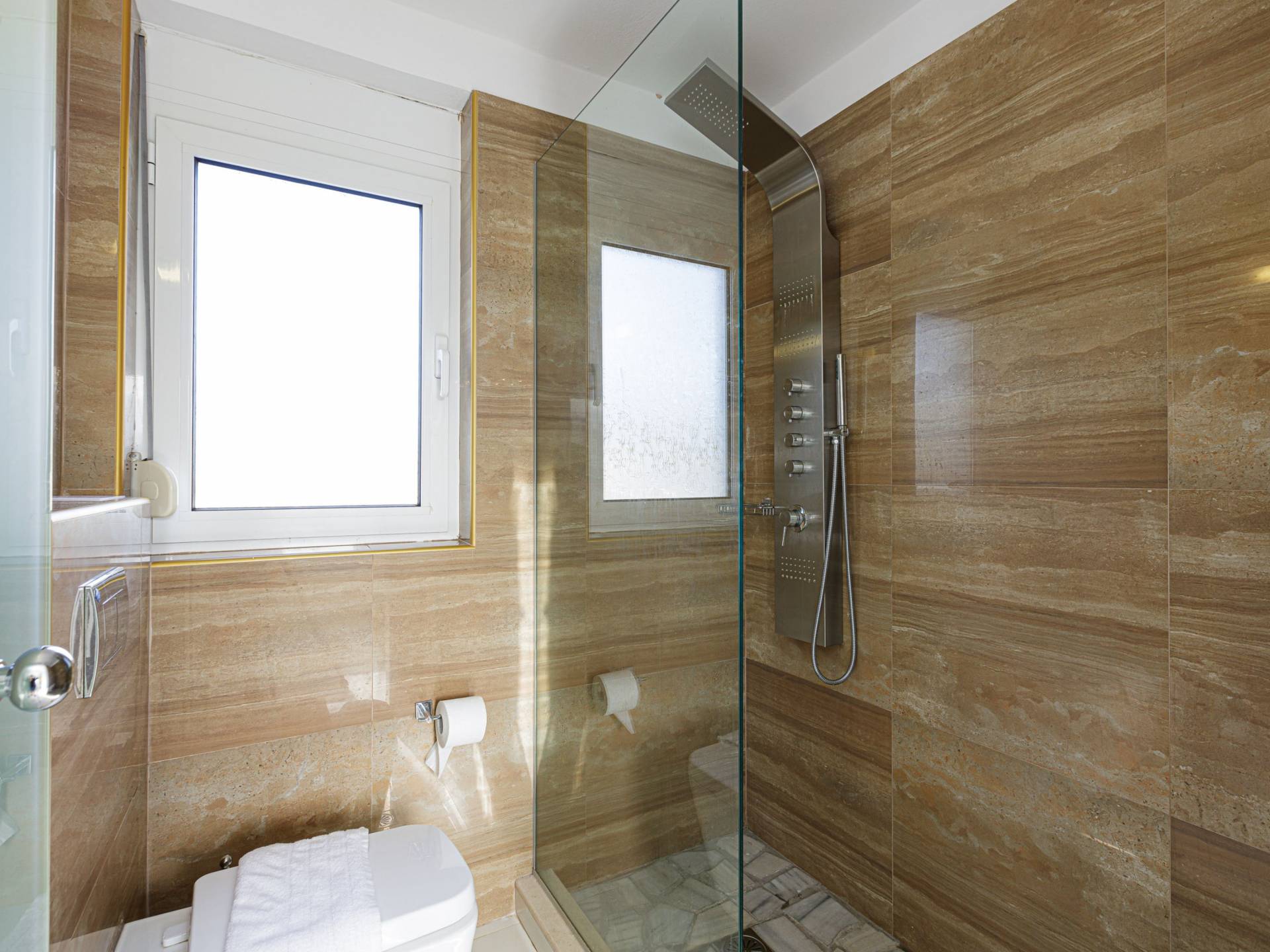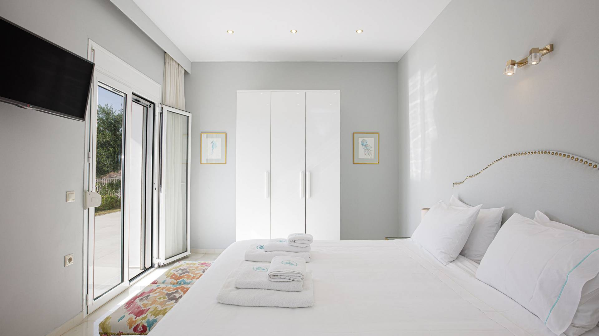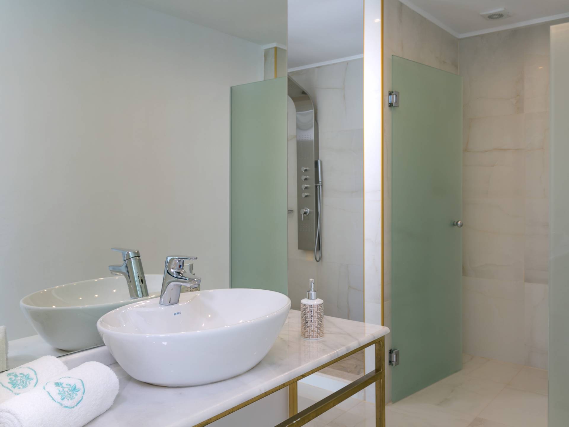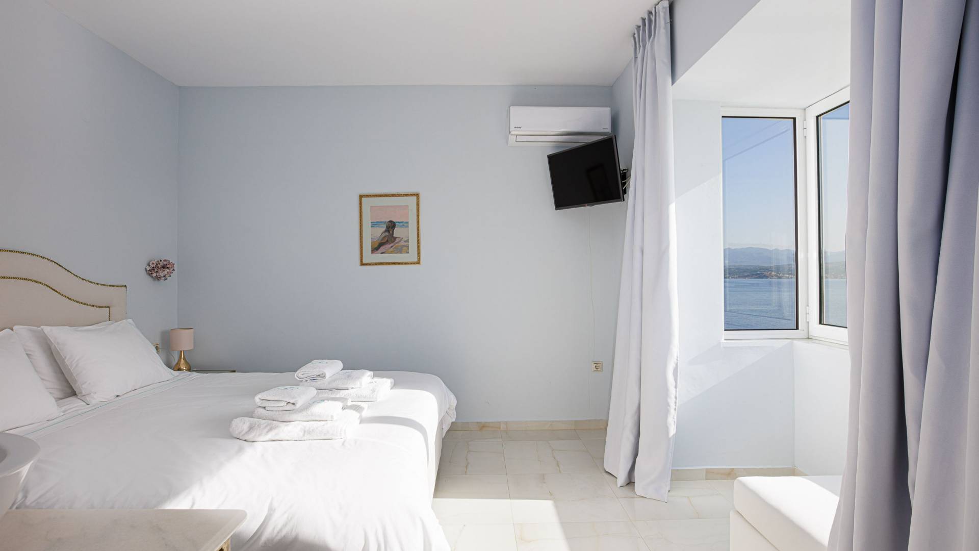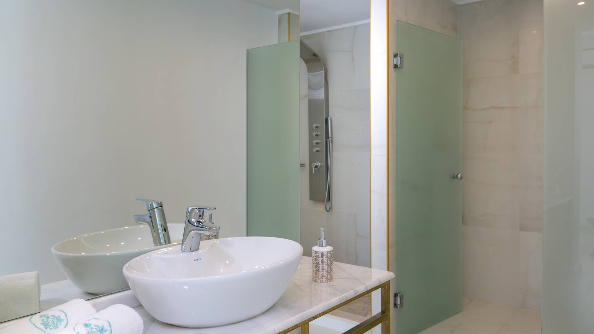 Tutte le sei eleganti camere da letto sono dotate di bagno privato piastrellato in granito, docce Jacuzzi e lavandini appoggiati su piani in marmo di alta qualità con finiture dorate. Gli ospiti possono crogiolarsi in un sonno profondo su materassi anatomici, che garantiscono comfort e relax, e svegliarsi con viste avvincenti della baia. A seconda dei desideri degli ospiti, due delle camere possono diventare doppie o matrimoniali, mentre un divano letto in uno dei tre soggiorni consente di aggiungere un letto matrimoniale aggiuntivo.