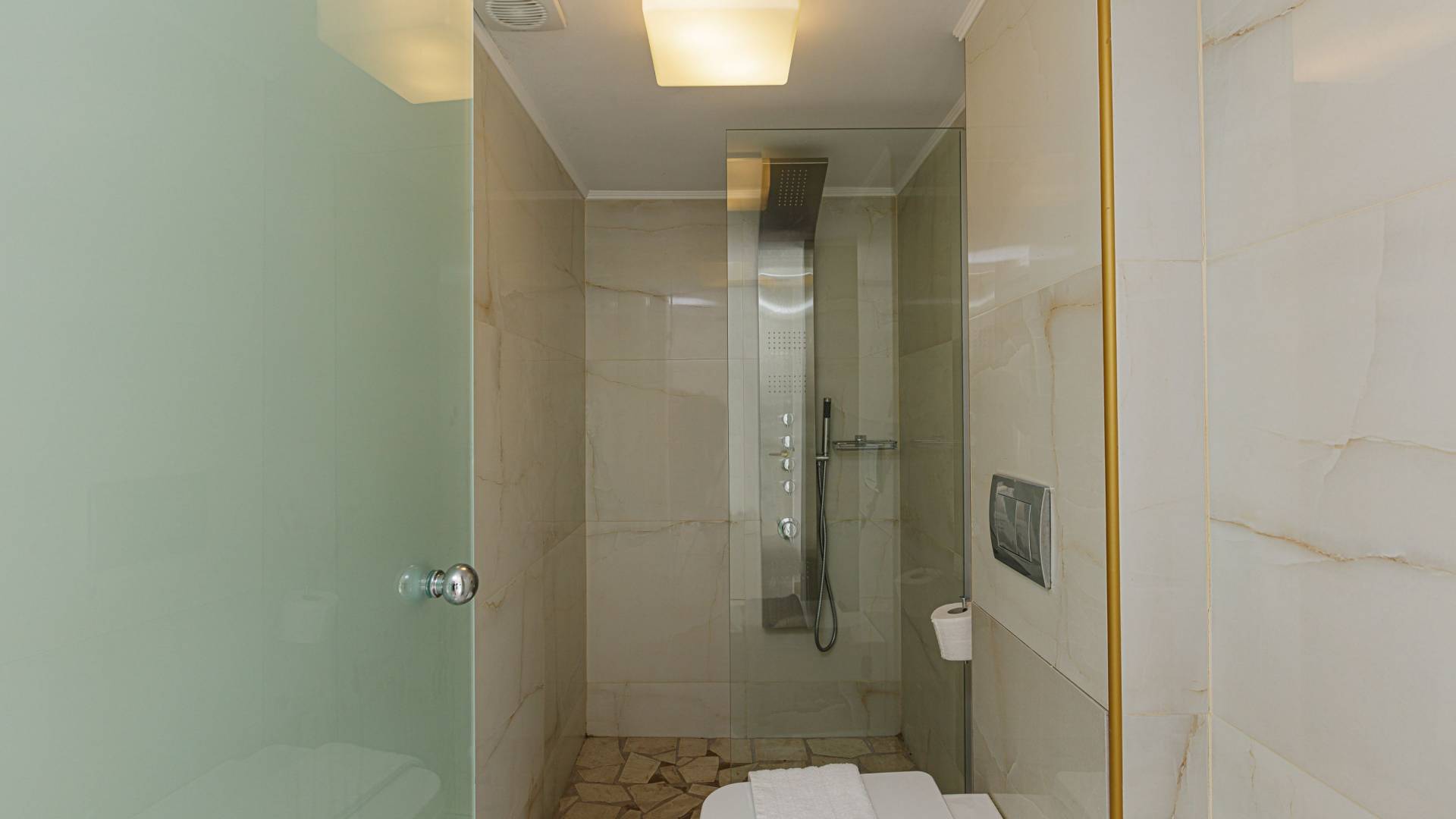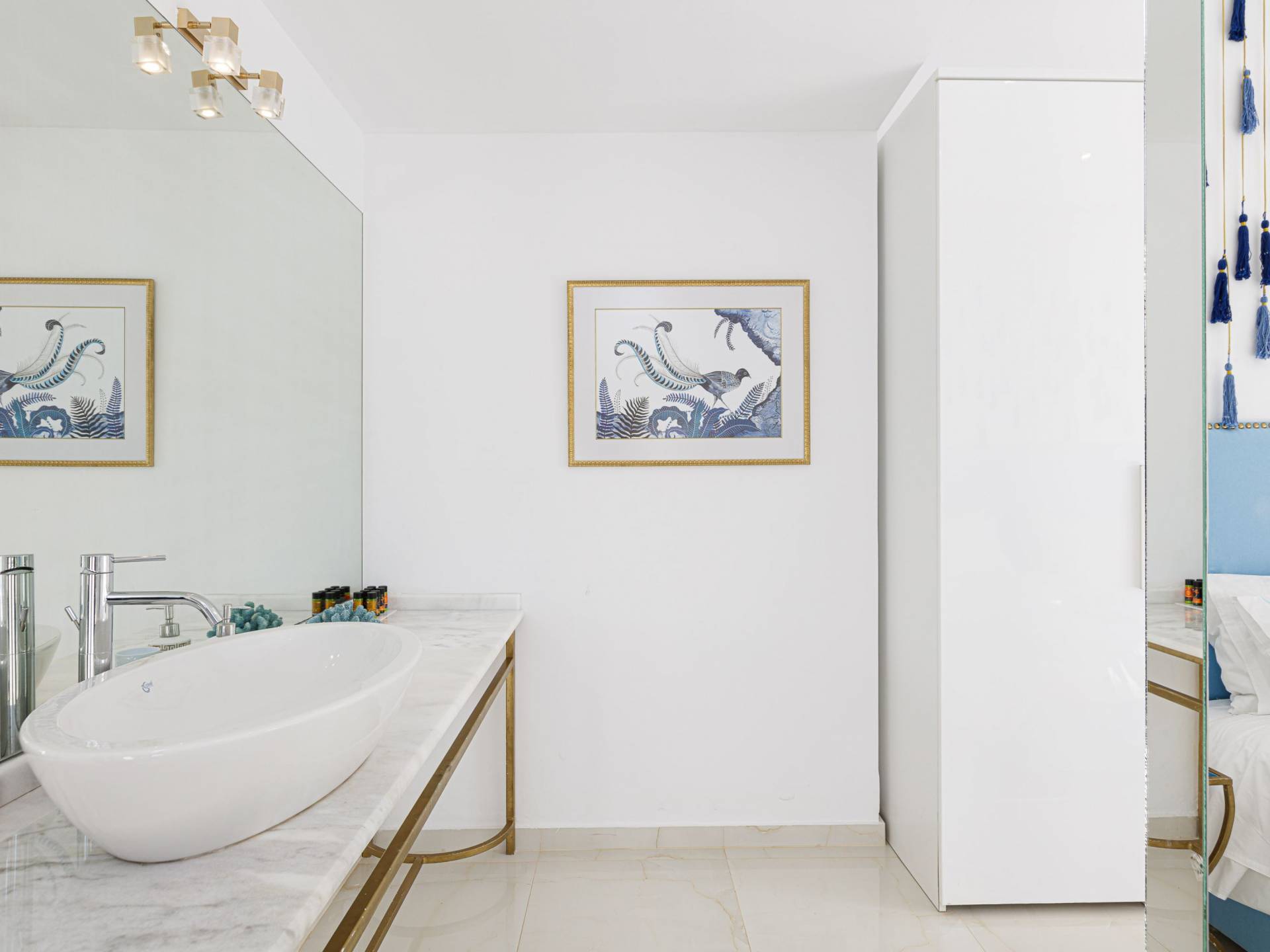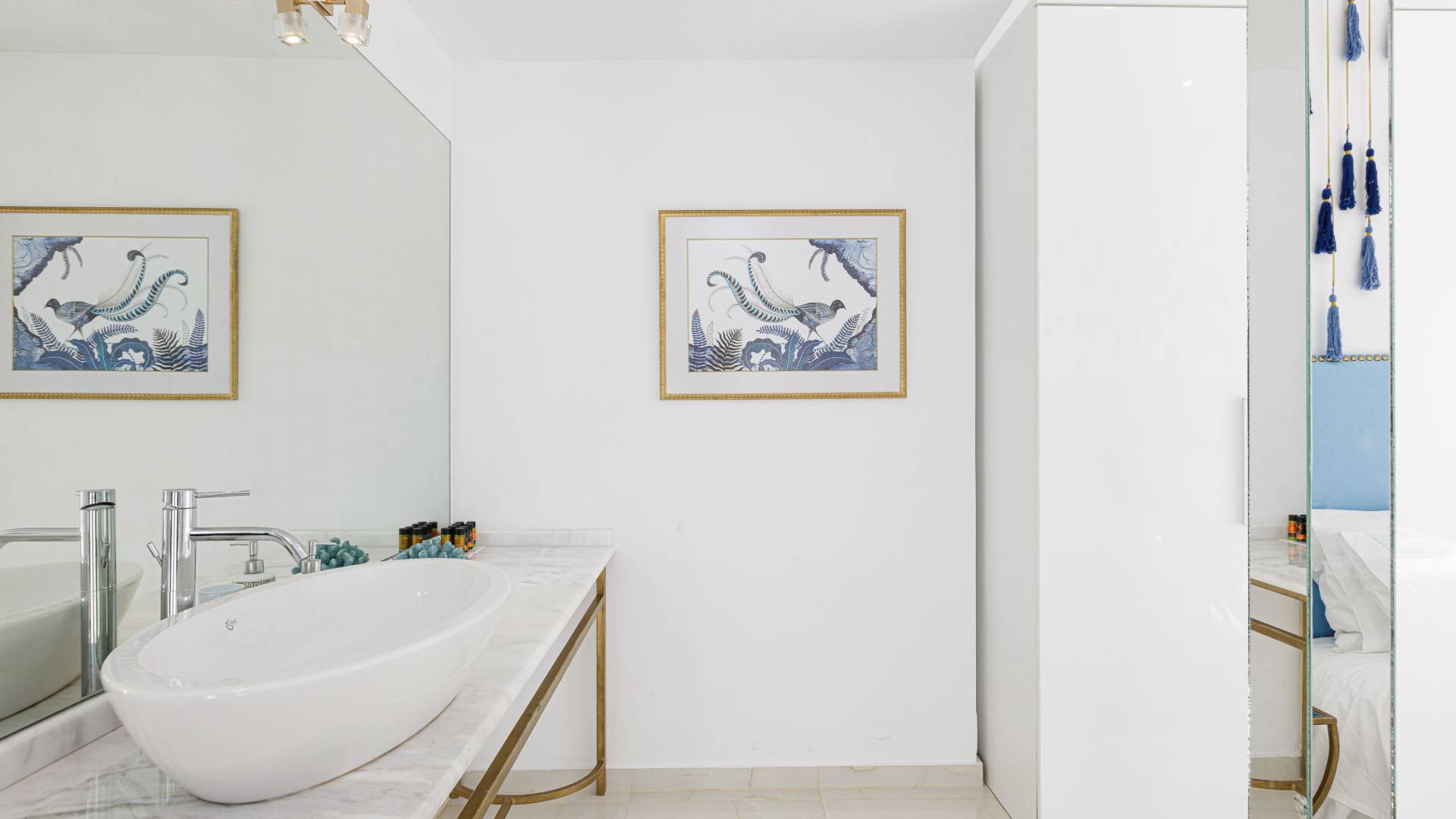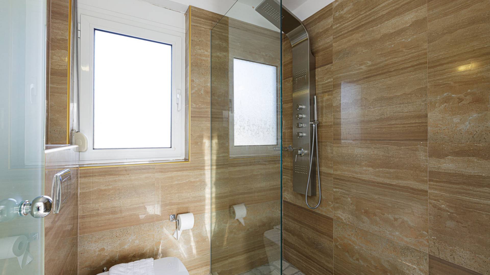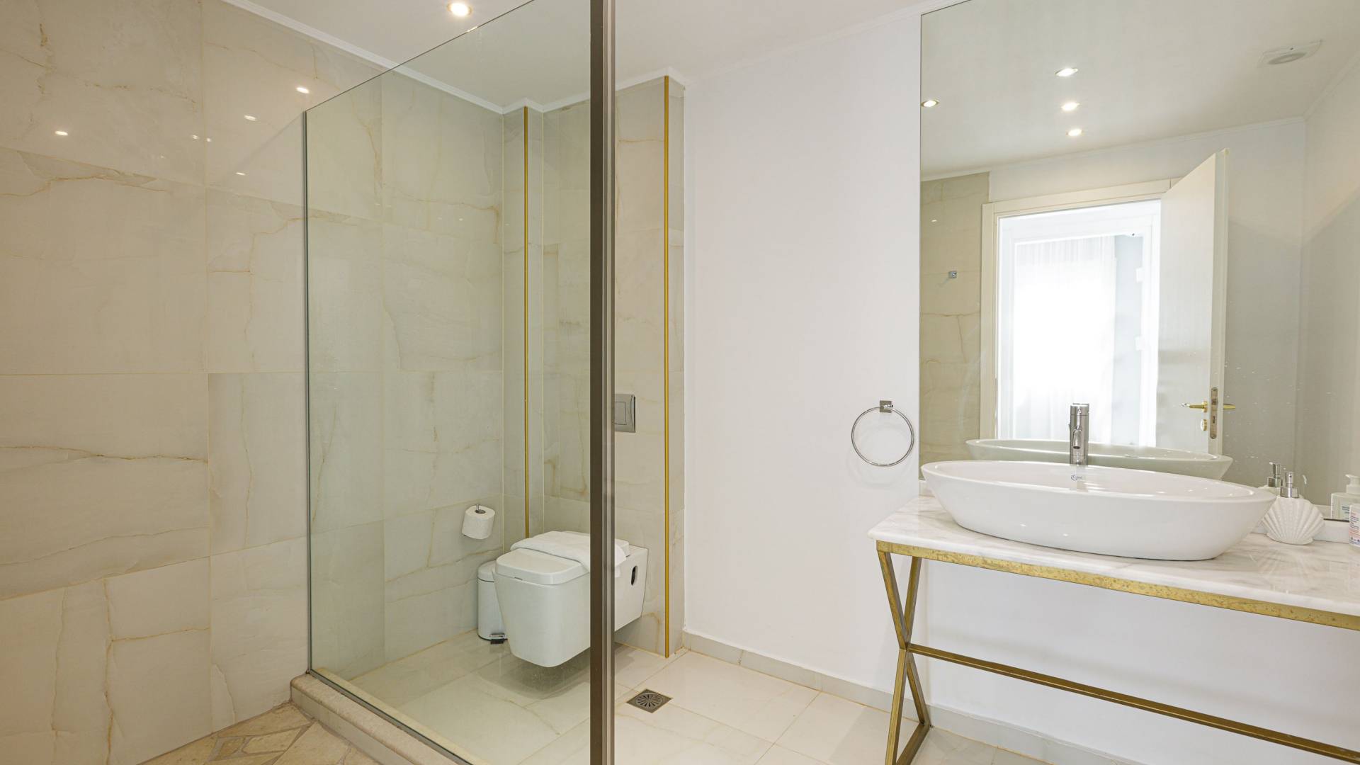 Tutte le sei eleganti camere da letto sono dotate di bagno privato piastrellato in granito, docce Jacuzzi e lavandini appoggiati su piani in marmo di alta qualità con finiture dorate. Gli ospiti possono crogiolarsi in un sonno profondo su materassi anatomici, che garantiscono comfort e relax, e svegliarsi con viste avvincenti della baia. A seconda dei desideri degli ospiti, due delle camere possono diventare doppie o matrimoniali, mentre un divano letto in uno dei tre soggiorni consente di aggiungere un letto matrimoniale aggiuntivo.