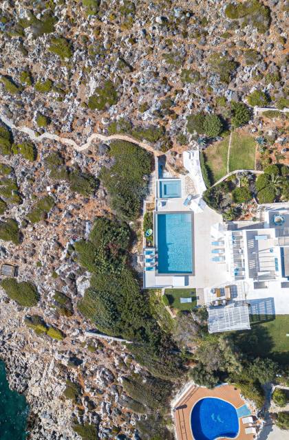 Immerso su una collina che si affaccia sul luccicante mare cretese, Villa Serenique Chania è un paradiso per famiglie numerose o gruppi di amici che cercano privacy, comfort e viste indimenticabili. Con un percorso privato verso la costa, una piscina di 65 m², una vasca idromassaggio all'aperto e spaziosi aree abitative al coperto, è la miscela perfetta di isolamento e facile accesso alle spiagge più famose di Creta.