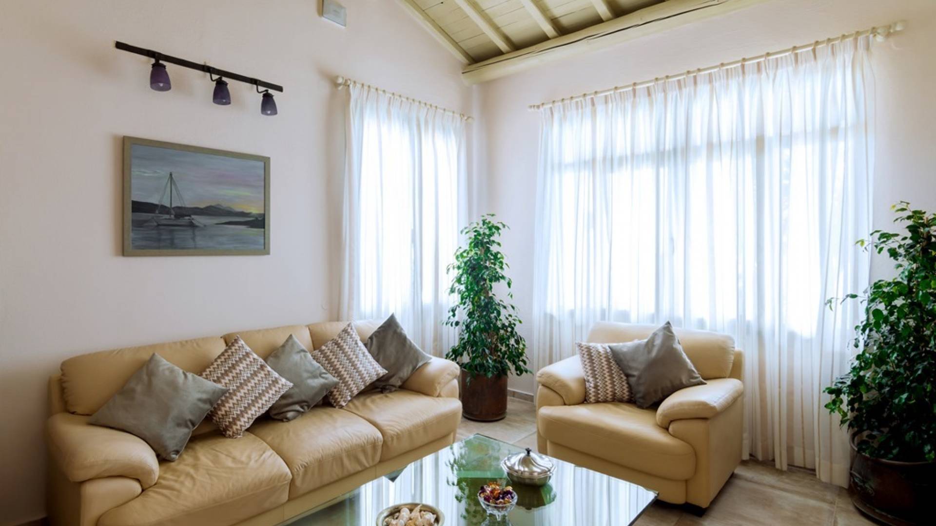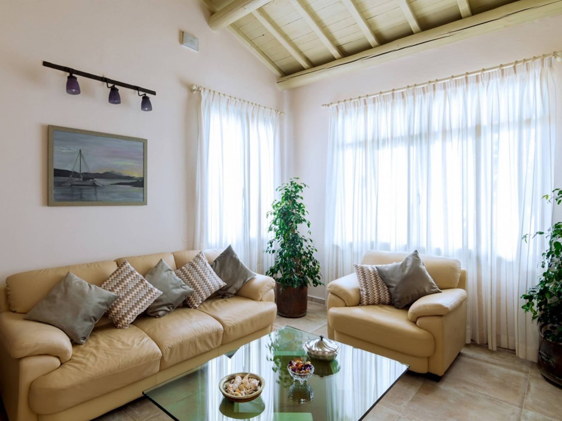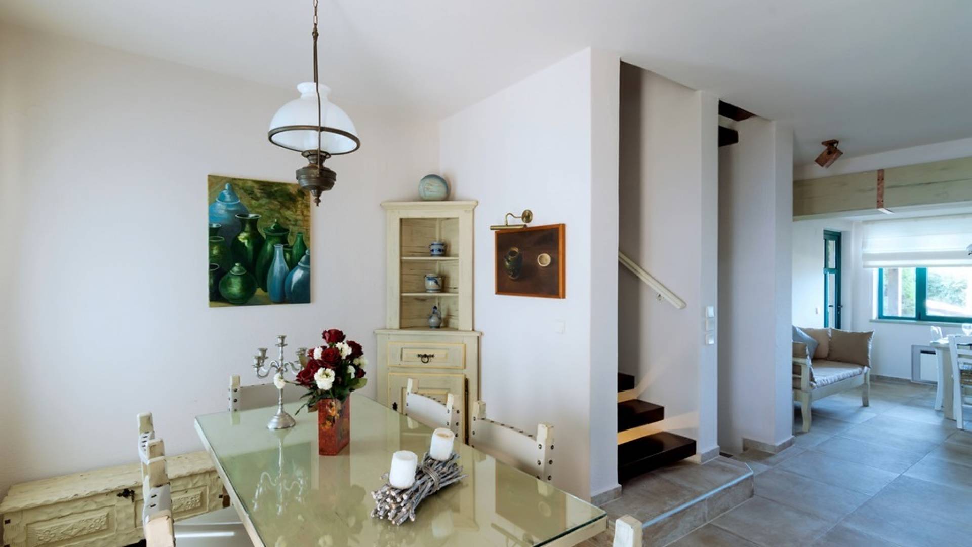 La villa è costruita nello stile architettonico di una maisonette a due piani. Il piano terra, a sua volta, è su due livelli diversi ed è composto dal soggiorno principale con camino, una sala da pranzo separata e una cucina a pianta aperta molto grande, mentre tre gradini più in basso si trova una camera da letto con il proprio bagno e veranda. ad esso, troviamo la palestra con bagno turco. Salendo al secondo piano abbiamo la seconda camera da letto, anch'essa con proprio bagno e veranda e al livello superiore la terza camera da letto con proprio bagno en-suite e veranda.