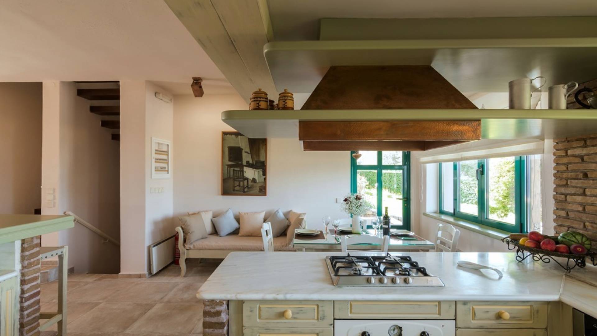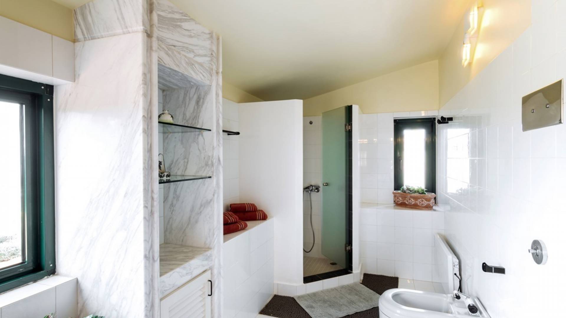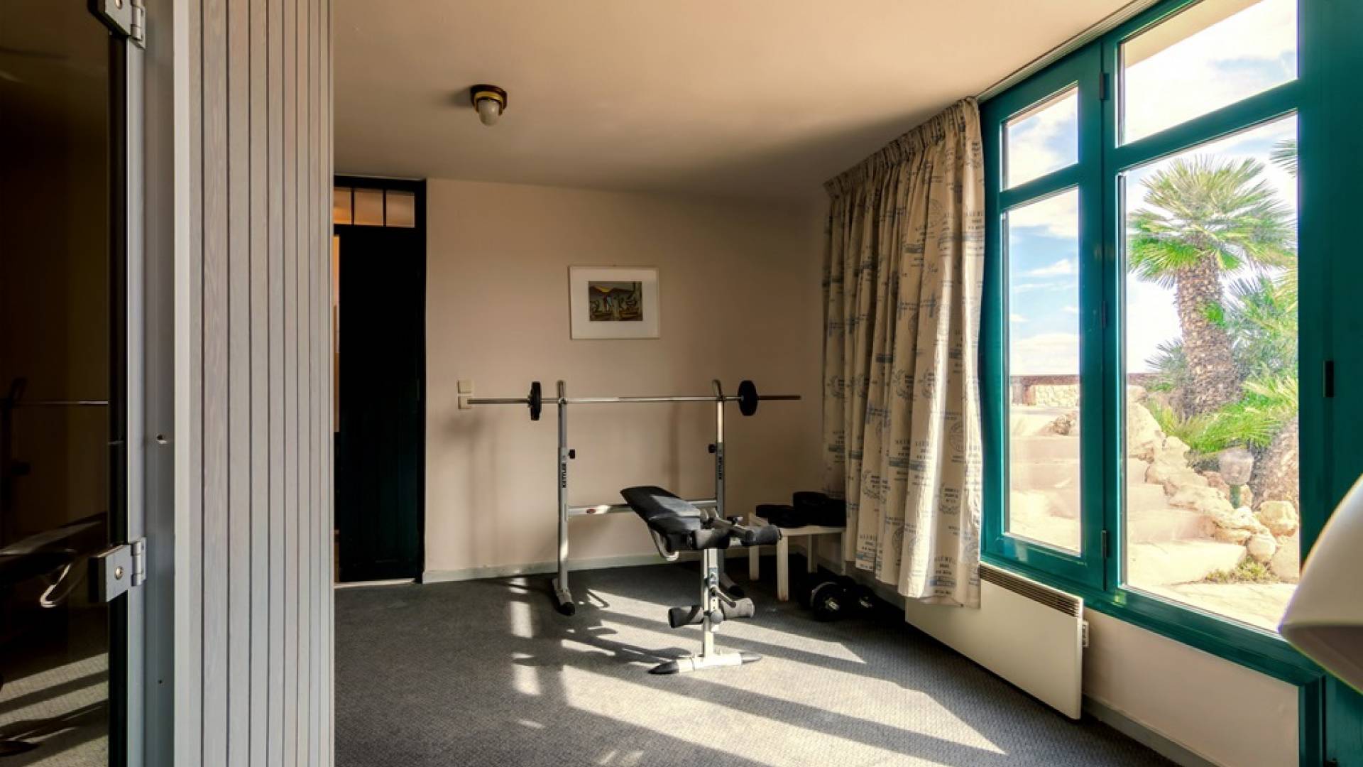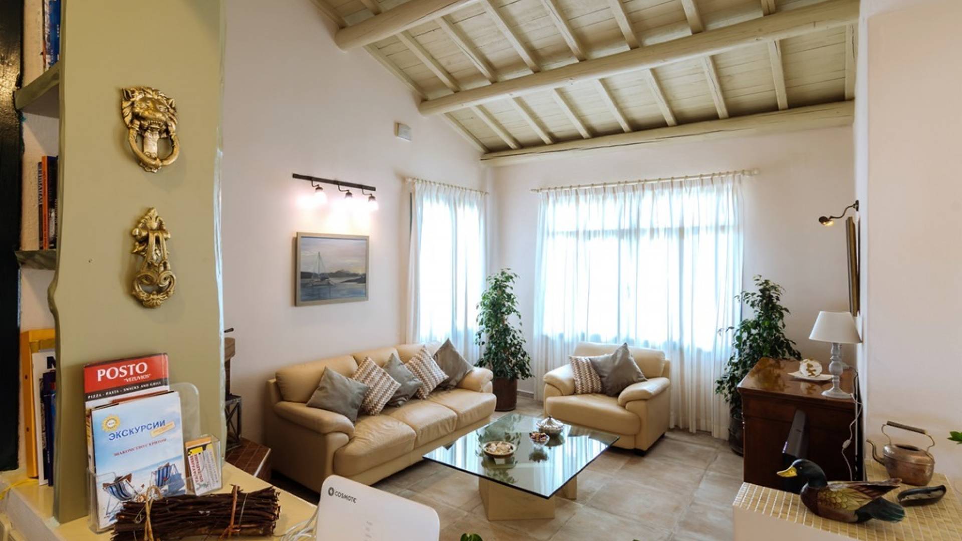 La villa è costruita nello stile architettonico di una maisonette a due piani. Il piano terra, a sua volta, è su due livelli diversi ed è composto dal soggiorno principale con camino, una sala da pranzo separata e una cucina a pianta aperta molto grande, mentre tre gradini più in basso si trova una camera da letto con il proprio bagno e veranda. ad esso, troviamo la palestra con bagno turco. Salendo al secondo piano abbiamo la seconda camera da letto, anch'essa con proprio bagno e veranda e al livello superiore la terza camera da letto con proprio bagno en-suite e veranda.