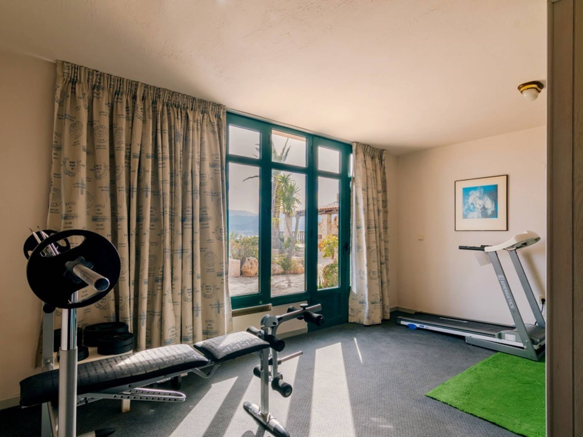 Costruito su diversi livelli, combina la bellezza naturale di 2,5 acri lussureggianti di un superbo giardino paesaggistico, con un'elegante grande piscina ben attrezzata, con sdraio e ombrelloni, e una zona barbecue, di cui godono i posti a sedere una splendida vista sulla baia.