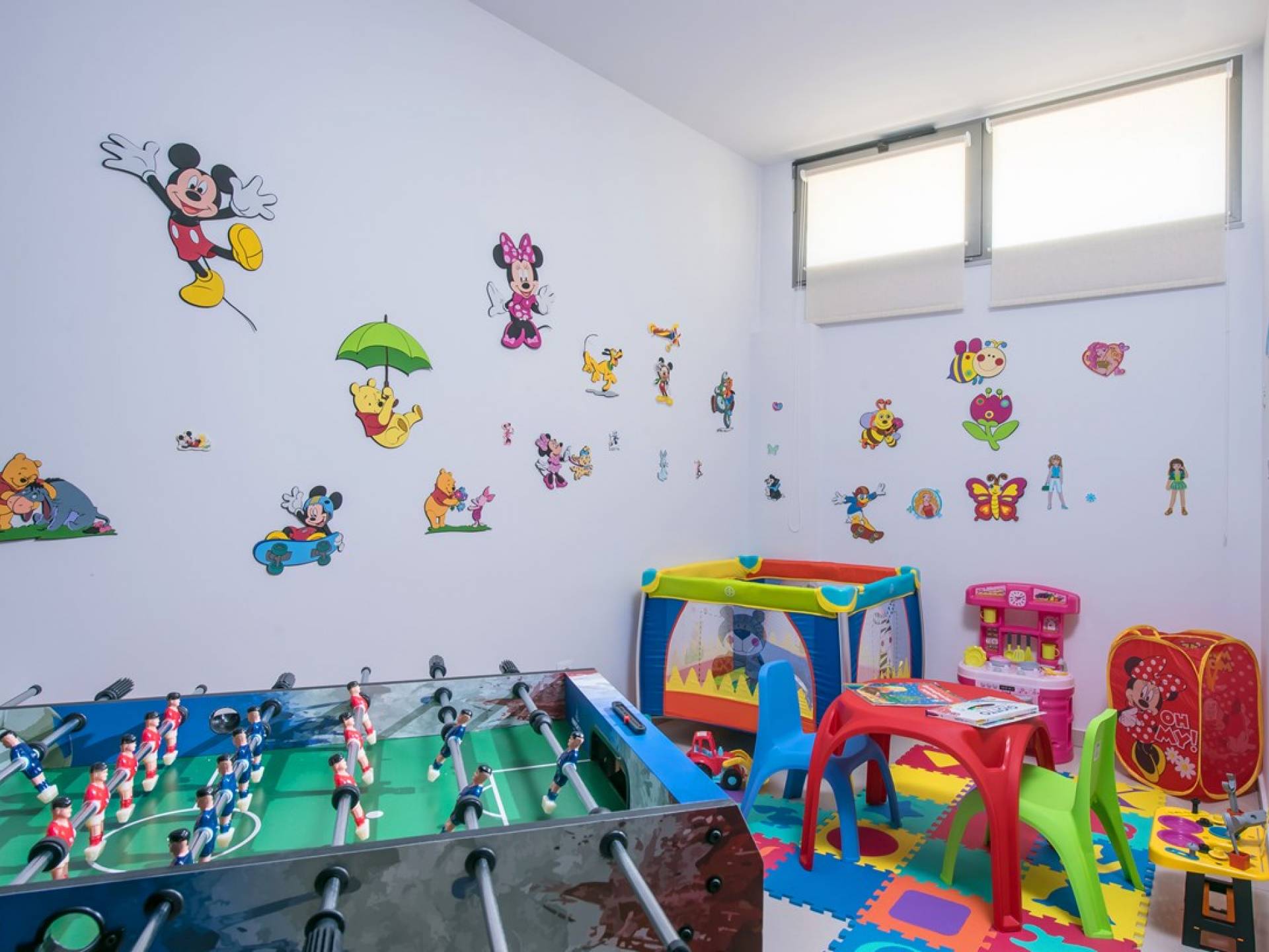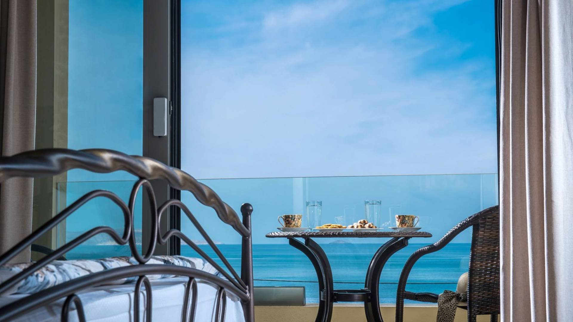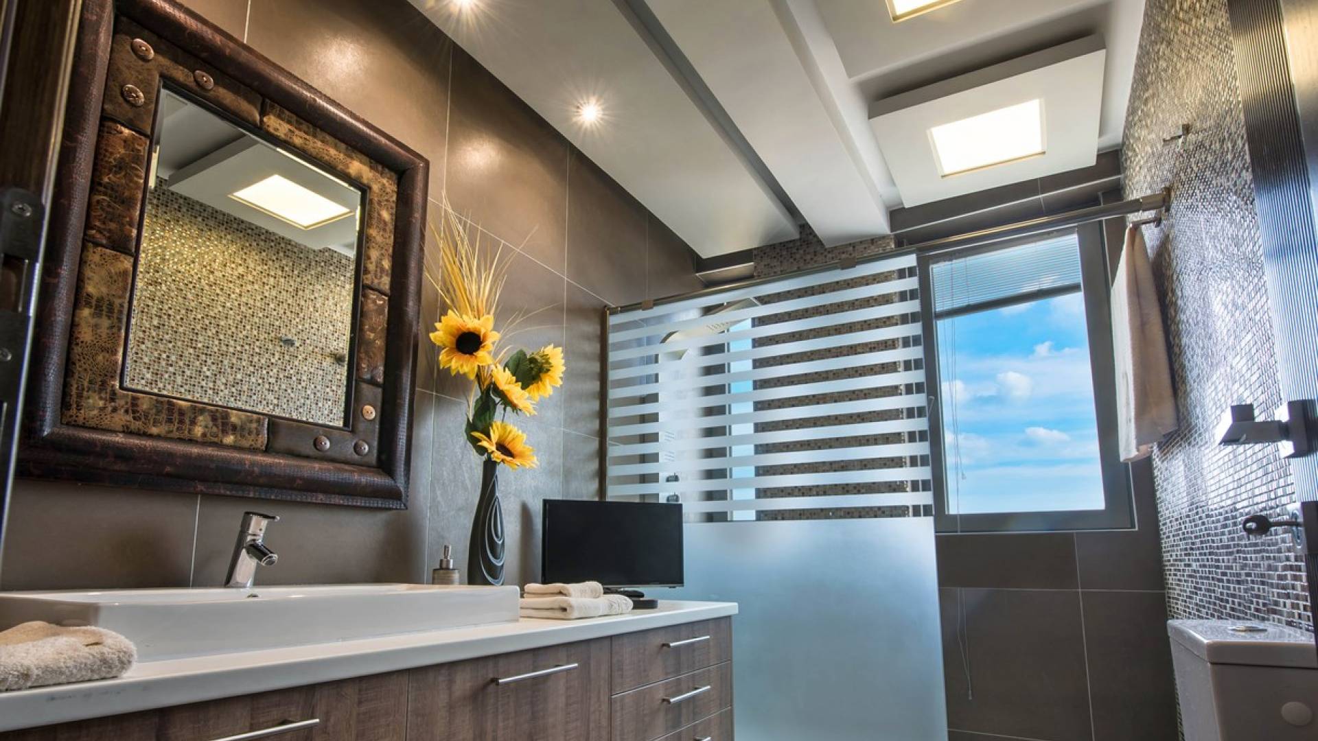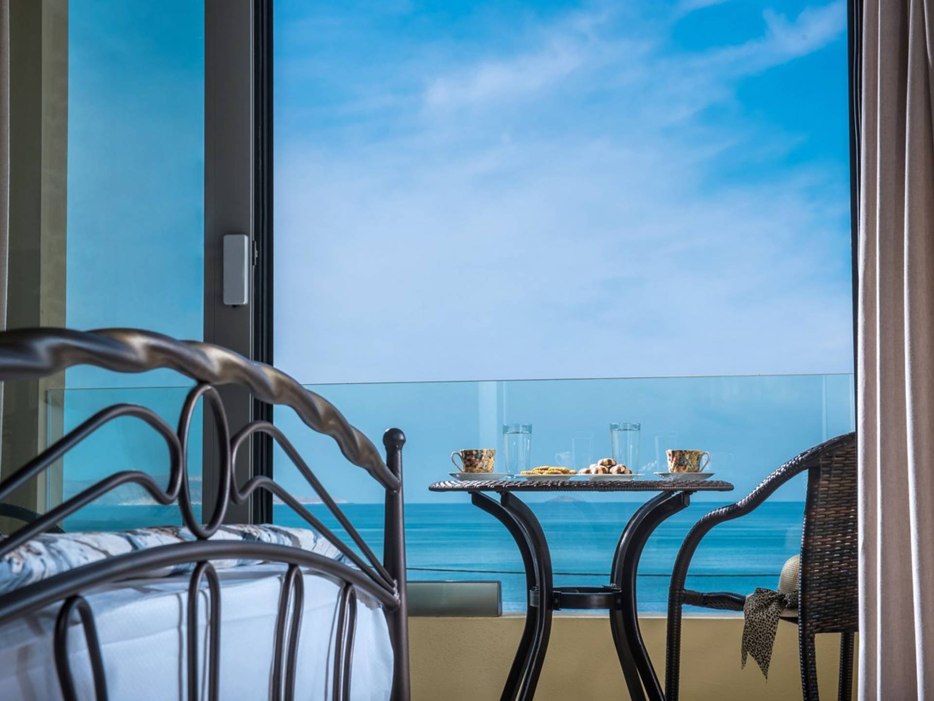 La rampa di scale interna porta gli ospiti al livello inferiore dove si trova una piccola palestra privata, attrezzata con attrezzi ginnici Kettler (cyclette, ellittica, pesi, ecc.). Un angolo giocoso nella stanza dei giochi offre momenti di spensieratezza senza fine agli ospiti di tutte le età. Sullo stesso piano è disponibile una camera con letto matrimoniale dall'arredo romantico, un bagno con vasca e una zona lavanderia completamente attrezzata, asciugatrice e armadio. Il primo piano di Artemis Villa Heraklion è un omaggio all'ospitalità di lusso. Qui, la camera matrimoniale decorata con tenui colori della terra offre agli ospiti calore e un ambiente di gusto squisito. Le caratteristiche in pietra contraddicono i cristalli Swarovski degli infissi e il romantico letto metallico, mentre la TV a schermo piatto e lo specchio a figura intera aggiungono un tocco di lusso in più. La camera ha accesso a due verande private con vista libera sul mare. La camera offre un WC privato con doccia.
