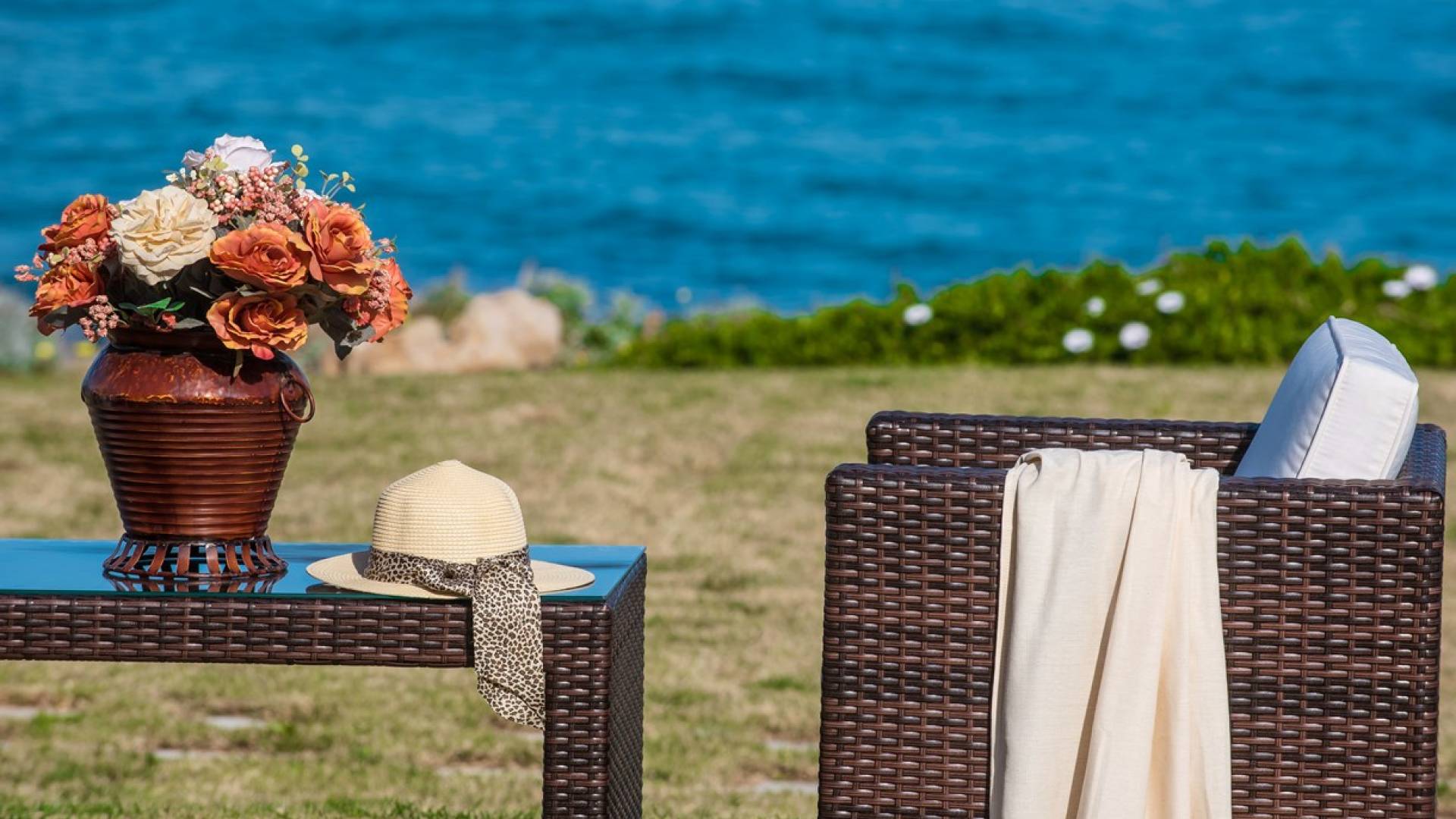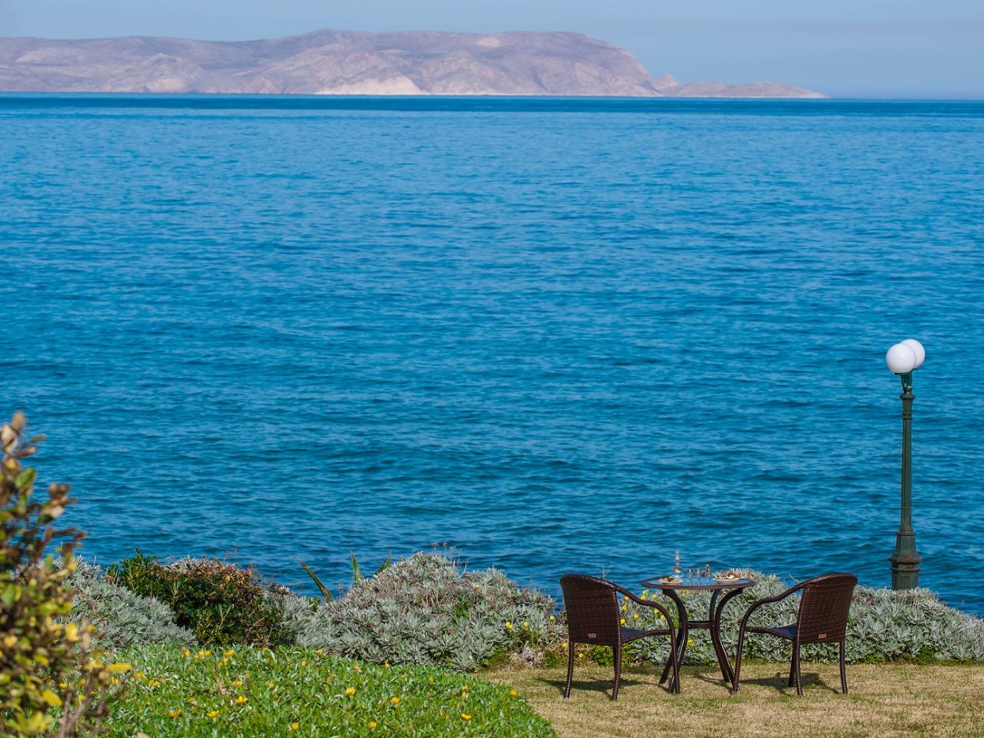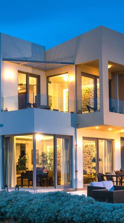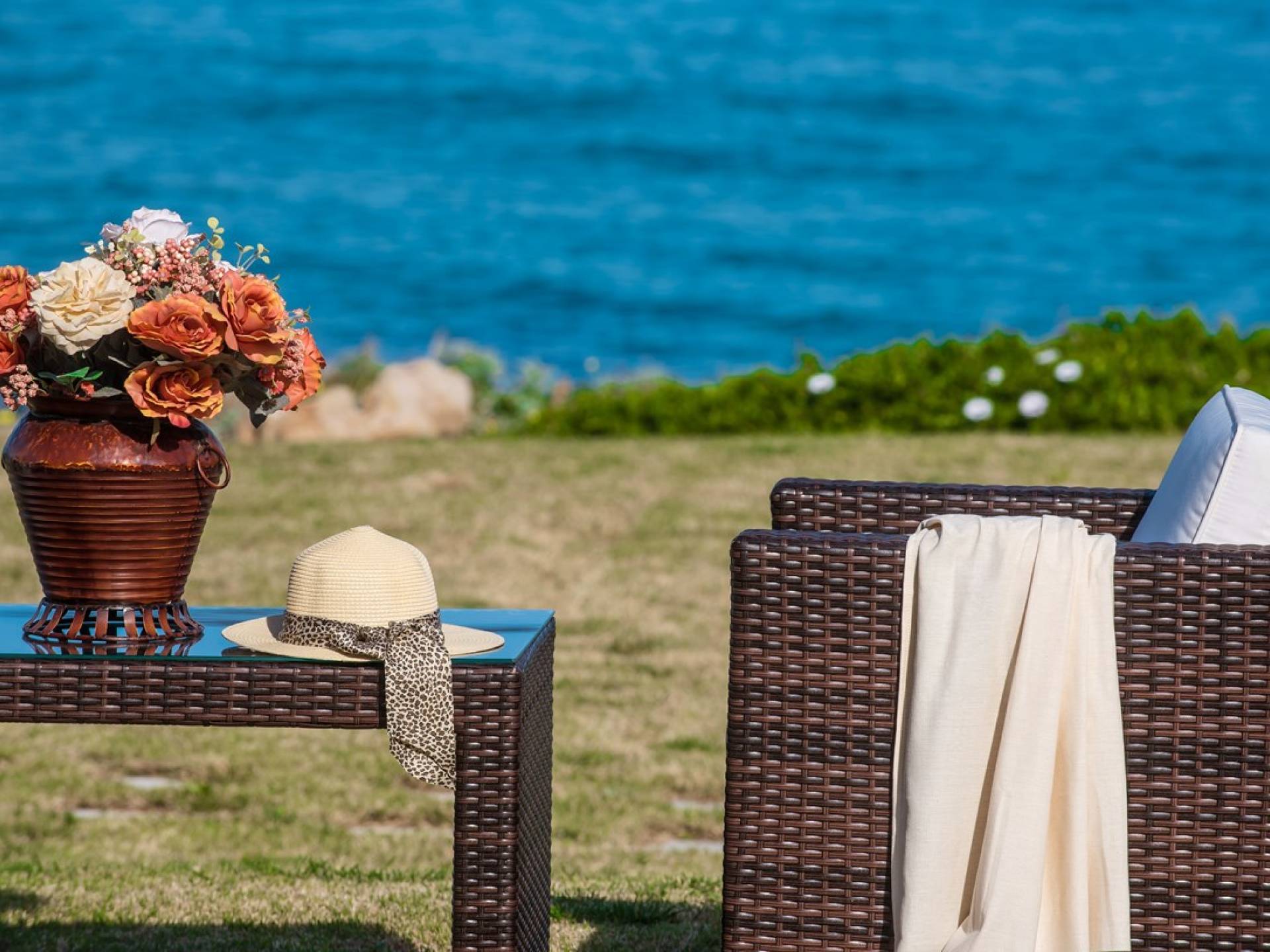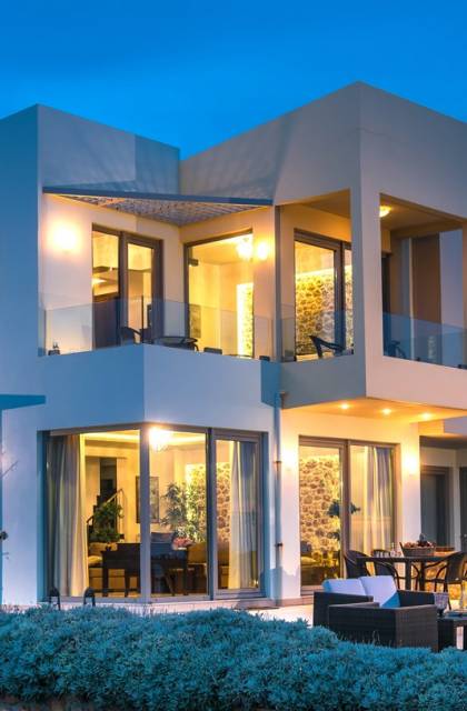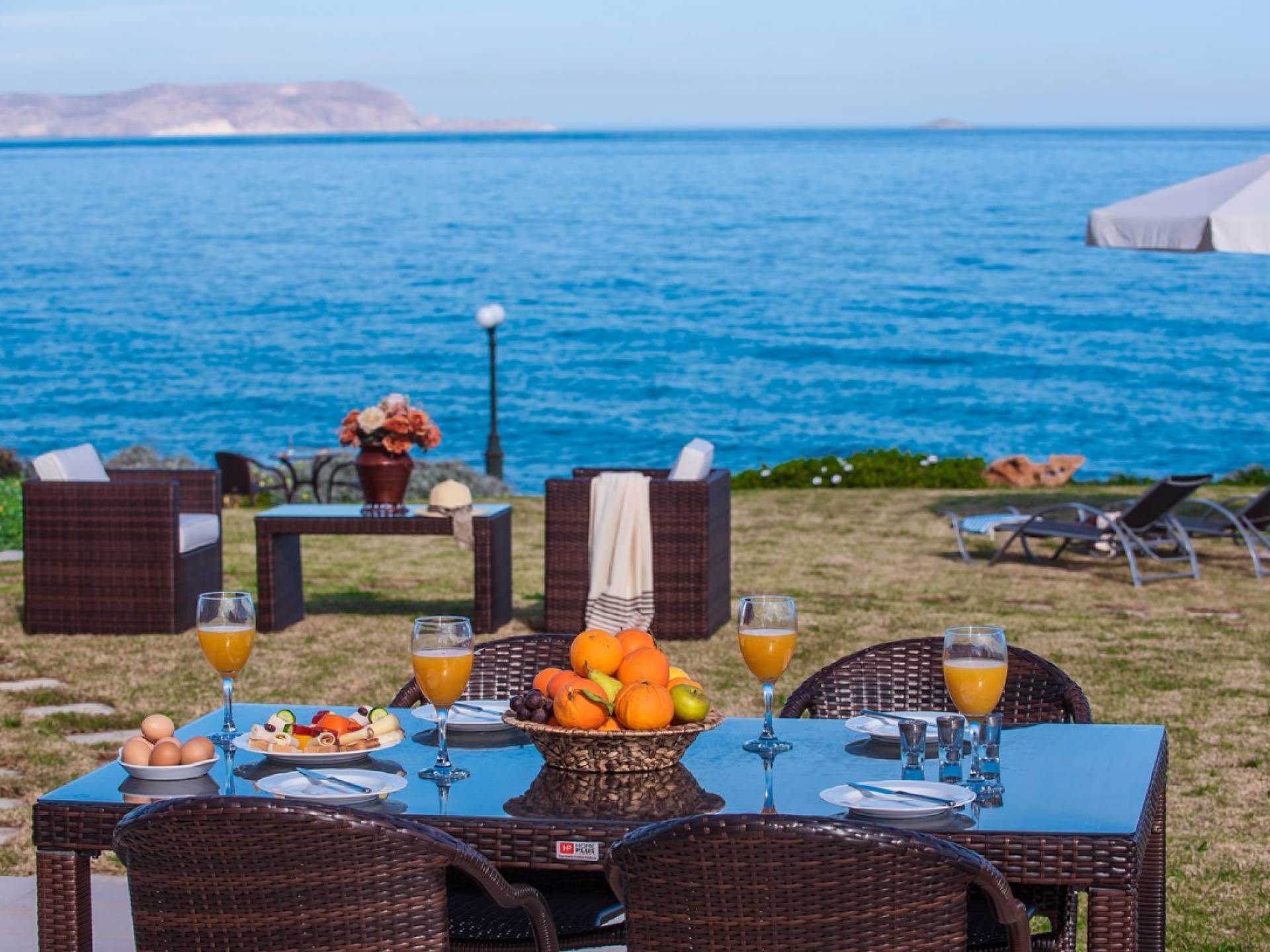 Due comode camere da letto con letti semi-matrimoniali e un ampio bagno completano il piano. Una doccia idromassaggio, un minibar e una TV a schermo piatto sono i punti forti del bagno, ma soprattutto la vista incorniciata dalle finestre è mozzafiato. Artemis Villa Heraklion, oltre alle verande al primo piano, offre un'ampia terrazza al piano terra, la cui naturale prosecuzione è un ampio giardino con prato e piante ornamentali. Qui gli ospiti possono rilassarsi prendendo il sole su comodi lettini da spiaggia o godersi una cena privata tra i caldi colori del tramonto.