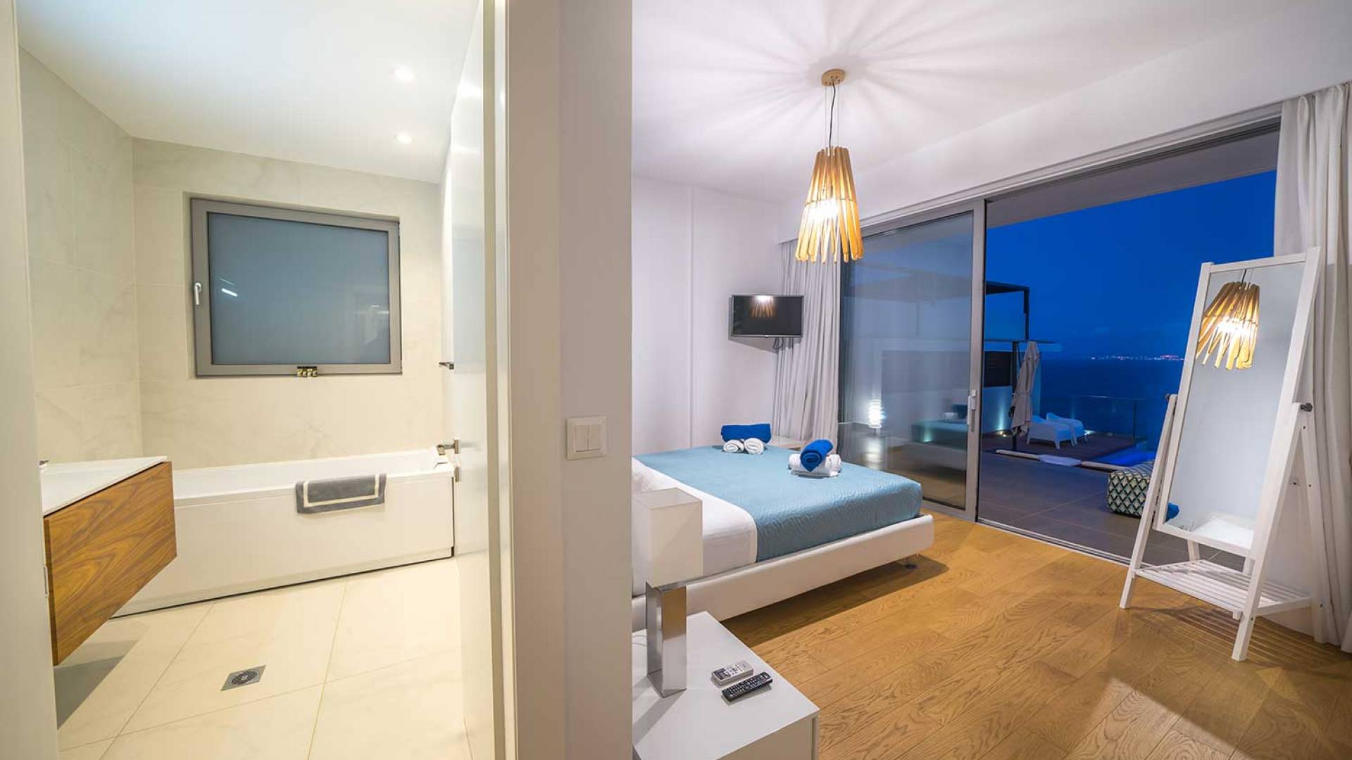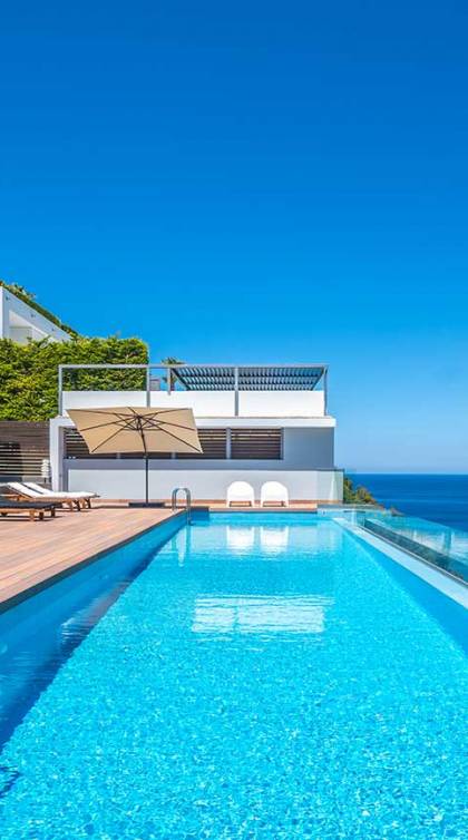 Colore blu, sole e lusso, niente può battere questa combinazione. Cos'altro c'è da chiedere per le tue vacanze? Concediti una piscina privata riscaldata nell'intimità della tua villa, sia interna che esterna. L'acqua è curativa e terapeutica e laverà…