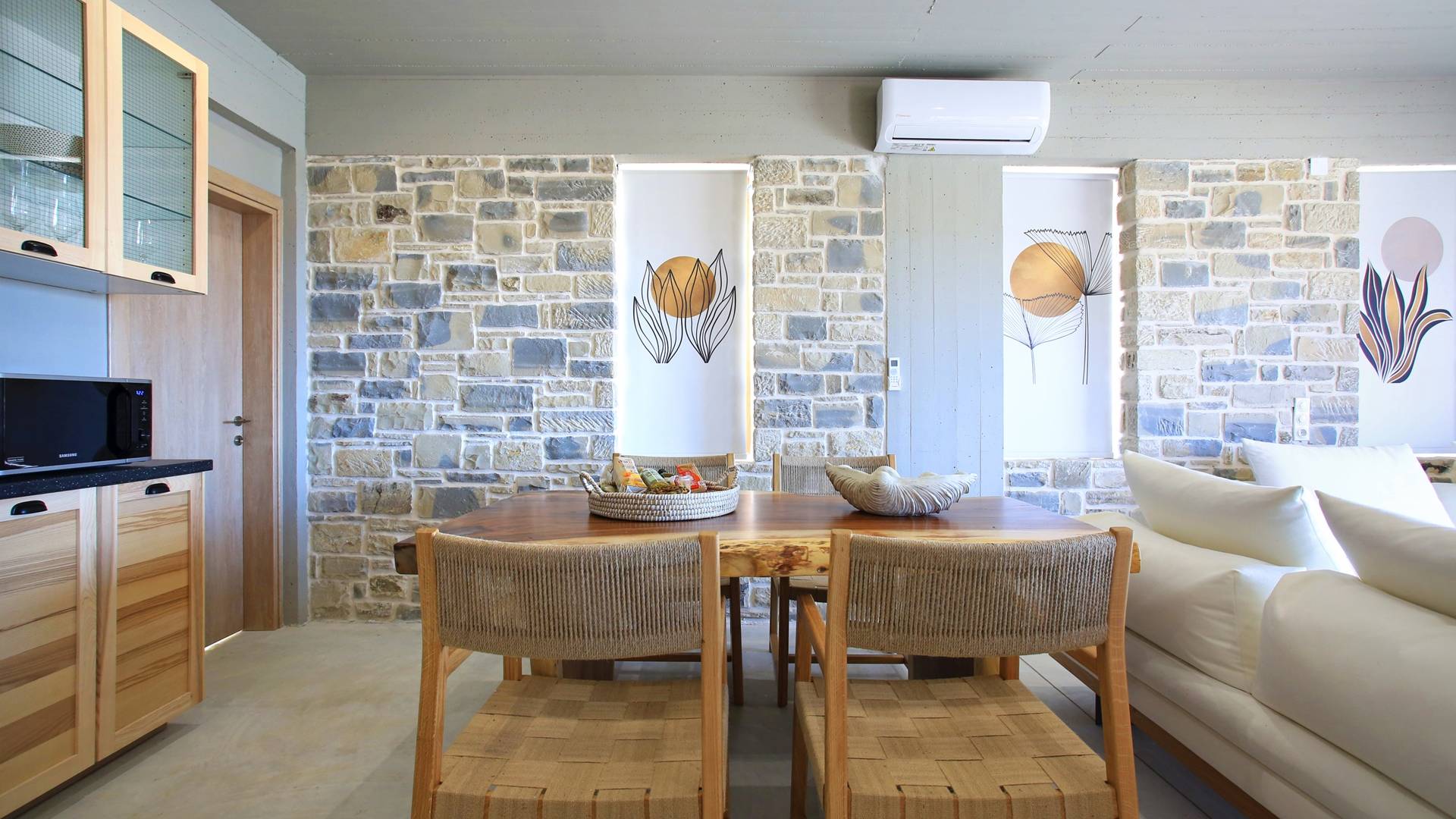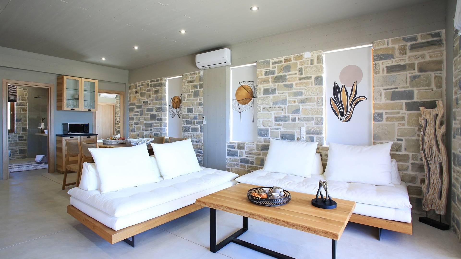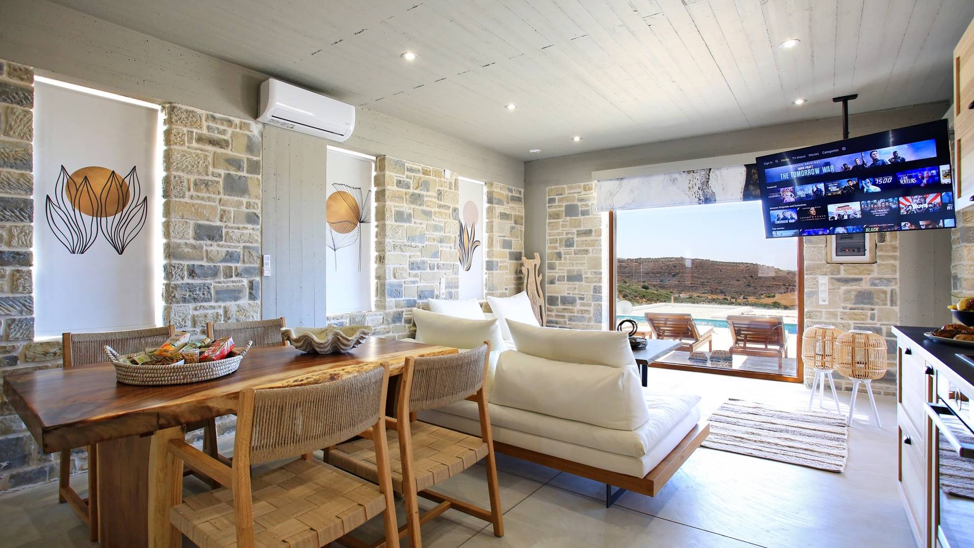 Ogni villa ha il proprio ampio giardino e terrazza e una piscina a sfioro privata che può essere riscaldata su richiesta. Il design esterno si fonde con i colori della natura, mentre negli interni prevalgono pietra e legno, in una fusione moderna e accogliente. Ogni villa dispone di due camere da letto con bagno privato e materassi ecologici Coco-mat che garantiscono un'esperienza di sonno unica. I visitatori possono godersi un'esperienza di vacanza rilassante e molto confortevole.