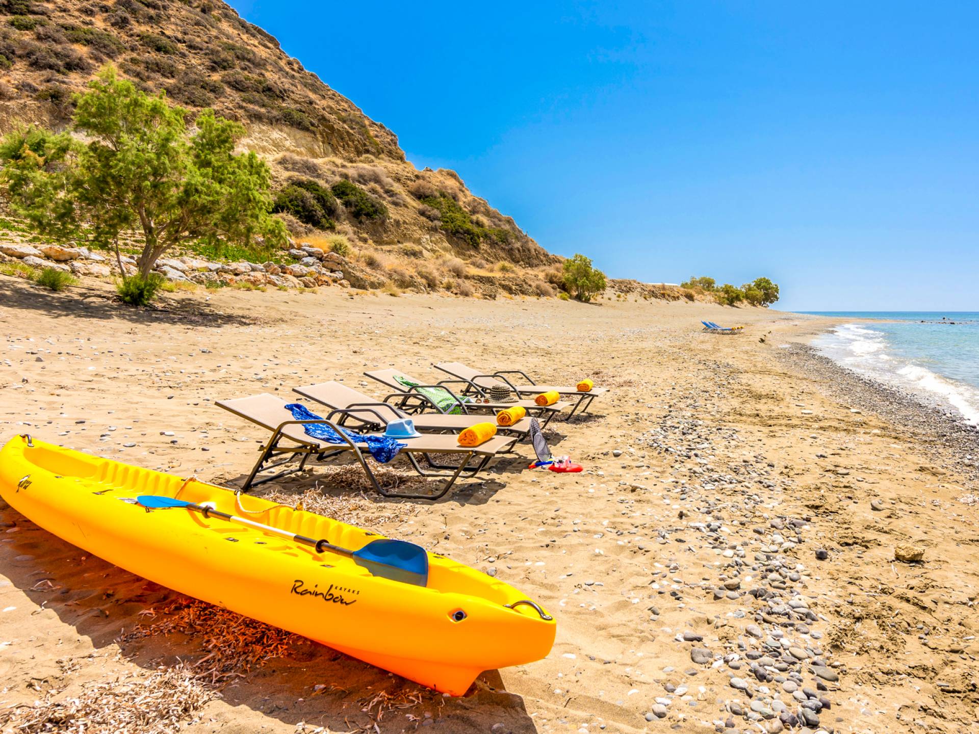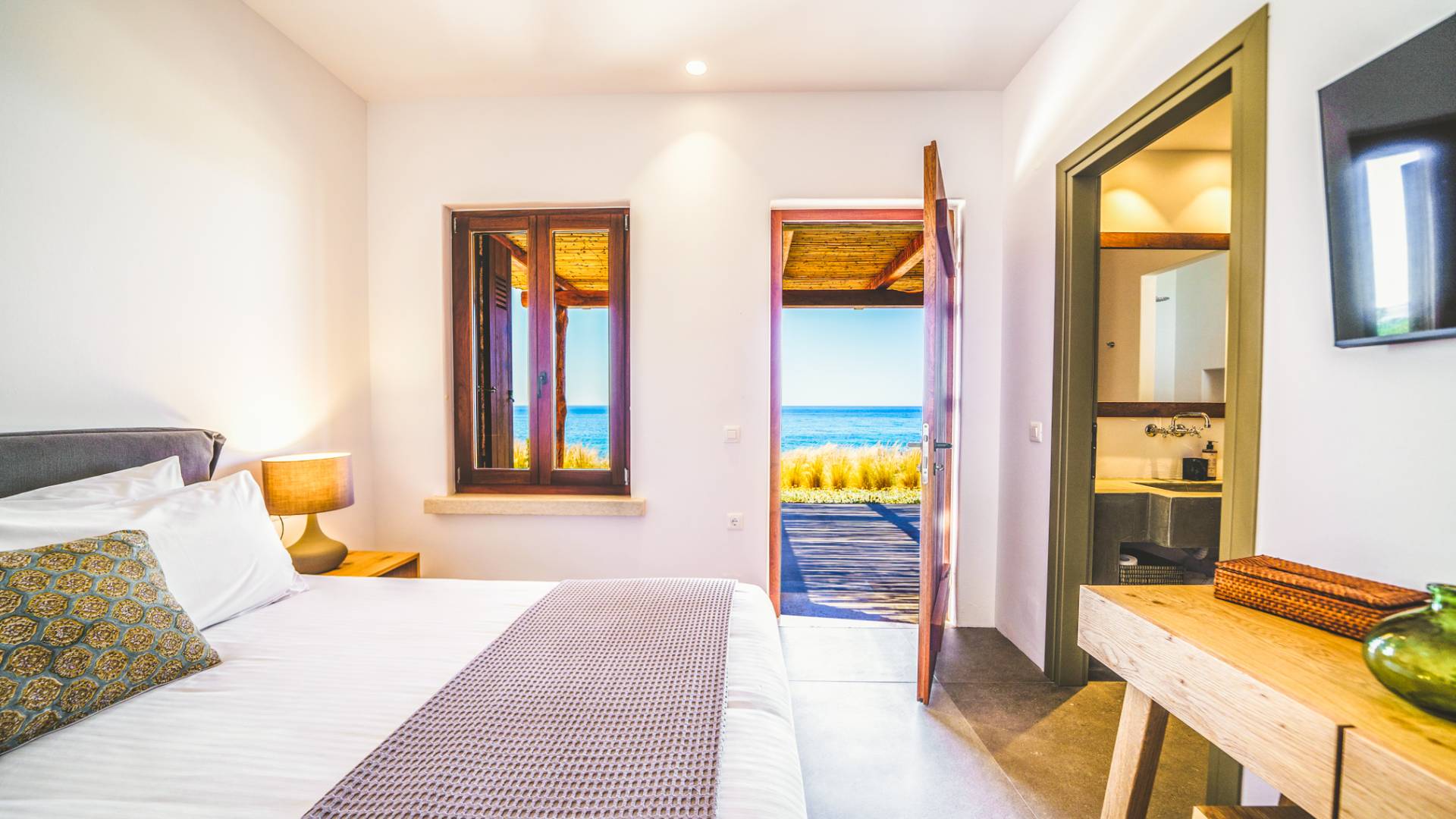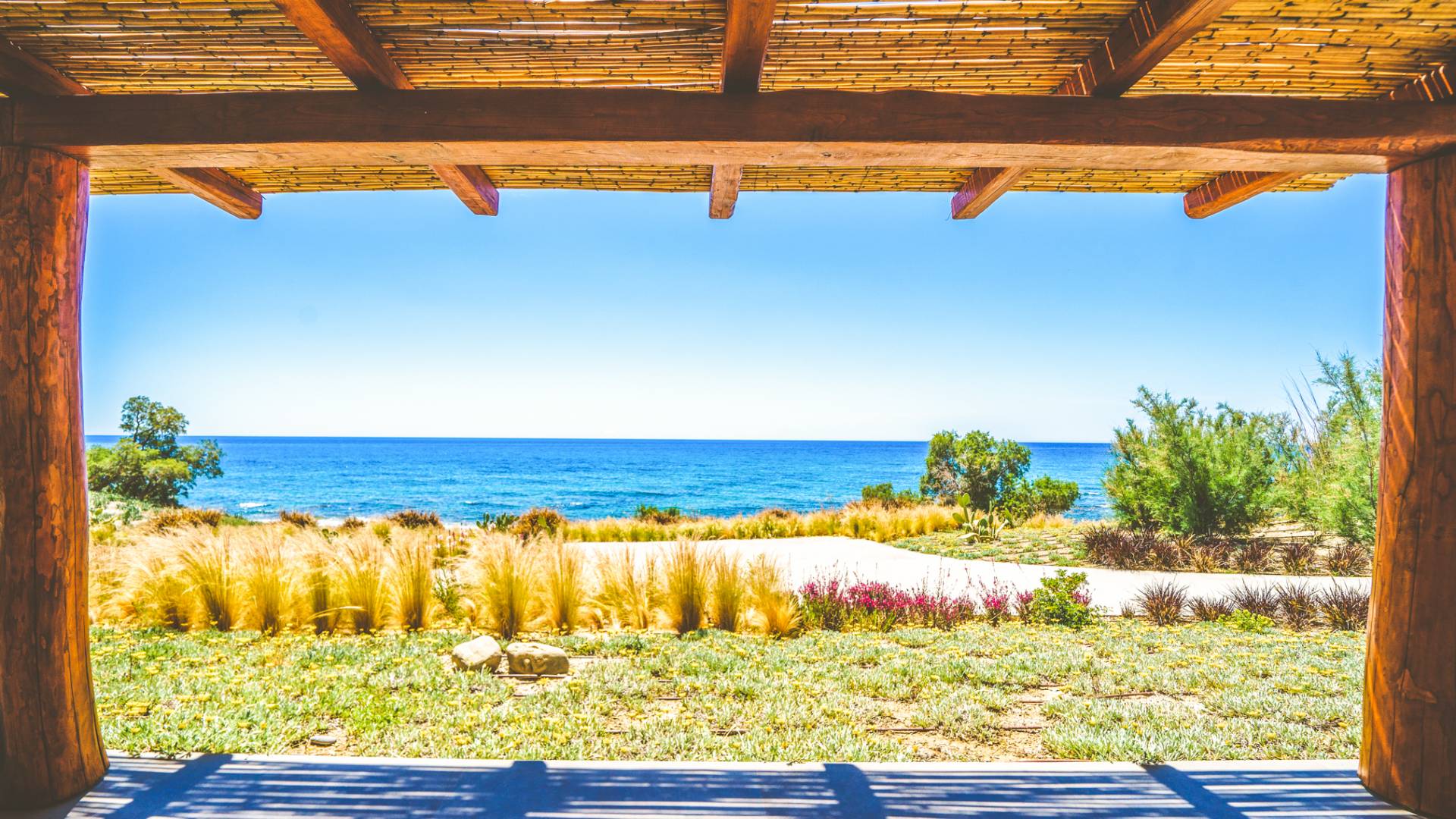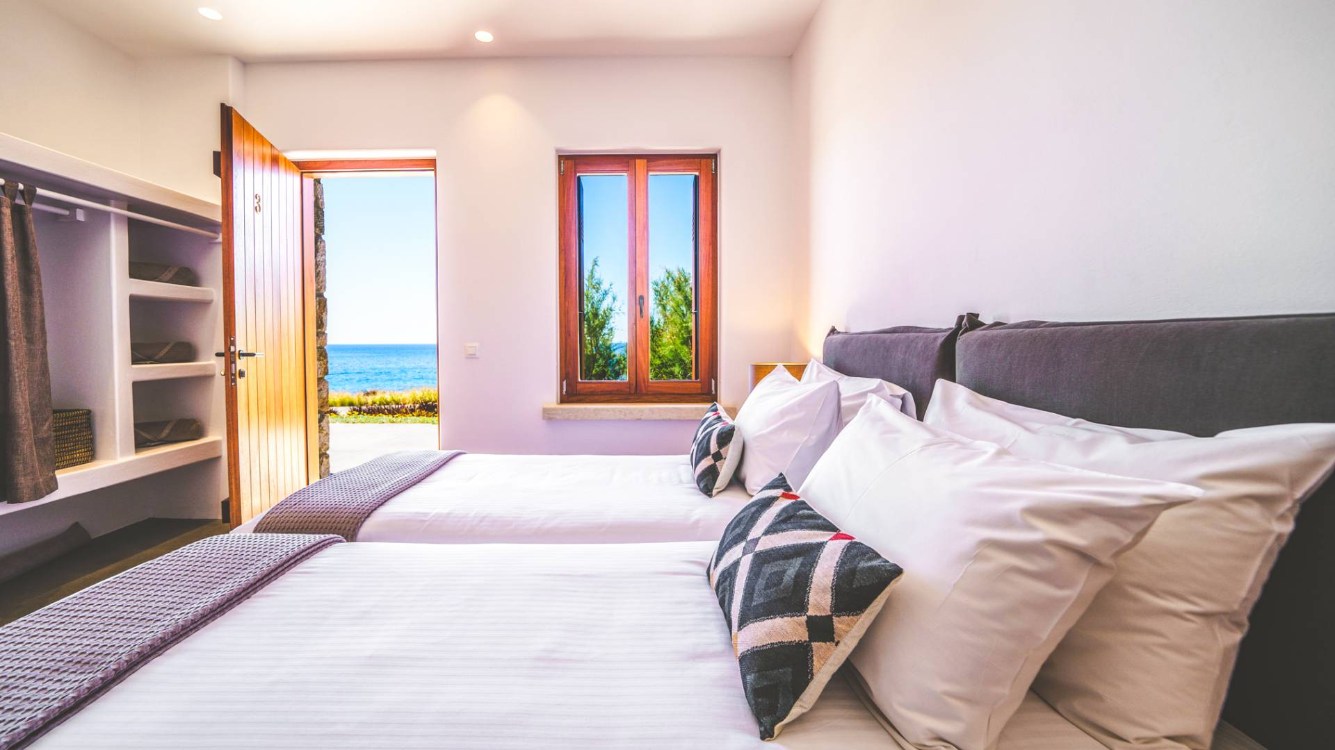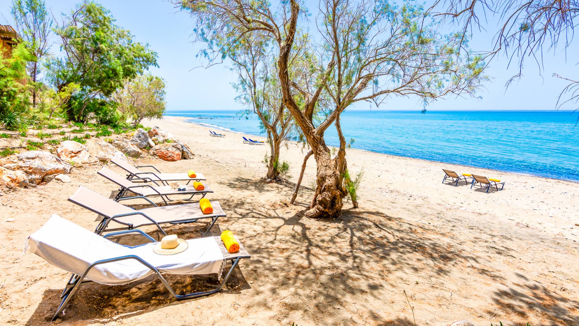 The pristine beach is home to sea turtle nesting grounds from June to August, and the absence of artificial lighting makes for exceptional stargazing. In autumn and winter, the sun sets directly into the sea, creating unforgettable evenings.