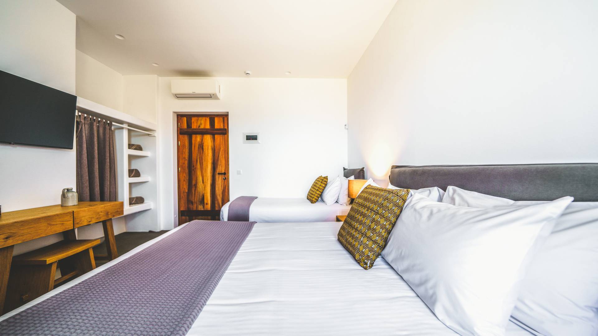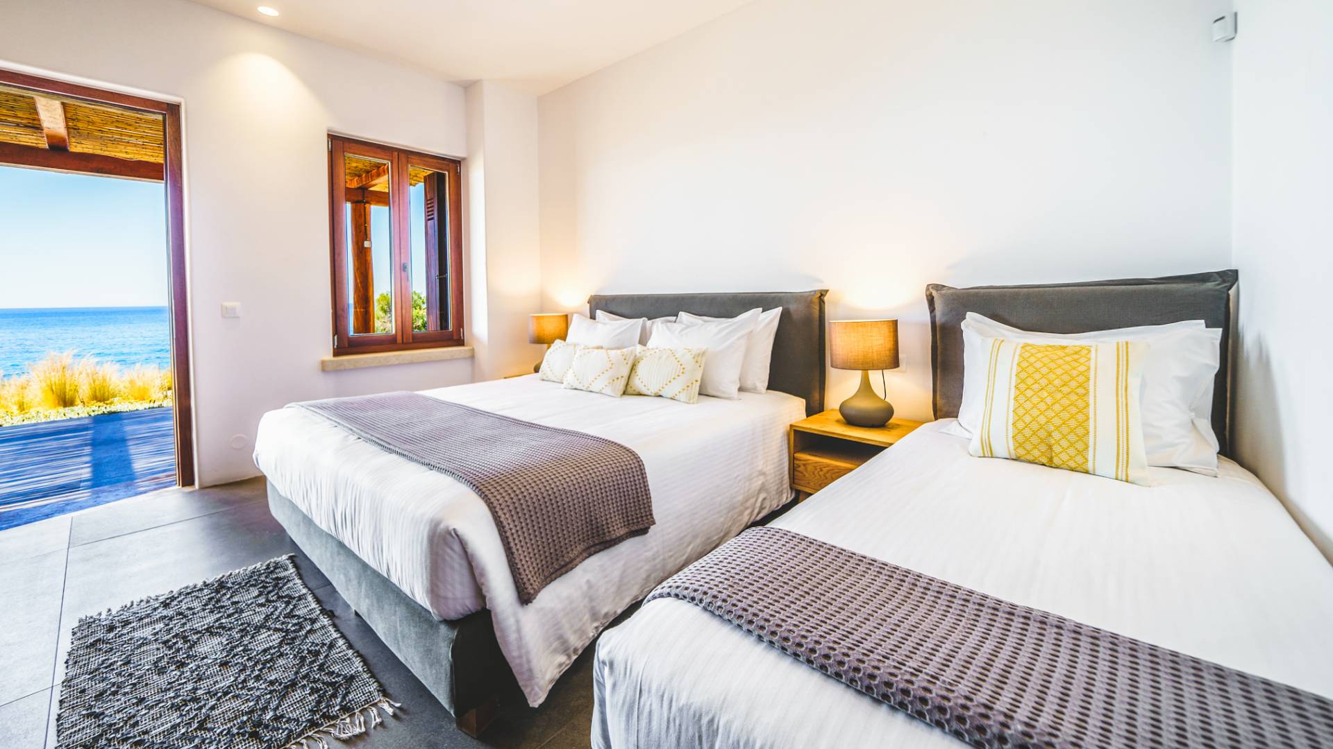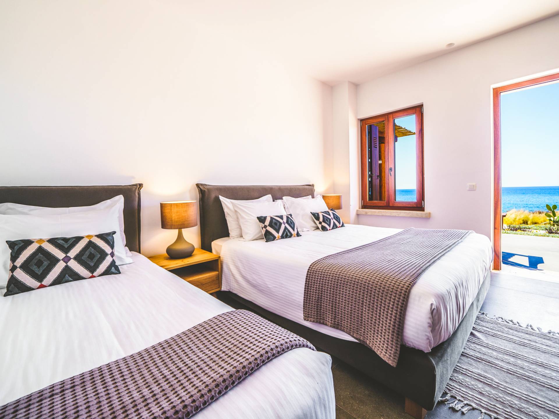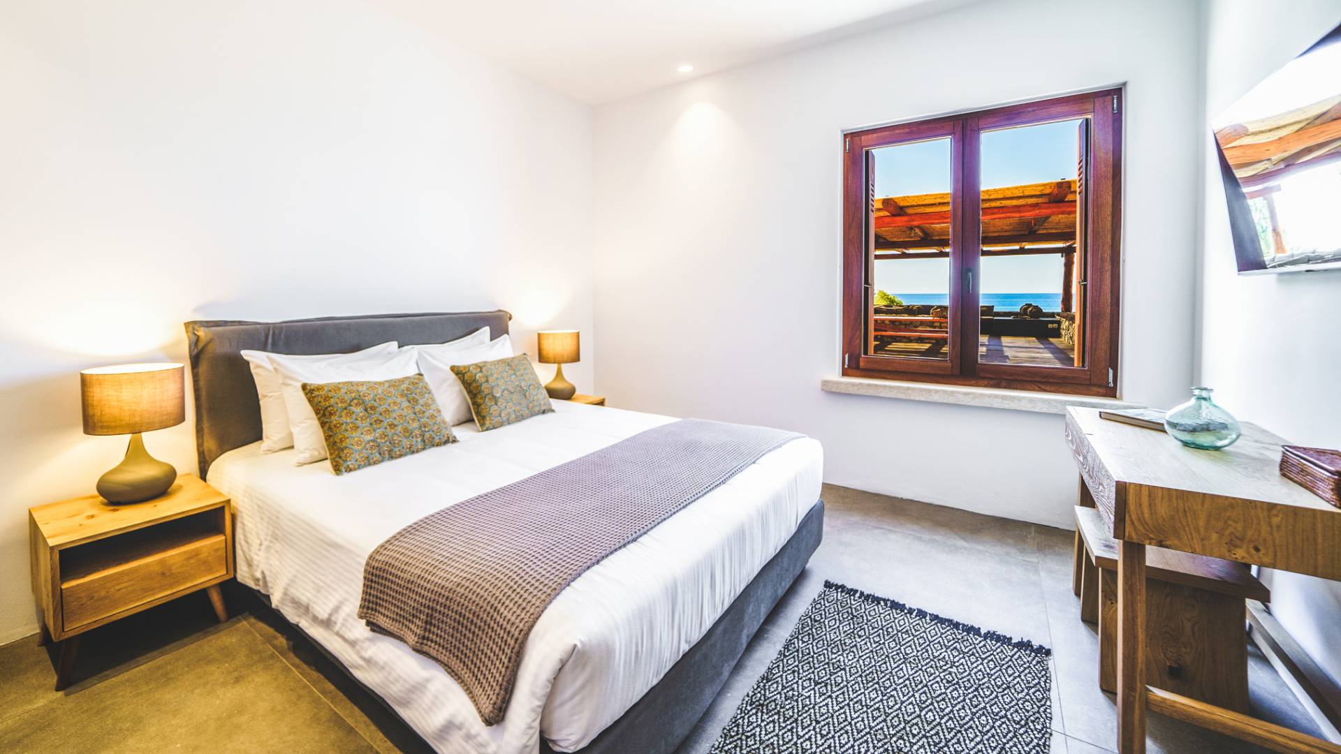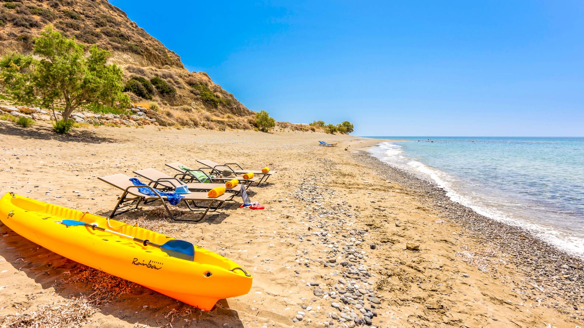 The pristine beach is home to sea turtle nesting grounds from June to August, and the absence of artificial lighting makes for exceptional stargazing. In autumn and winter, the sun sets directly into the sea, creating unforgettable evenings.