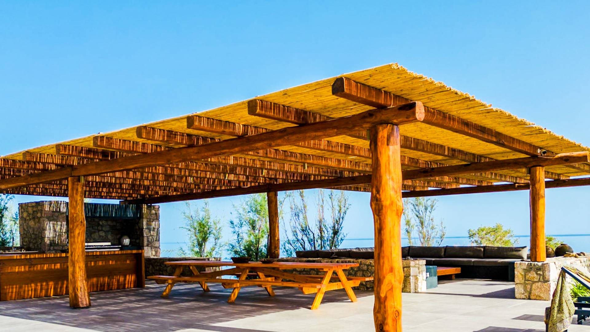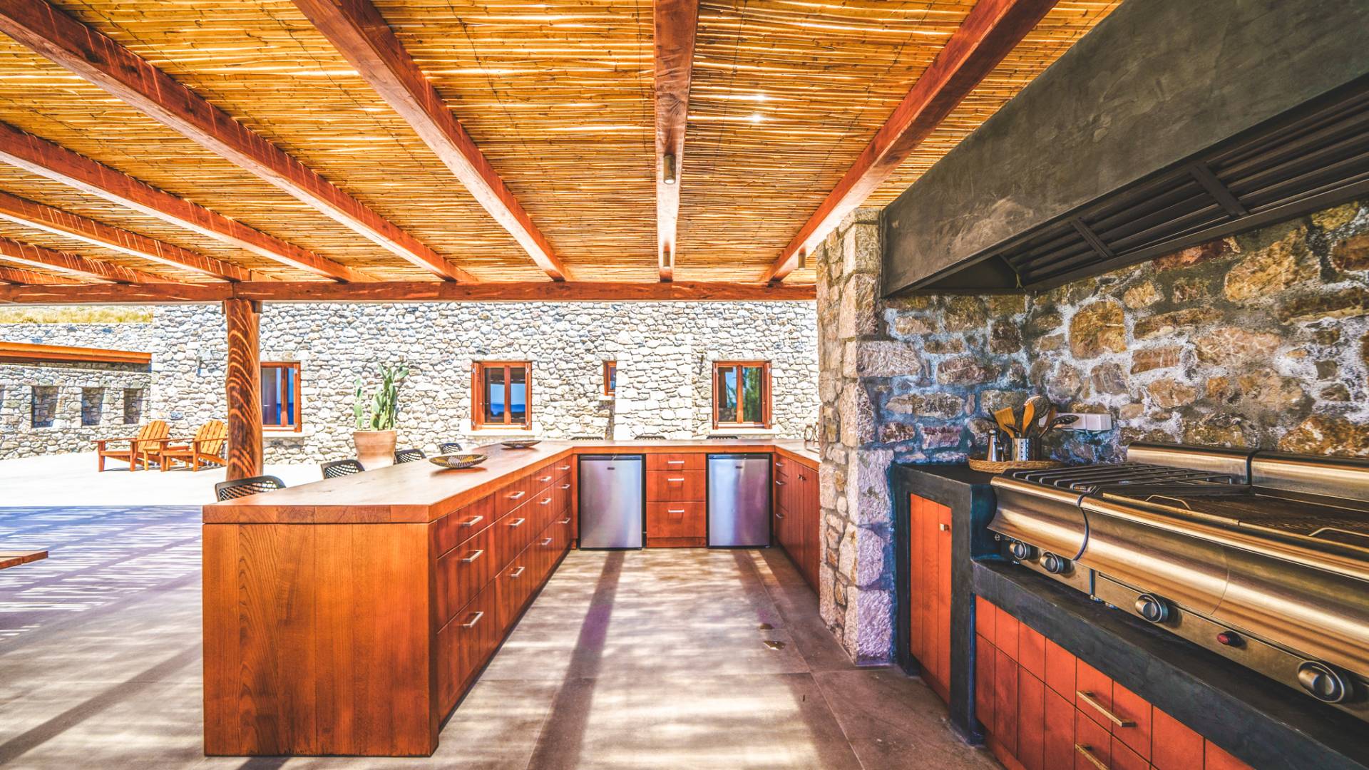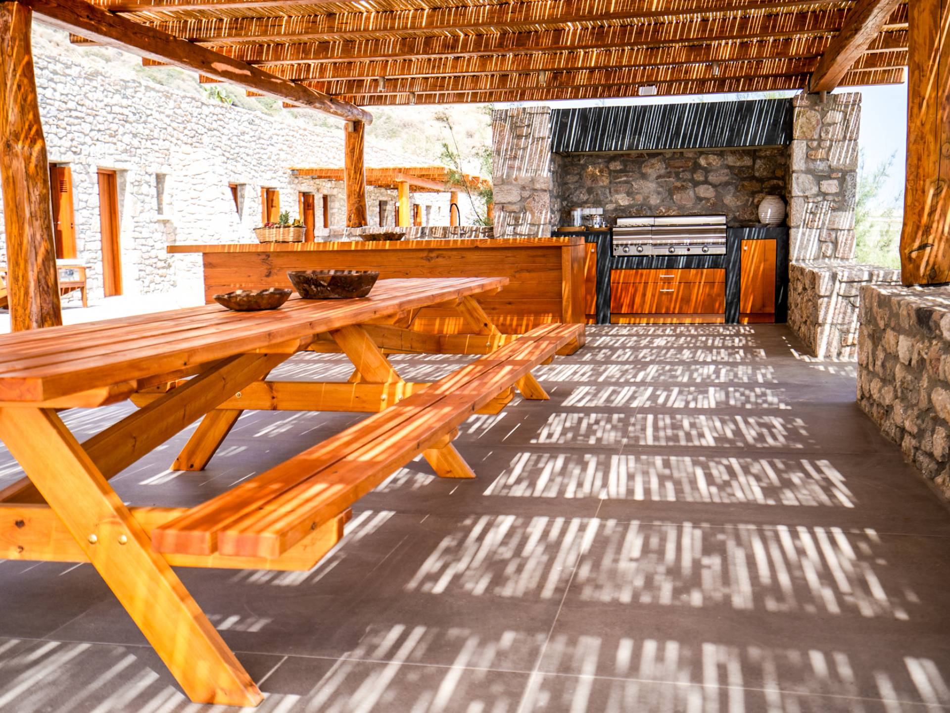 - Shaded traditional outdoor cooking area with wood oven, next to the Chapel