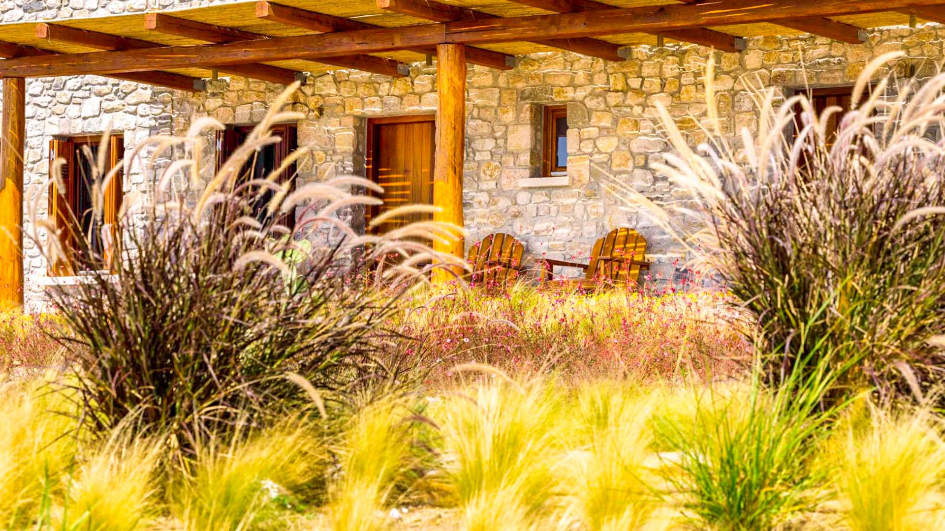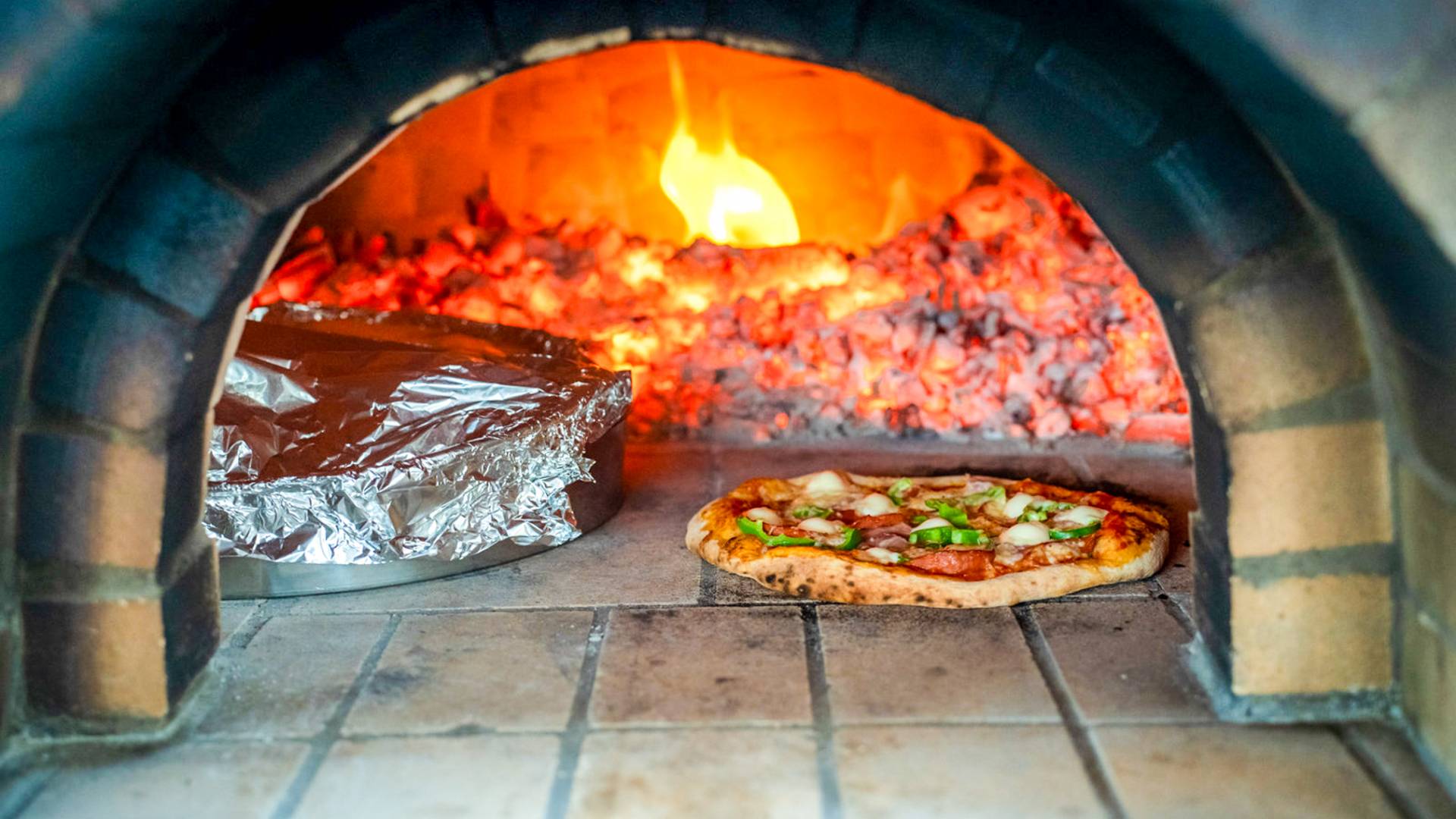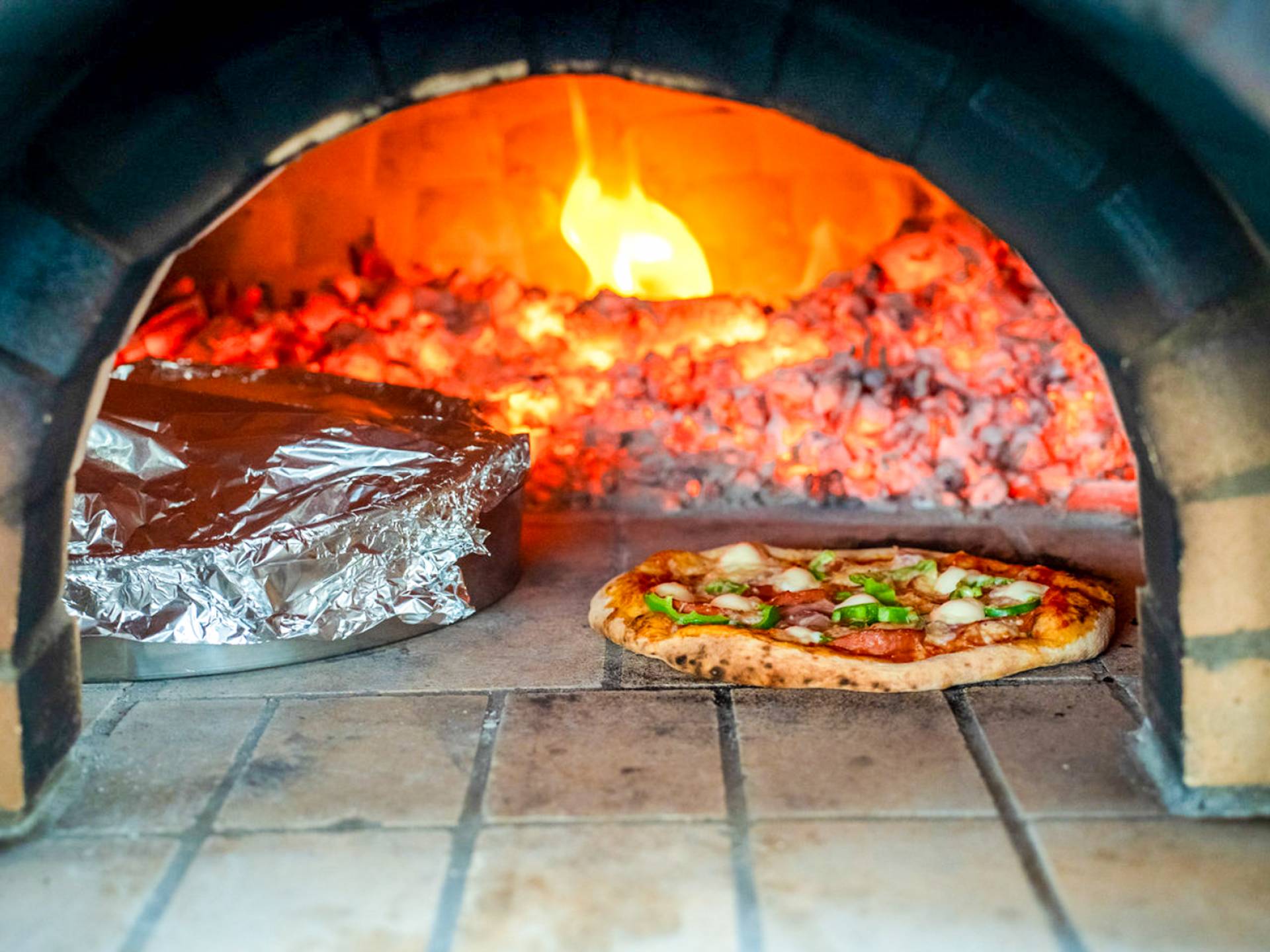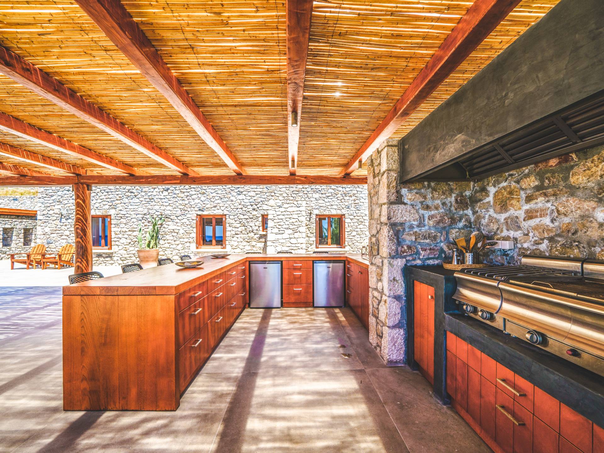 - Shaded traditional outdoor cooking area with wood oven, next to the Chapel