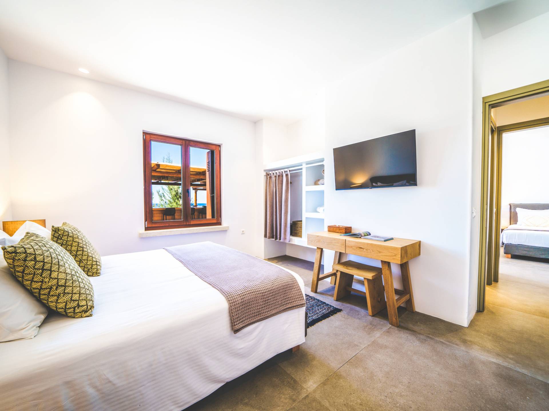 La spiaggia di Arvi è un paradiso per i piccoli esploratori. Le sue acque poco profonde e cristalline sono sicure per giocare e fare il bagno, e la sabbia soffice è perfetta per costruire castelli o raccogliere conchiglie. La piscina della villa offre un luogo sicuro per nuotare sotto l’occhio vigile degli adulti, e l’ambiente tranquillo significa tanto spazio per i giochi, lontano dal trambusto dei resort affollati. Nelle vicinanze, le famiglie possono fare brevi gite in barca verso calette nascoste, visitare una fattoria locale per incontrare capre e asini o seguire facili sentieri costieri adatti anche ai più piccoli avventurieri.
