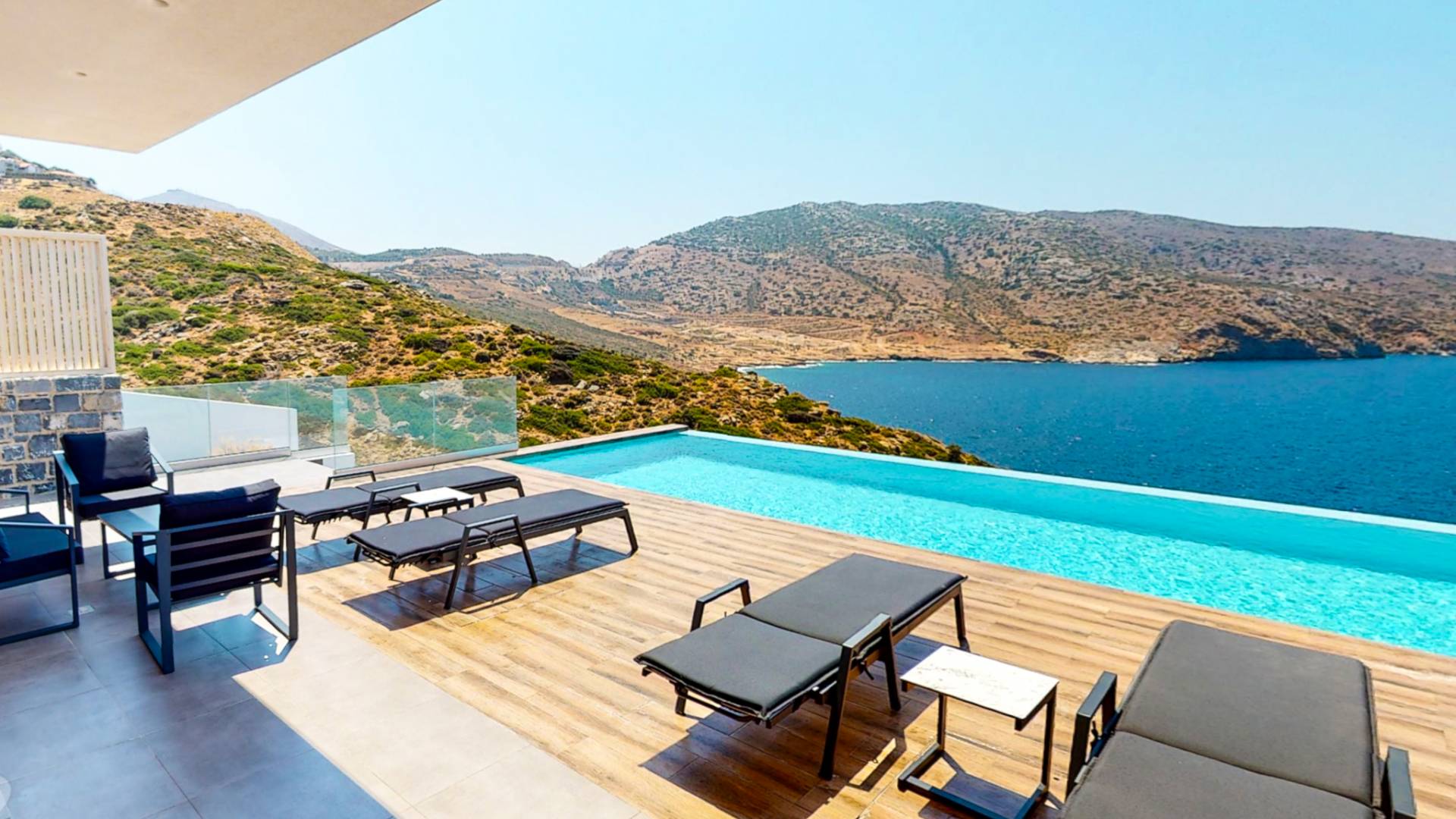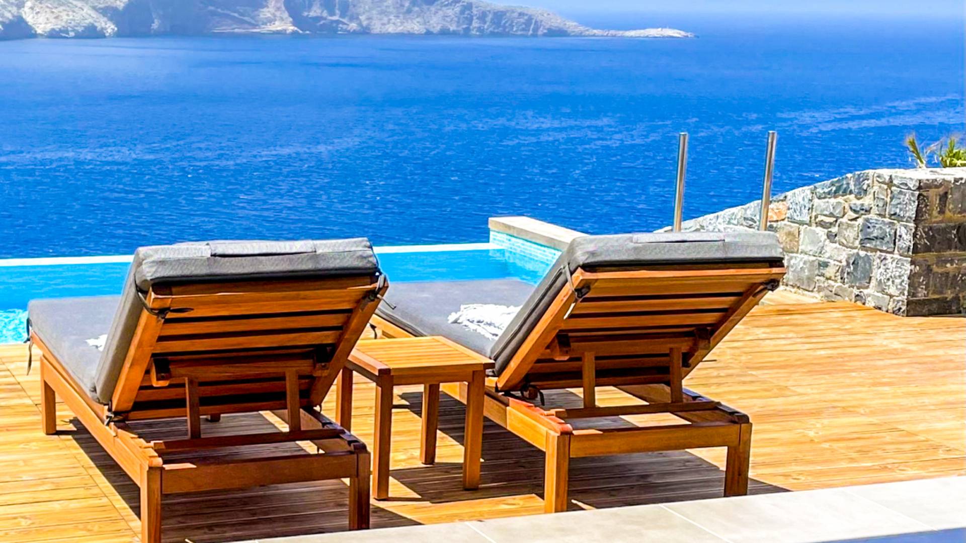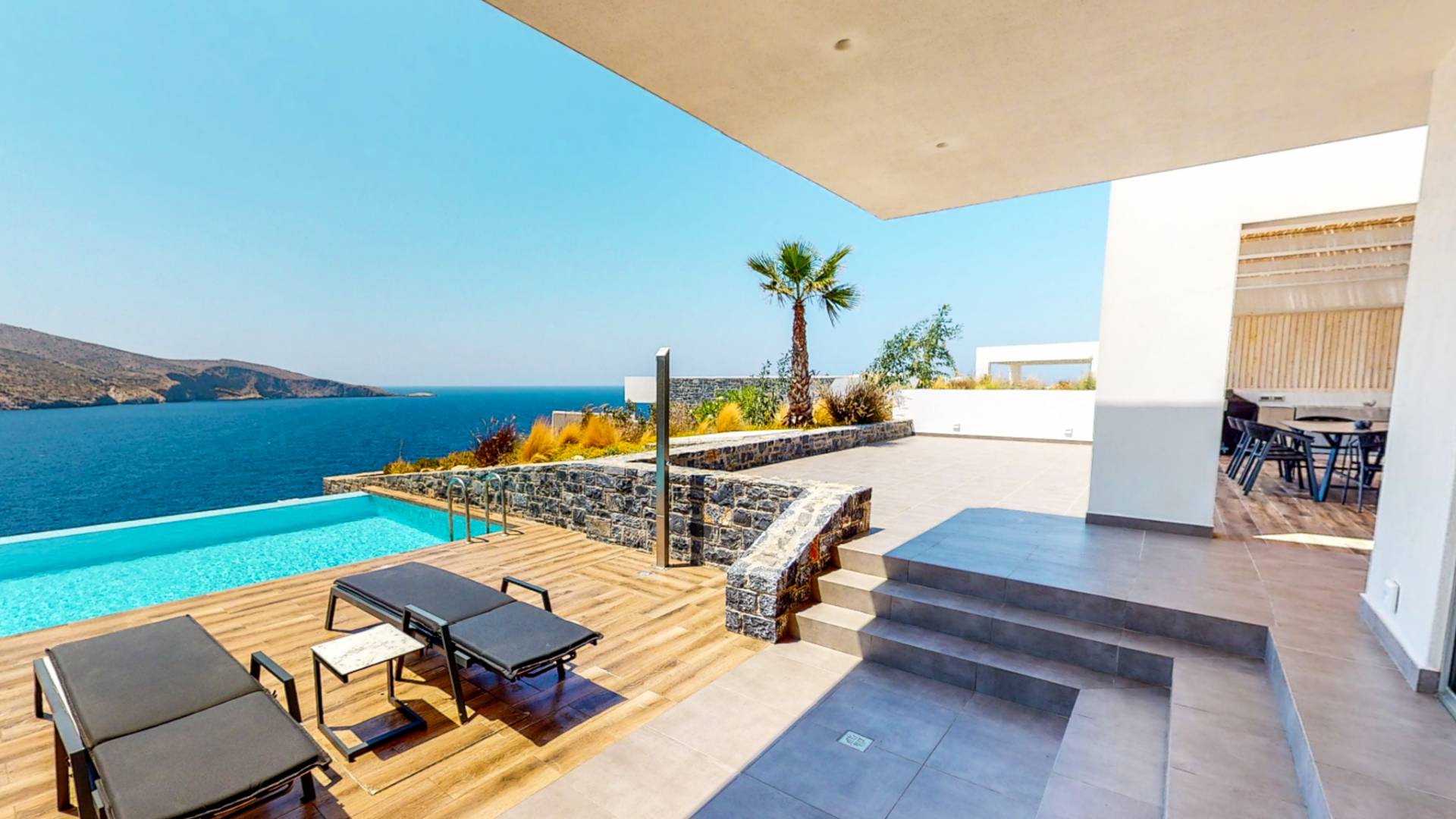 Villa 3 at Roya Blu Villas Crete is a wonderful two-storey villa among Roya Blu Villas, surrounded by a Mediterranean garden with panoramic sea views, a private freshwater swimming pool and a separate children's swimming pool