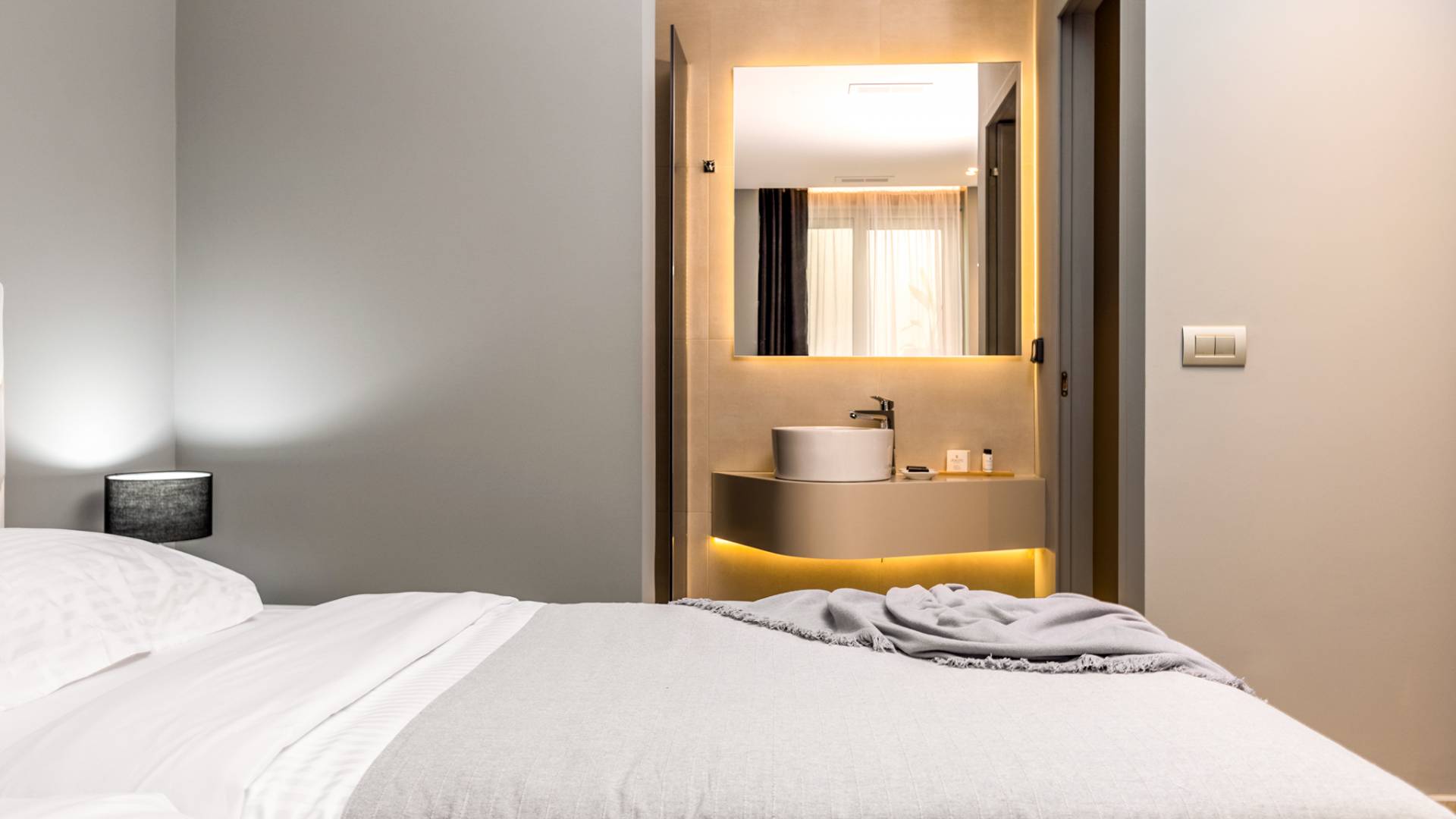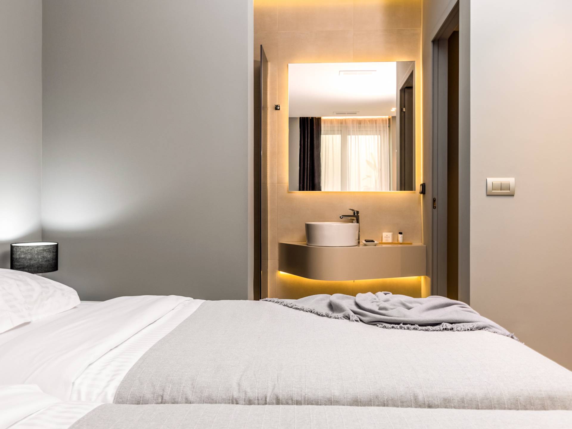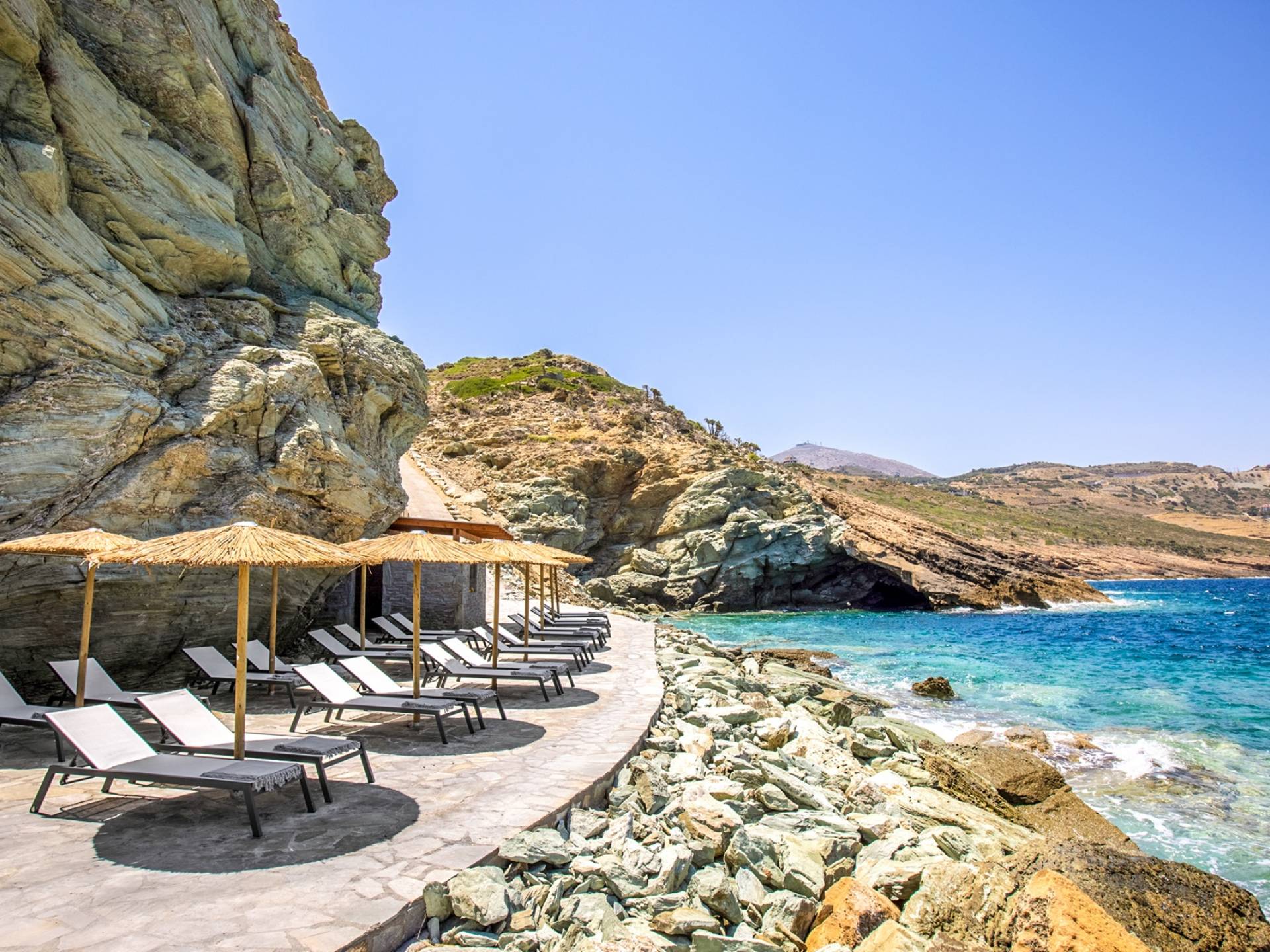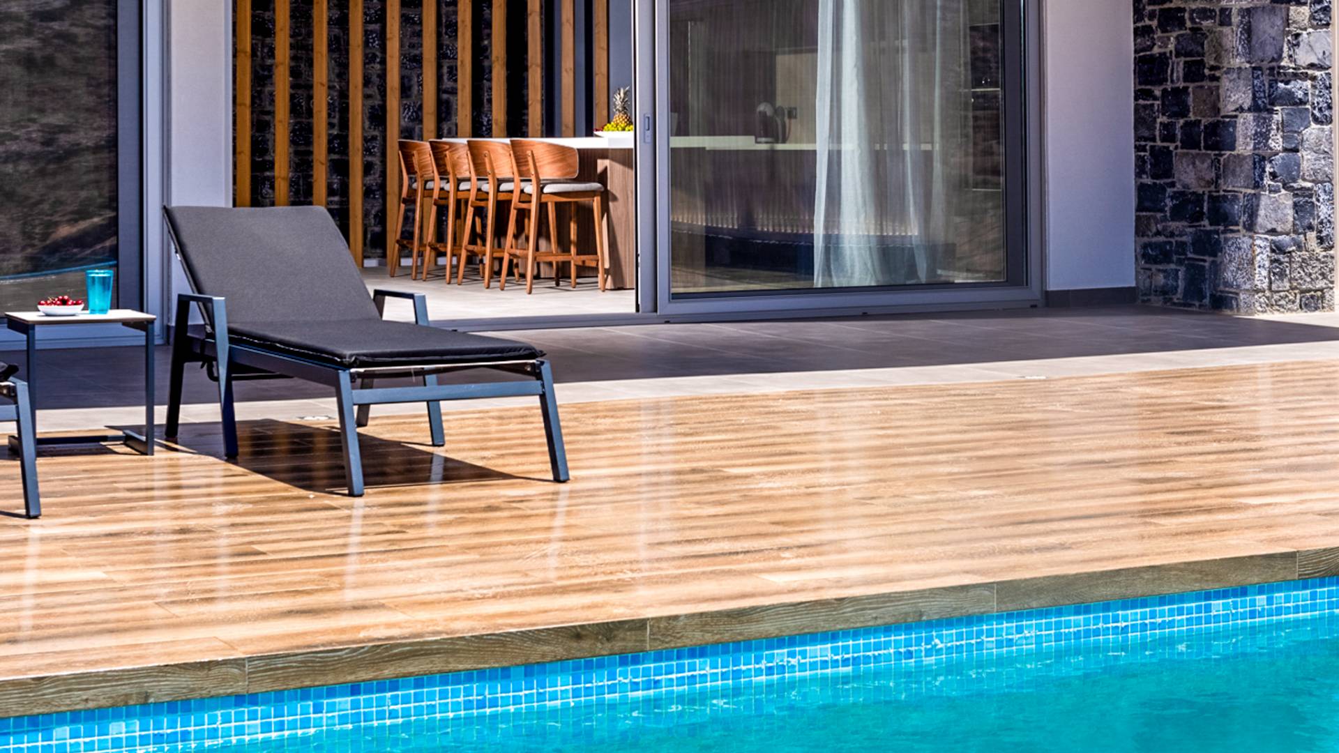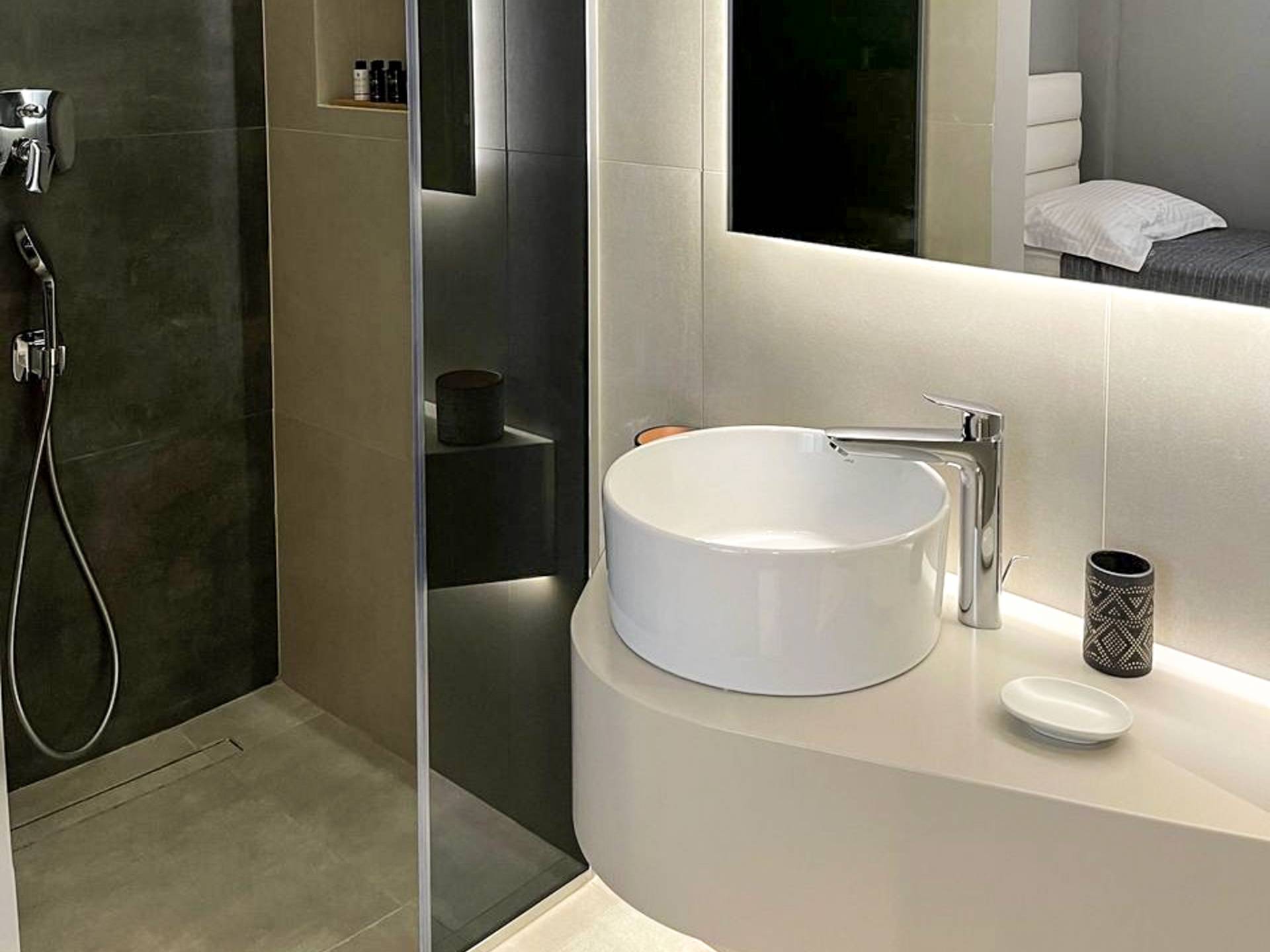 Tucked away in a small, picturesque bay, Roya Blu Villas Crete features exclusive access to a natural stone sunbathing platform with direct steps into the crystal-clear sea. The area is thoughtfully equipped with a beach bar, a private changing room, and a freshwater outdoor shower - creating a serene, resort-style seaside experience just moments from the villa.