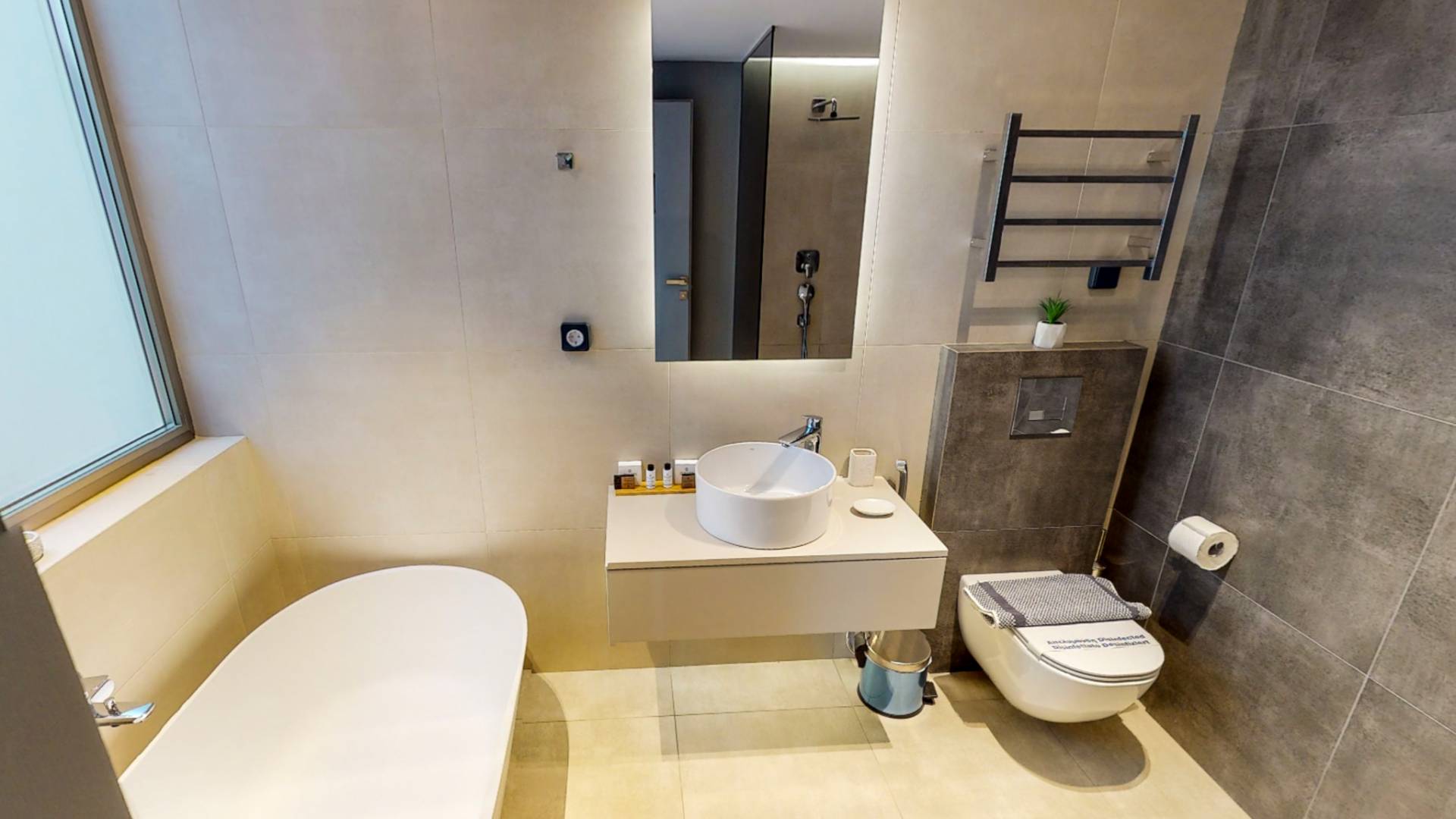 - Bedroom 2 with queen bed, ensuite bathroom and terrace access