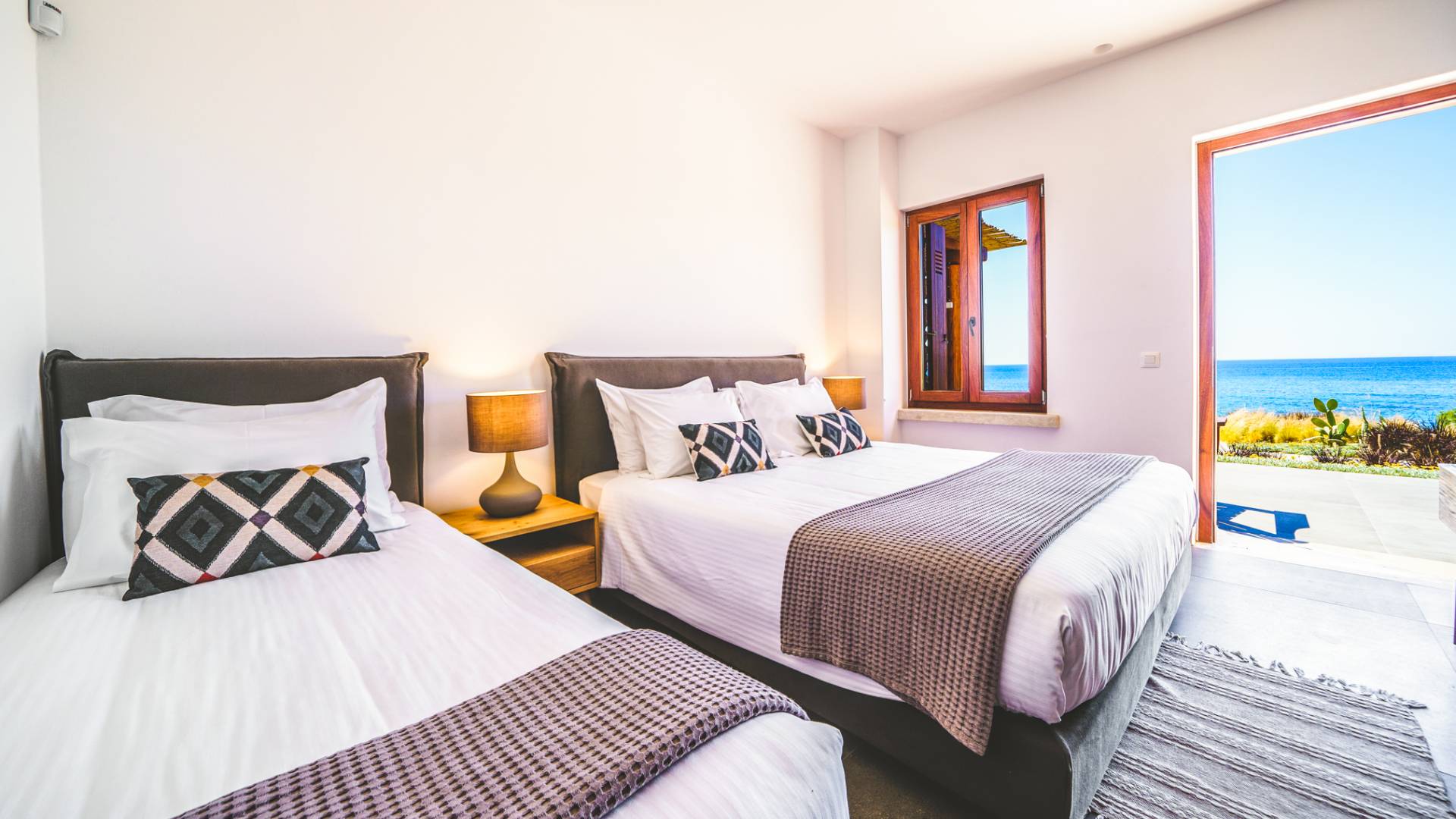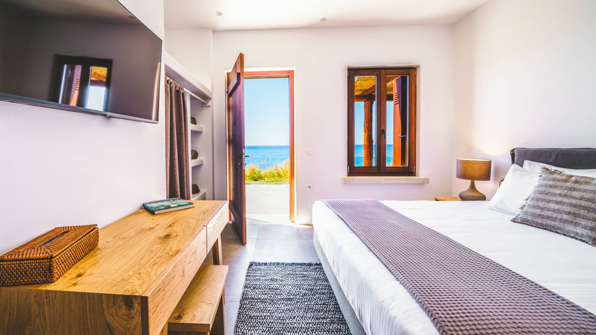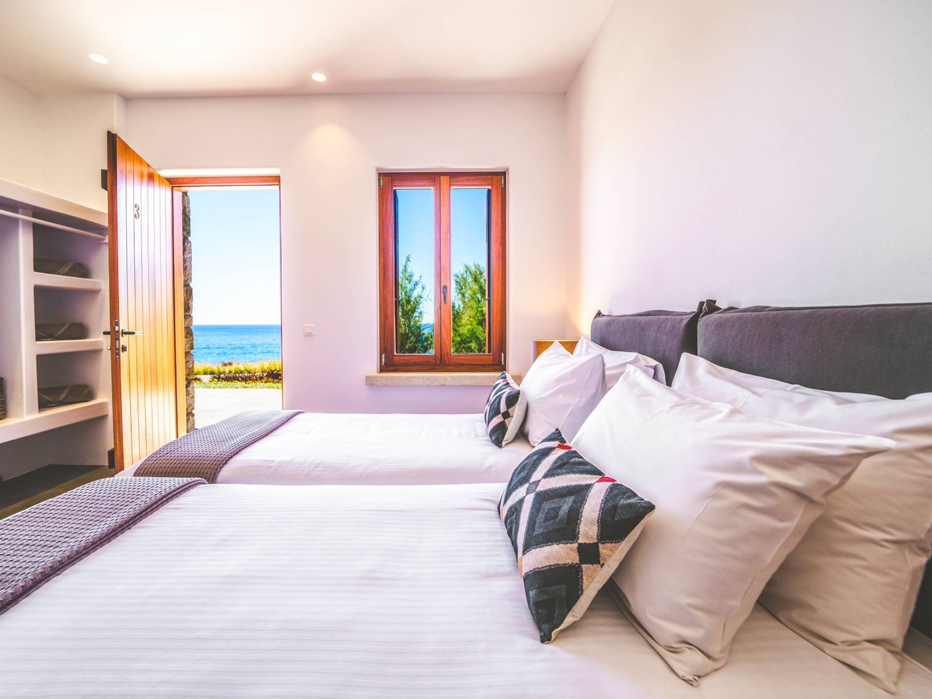 The pristine beach is home to sea turtle nesting grounds from June to August, and the absence of artificial lighting makes for exceptional stargazing. In autumn and winter, the sun sets directly into the sea, creating unforgettable evenings.