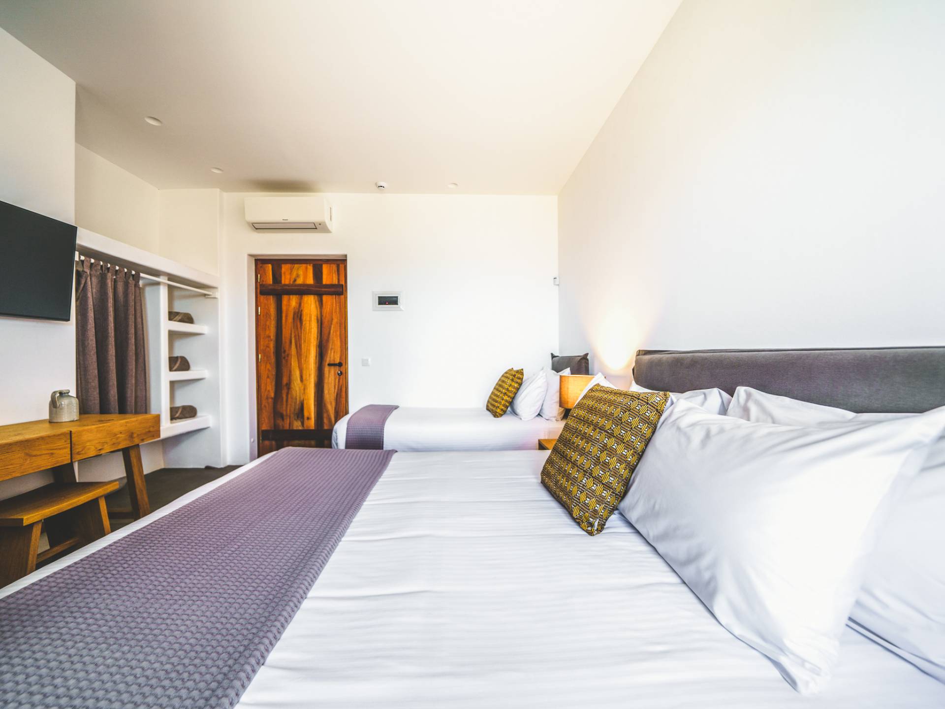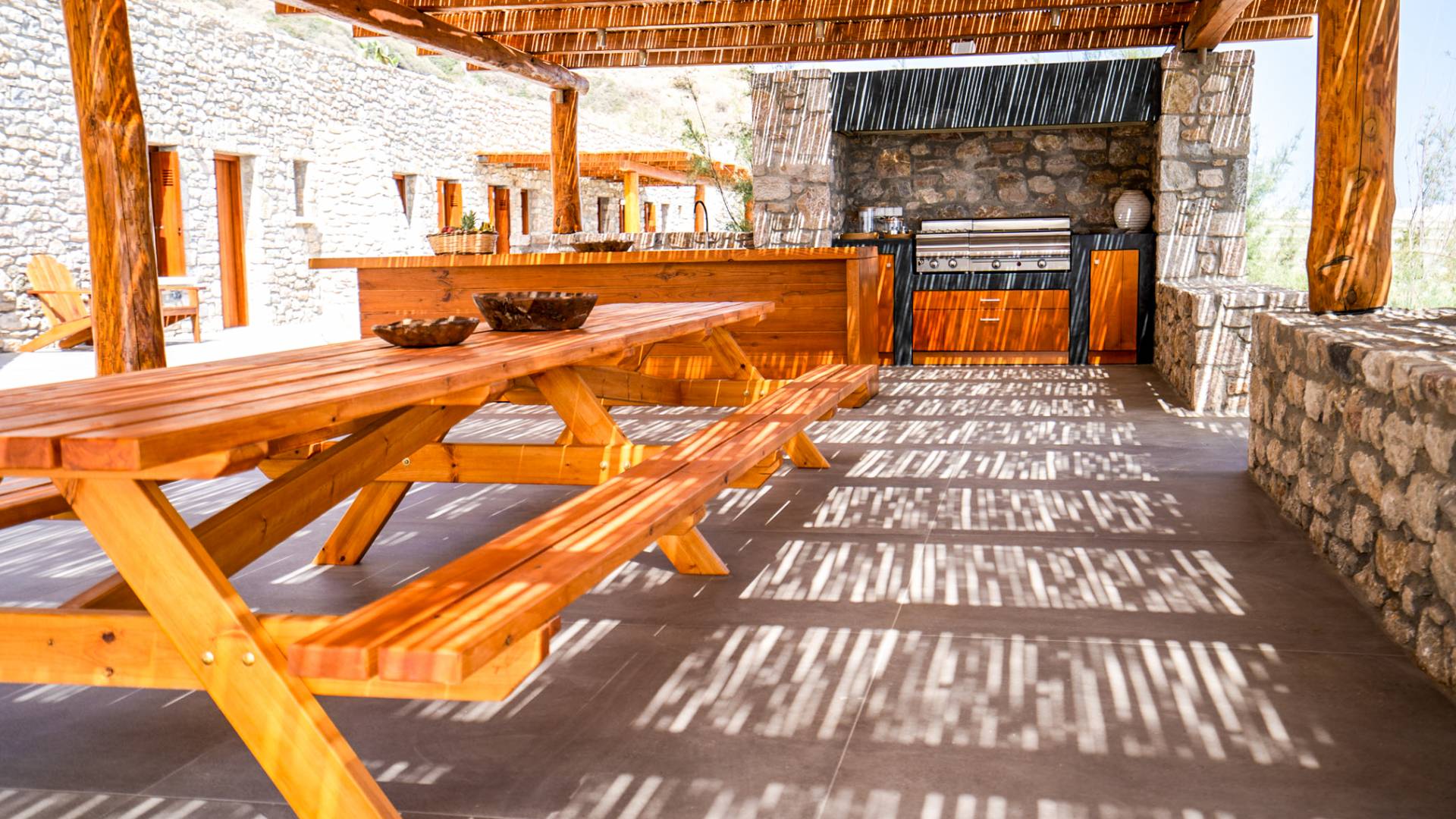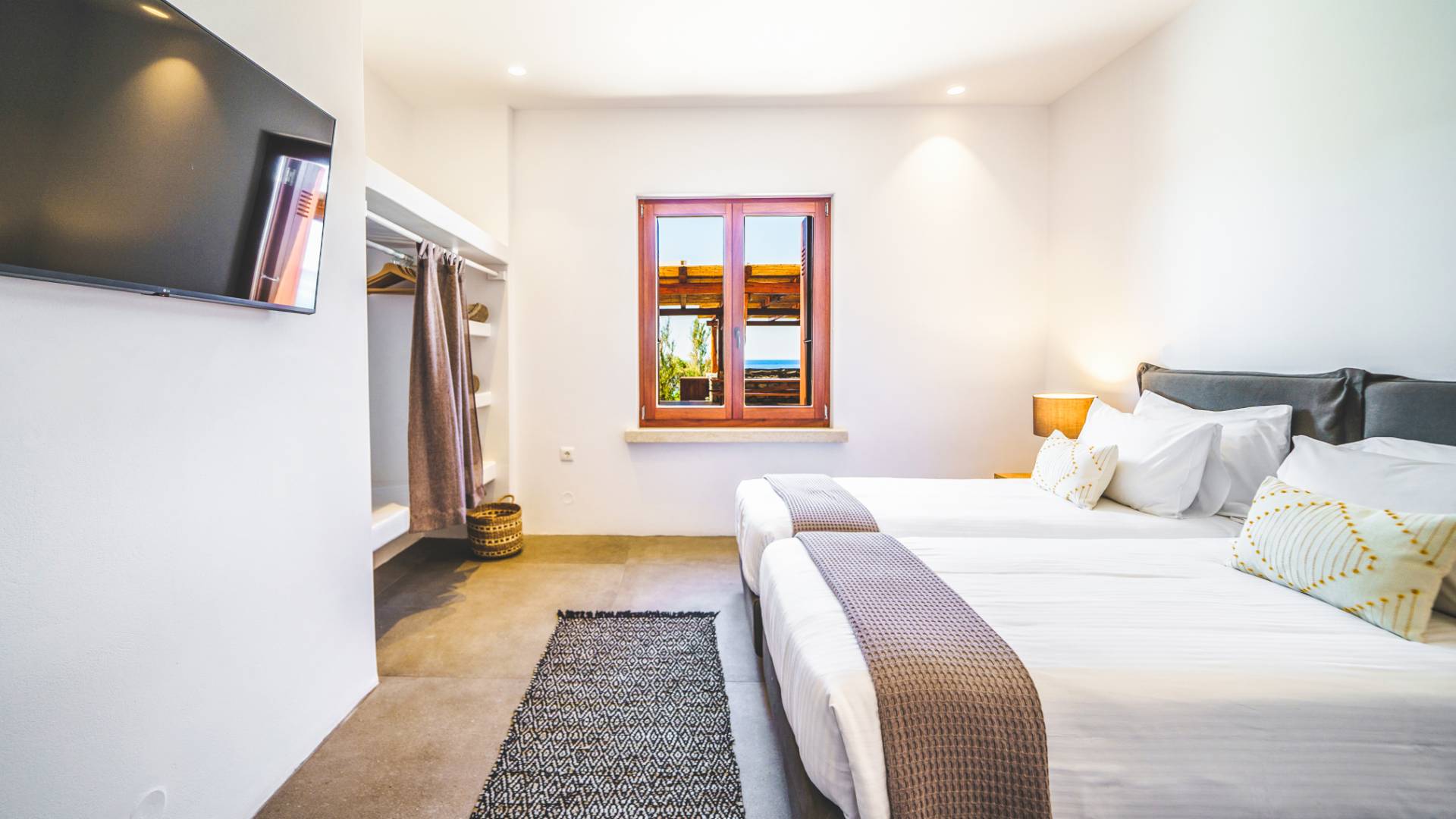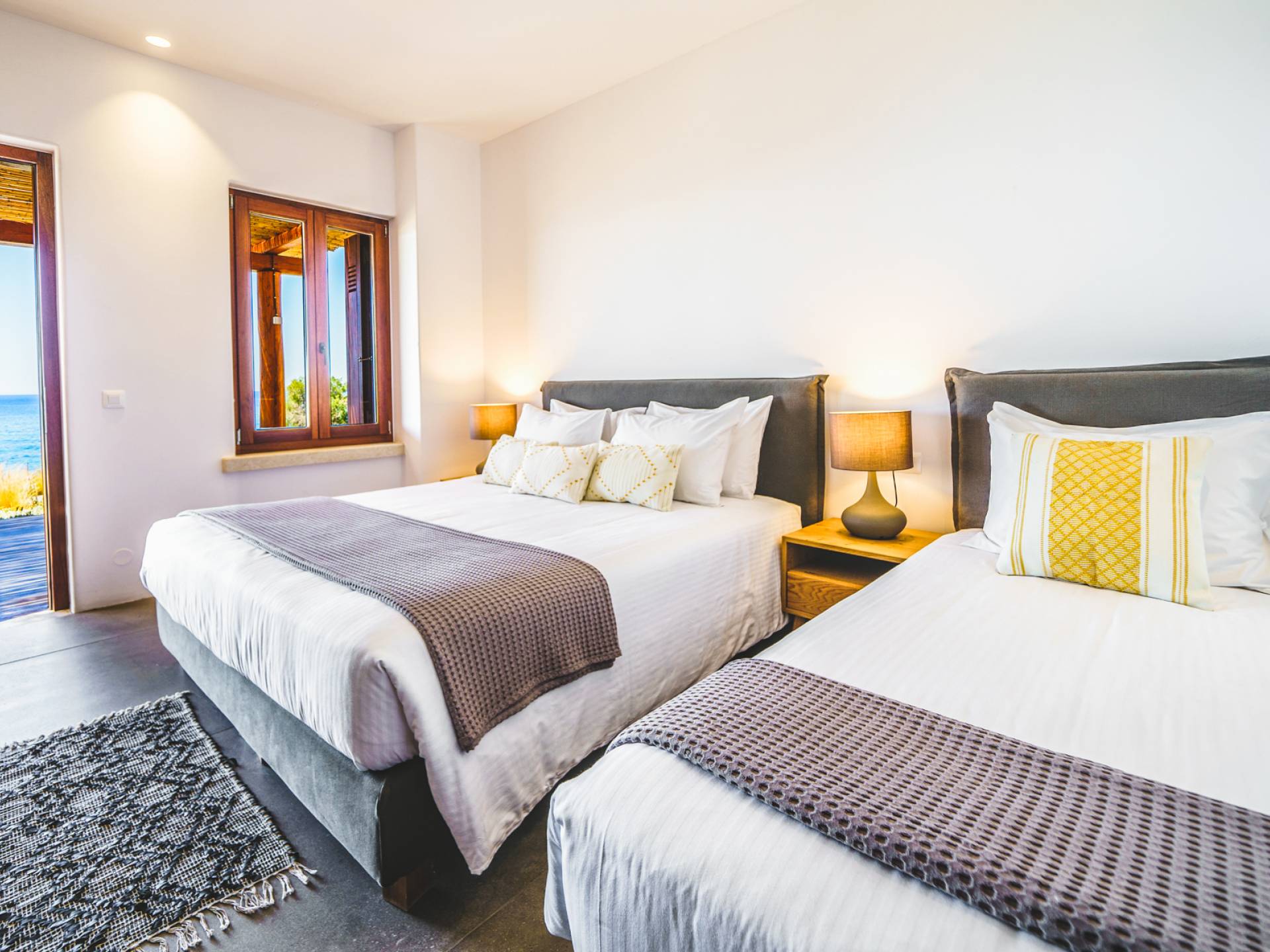 The pristine beach is home to sea turtle nesting grounds from June to August, and the absence of artificial lighting makes for exceptional stargazing. In autumn and winter, the sun sets directly into the sea, creating unforgettable evenings.