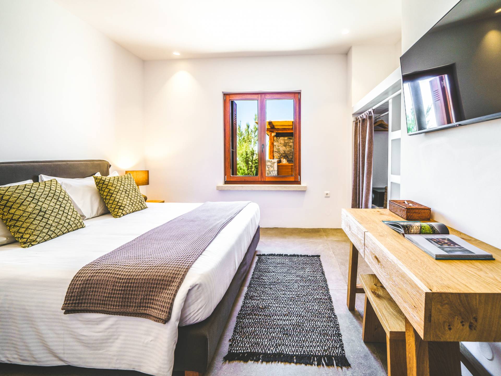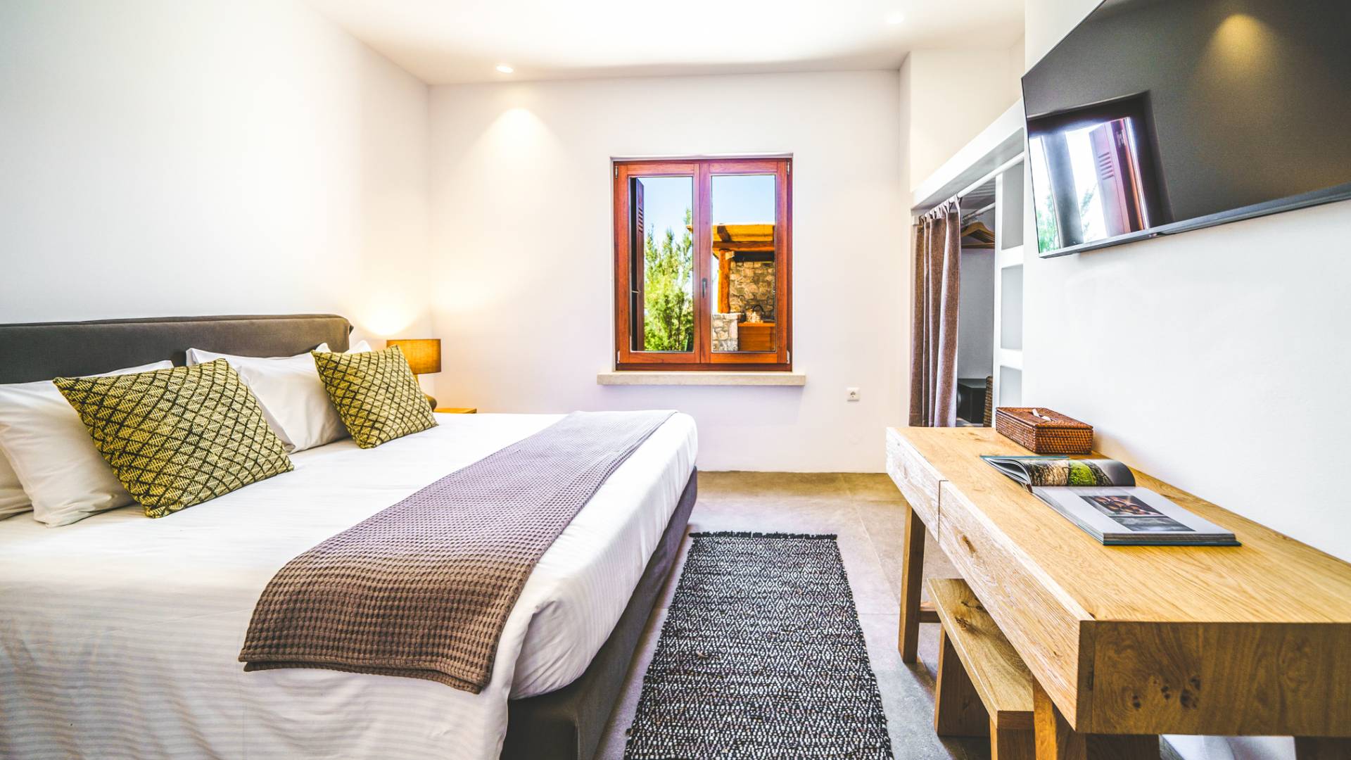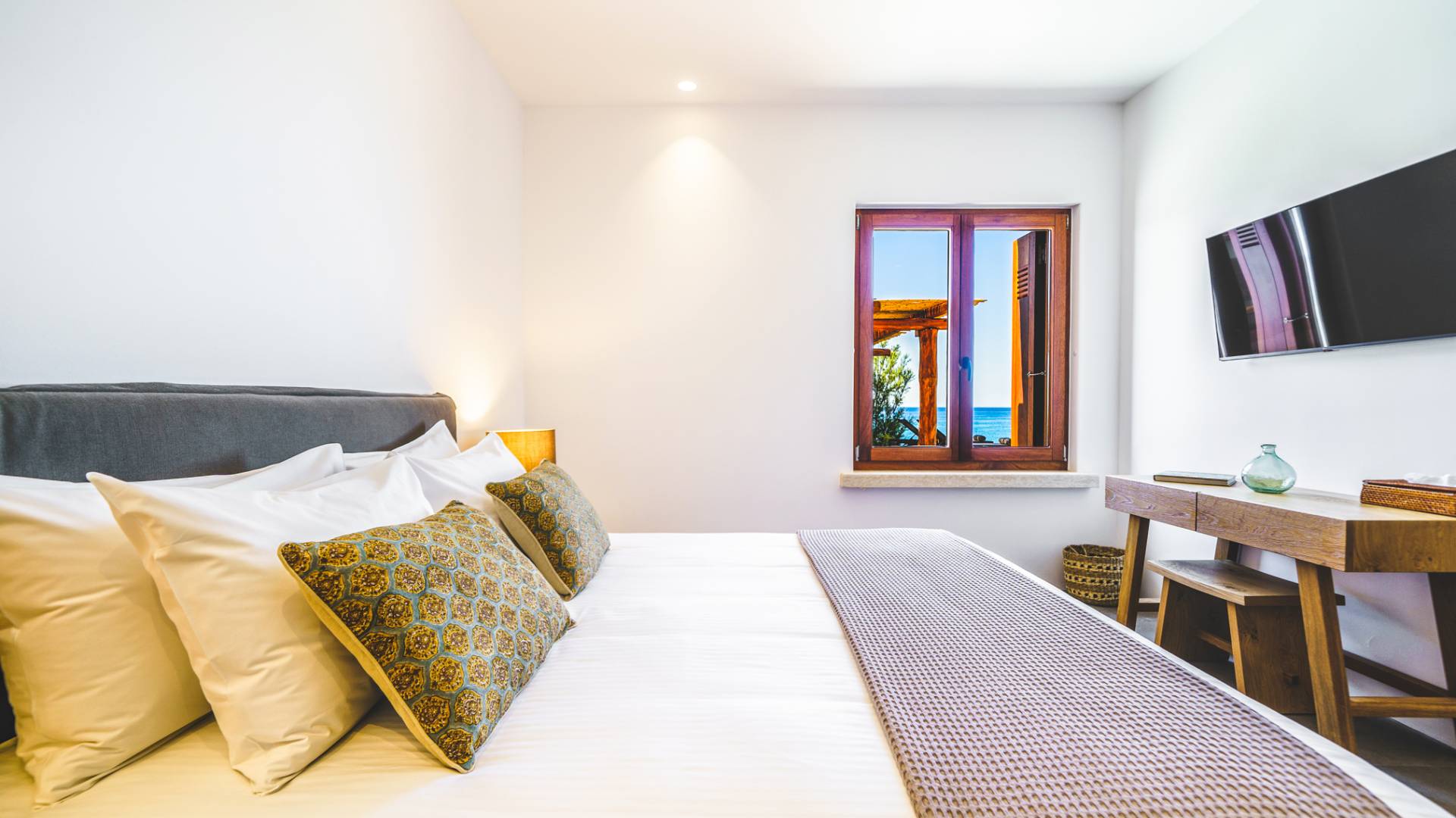 La spiaggia di Arvi è un paradiso per i piccoli esploratori. Le sue acque poco profonde e cristalline sono sicure per giocare e fare il bagno, e la sabbia soffice è perfetta per costruire castelli o raccogliere conchiglie. La piscina della villa offre un luogo sicuro per nuotare sotto l’occhio vigile degli adulti, e l’ambiente tranquillo significa tanto spazio per i giochi, lontano dal trambusto dei resort affollati. Nelle vicinanze, le famiglie possono fare brevi gite in barca verso calette nascoste, visitare una fattoria locale per incontrare capre e asini o seguire facili sentieri costieri adatti anche ai più piccoli avventurieri.