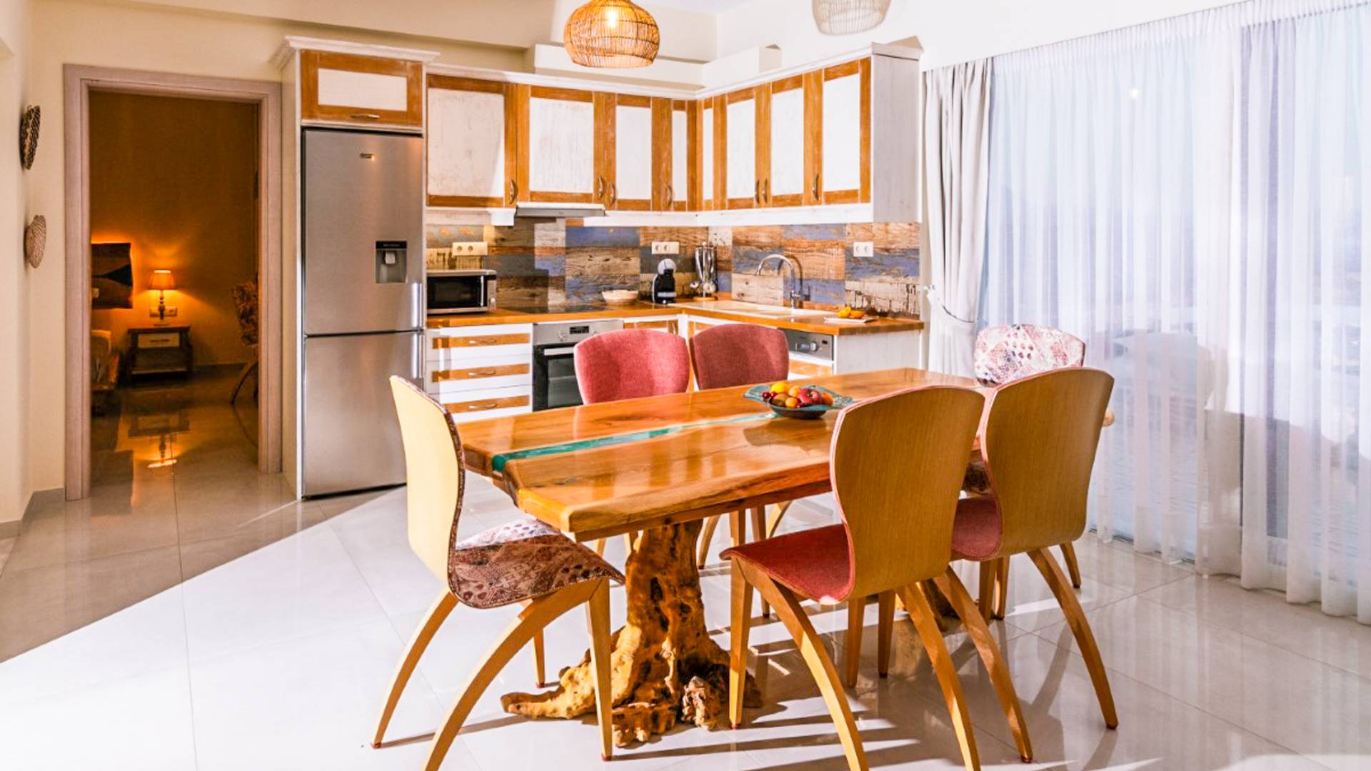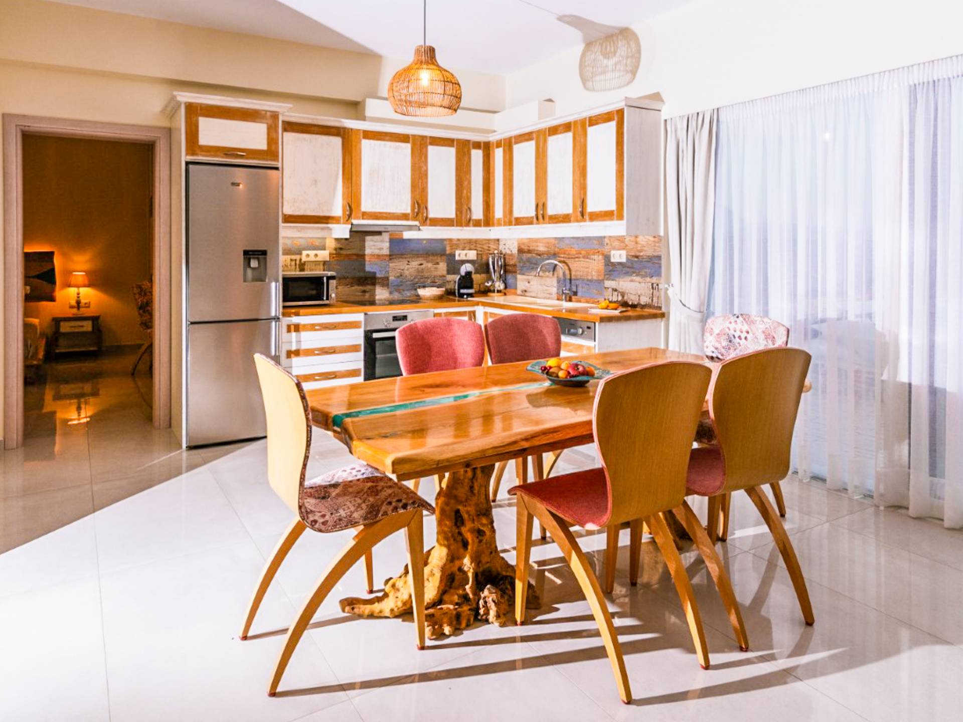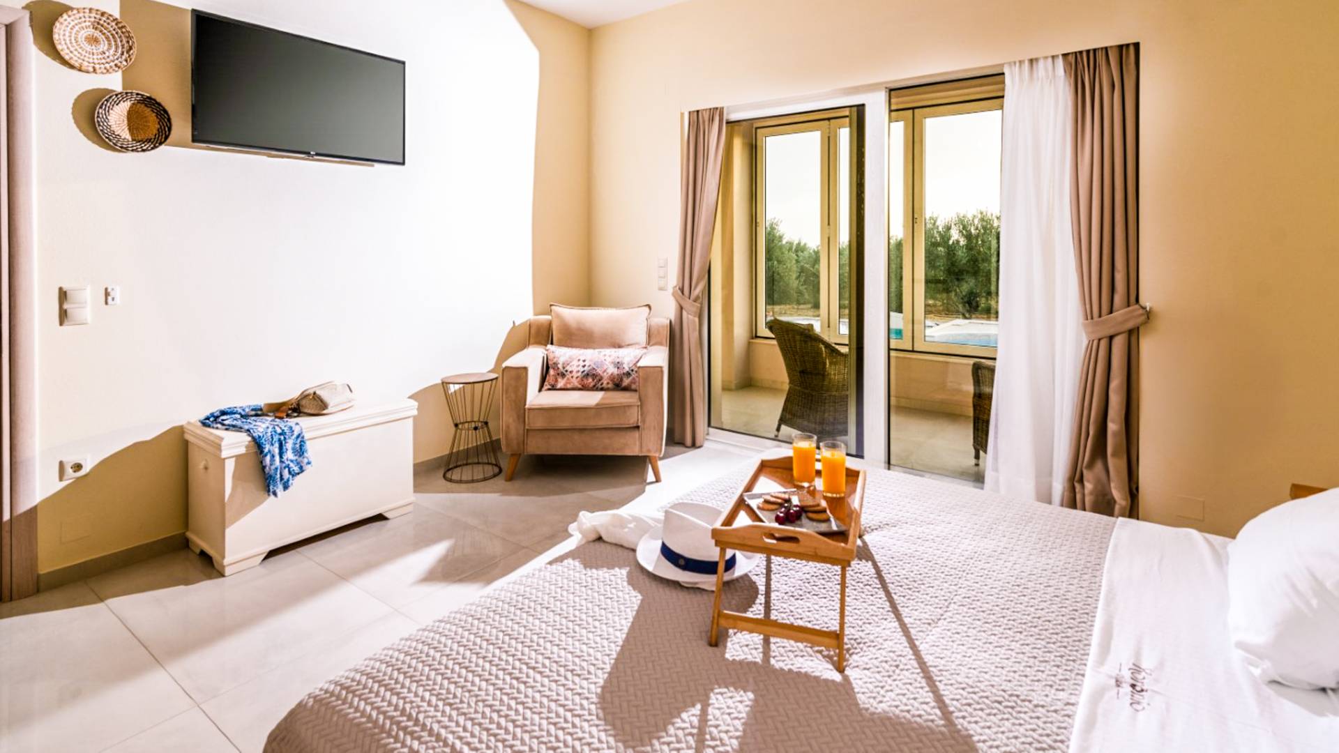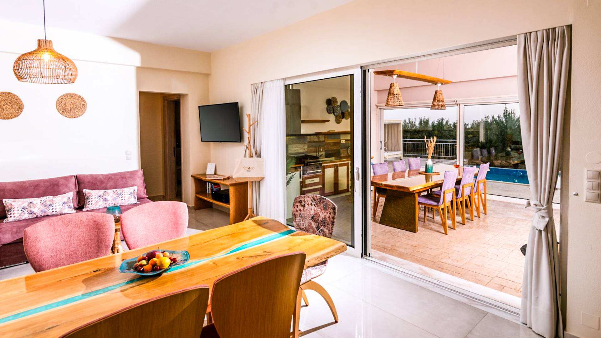 All'interno, Villa Karanna Deluxe Crete è strutturata in modo molto confortevole e gli arredi di alta qualità si fondono armoniosamente con il concetto decorativo generale.