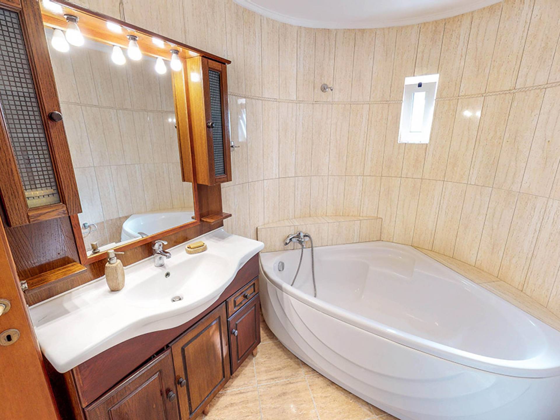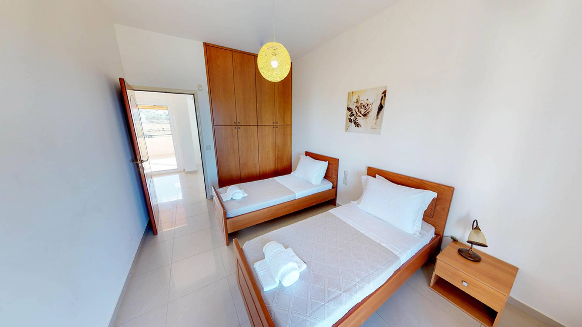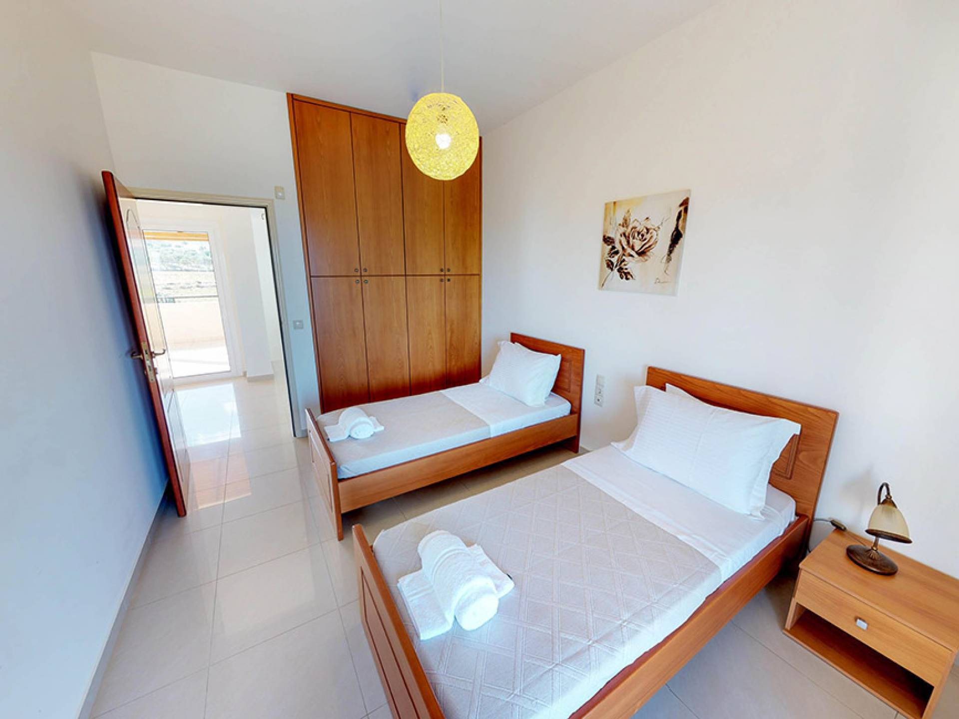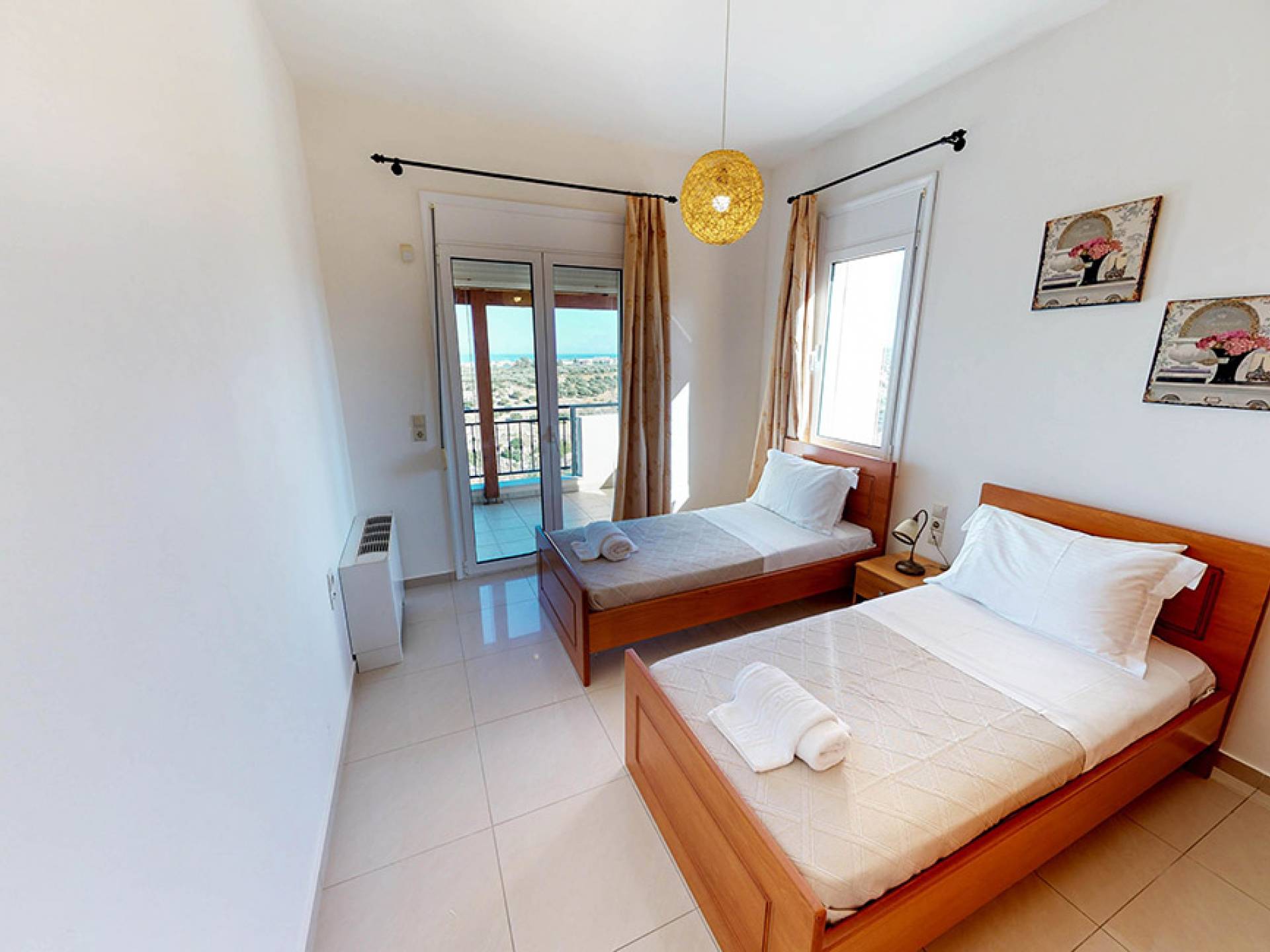 Villa Margaret 2 Heraklion è una casa di tre piani ben arredata. Il piano seminterrato è composto da una cucina a pianta aperta completamente attrezzata e un soggiorno che si affaccia sulla piscina privata, un bagno con vasca e WC, una camera con letto matrimoniale, una camera con due letti singoli e un WC privato. L'ingresso principale di Villa Antzela Heraklion al piano intermedio si apre su un ampio salotto illuminato dal sole con una cucina a pianta aperta completamente attrezzata. Su questo piano si trova anche una camera doppia con letto matrimoniale e un bagno con doccia idromassaggio, WC e lavatrice. Al piano superiore ci sono altre due camere da letto con letti singoli e un bagno dotato di vasca idromassaggio e WC. Ogni lato del noleggio di lusso ha balconi su cui puoi rilassarti e goderti la magnifica vista.