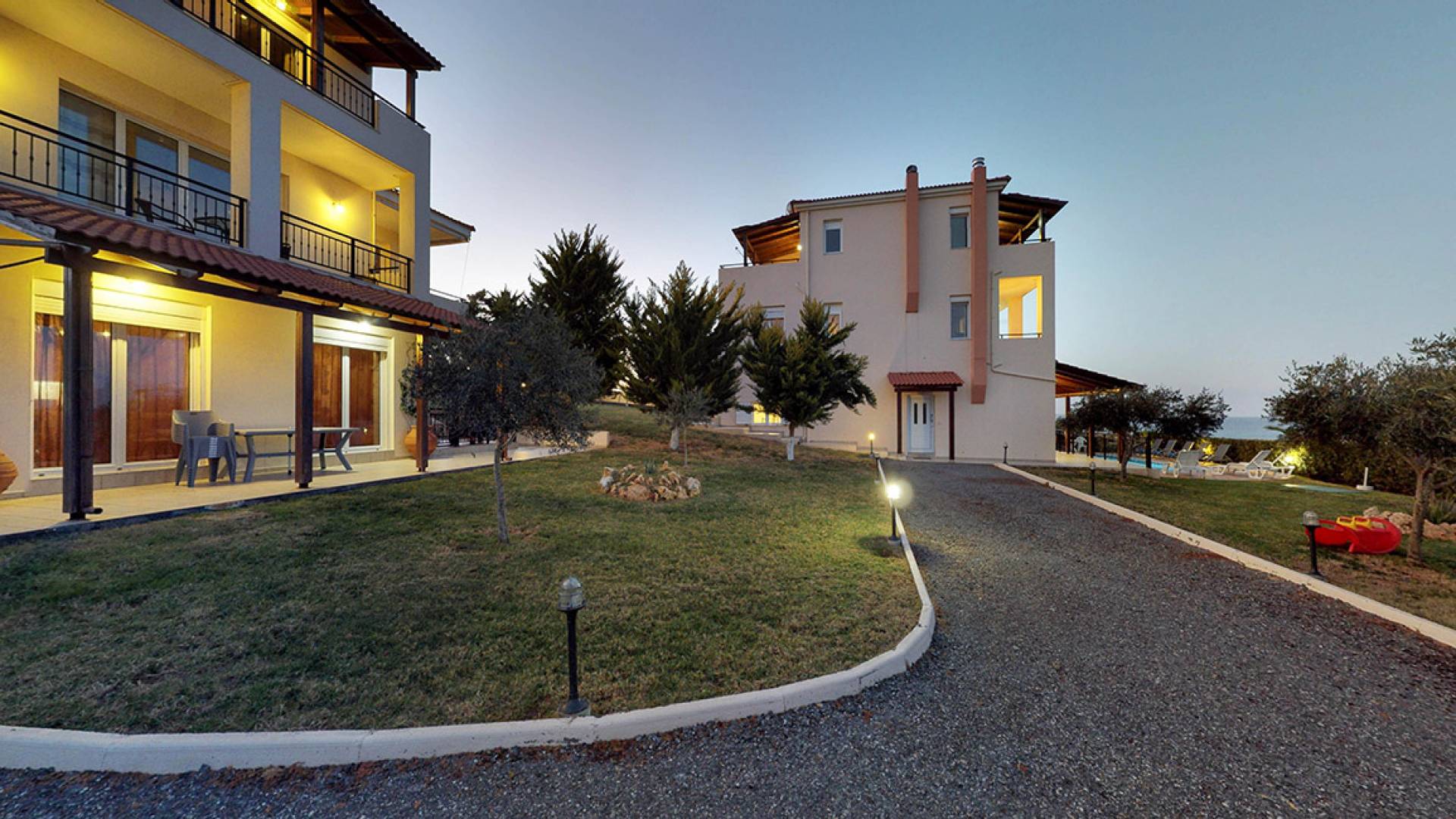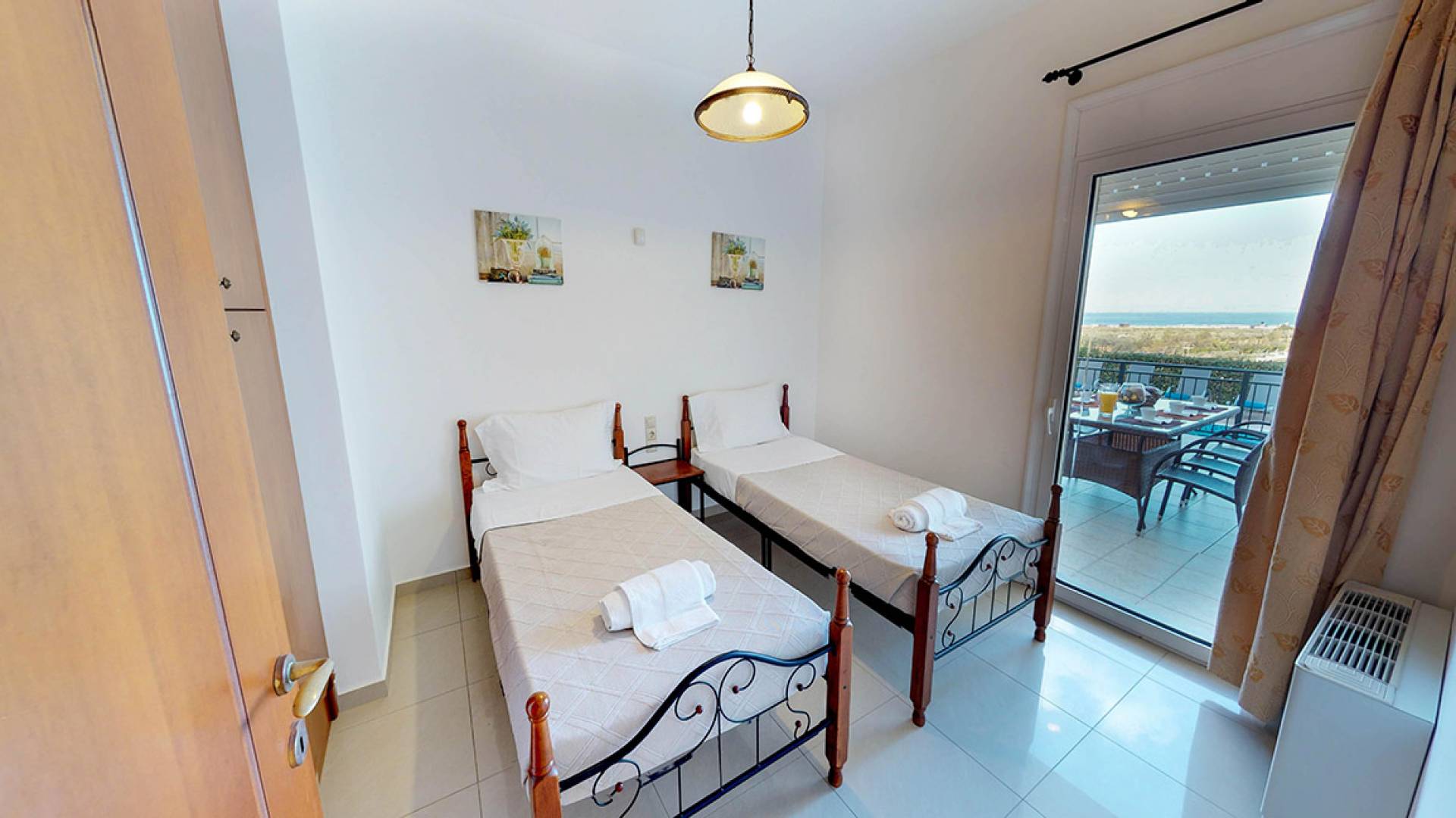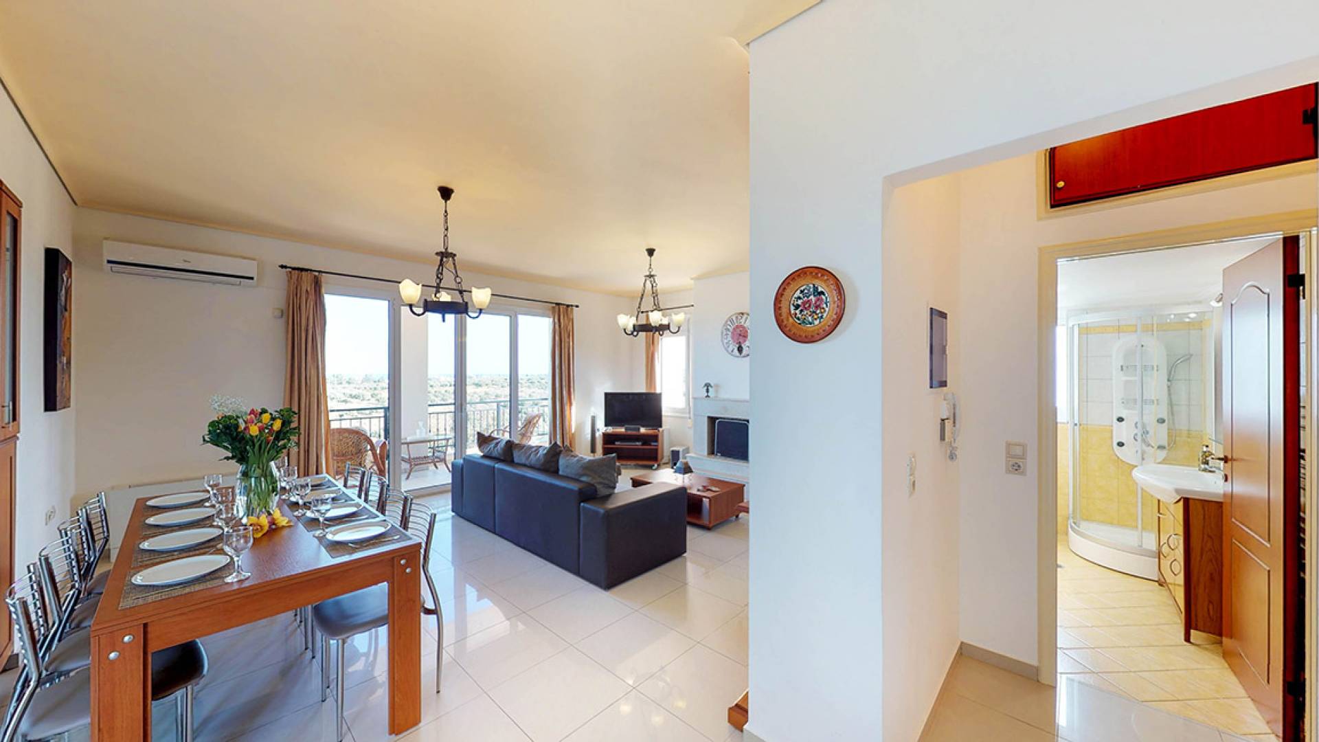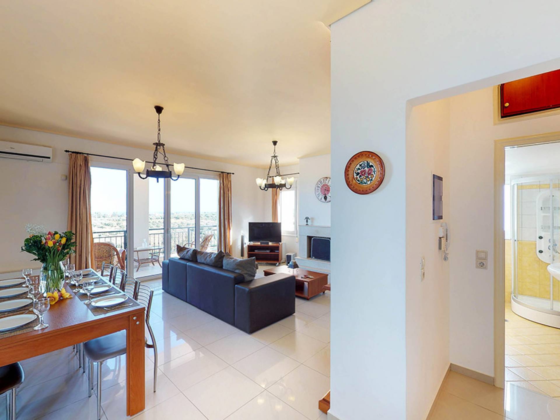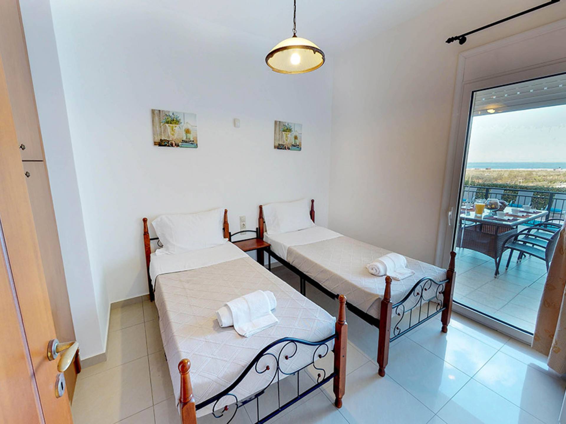 Villa Margaret 2 Heraklion è una casa di tre piani ben arredata. Il piano seminterrato è composto da una cucina a pianta aperta completamente attrezzata e un soggiorno che si affaccia sulla piscina privata, un bagno con vasca e WC, una camera con letto matrimoniale, una camera con due letti singoli e un WC privato. L'ingresso principale di Villa Antzela Heraklion al piano intermedio si apre su un ampio salotto illuminato dal sole con una cucina a pianta aperta completamente attrezzata. Su questo piano si trova anche una camera doppia con letto matrimoniale e un bagno con doccia idromassaggio, WC e lavatrice. Al piano superiore ci sono altre due camere da letto con letti singoli e un bagno dotato di vasca idromassaggio e WC. Ogni lato del noleggio di lusso ha balconi su cui puoi rilassarti e goderti la magnifica vista.