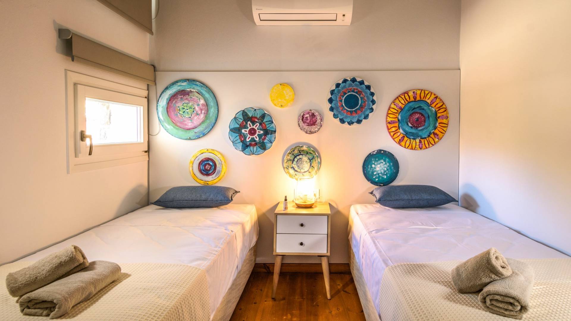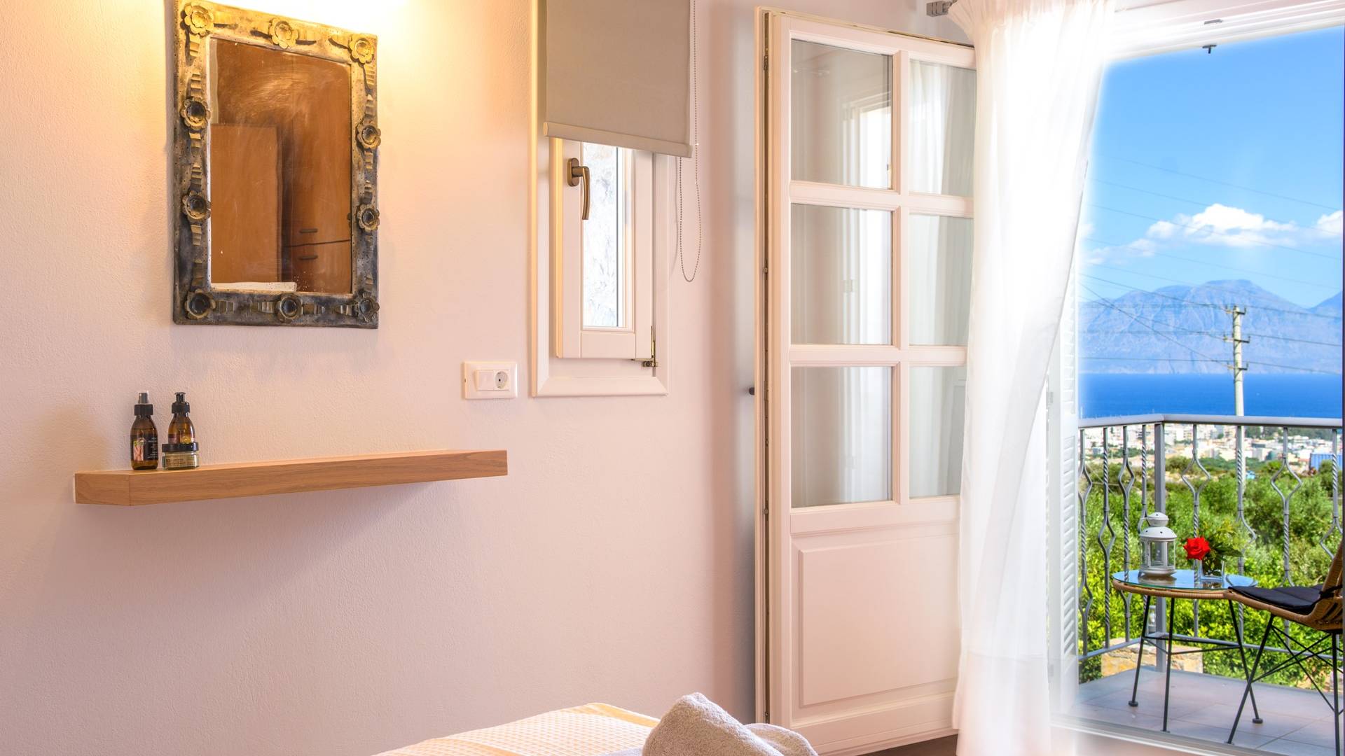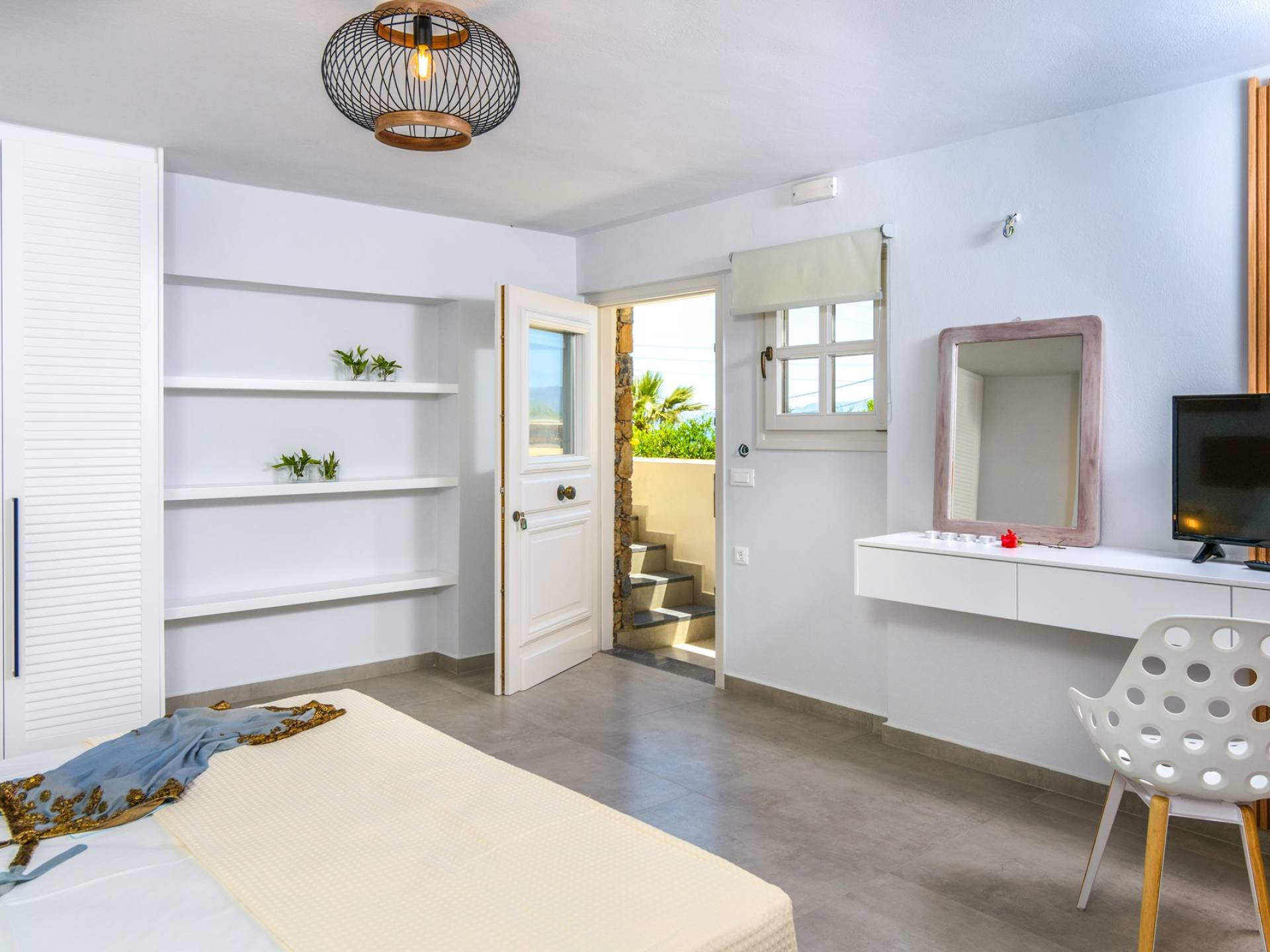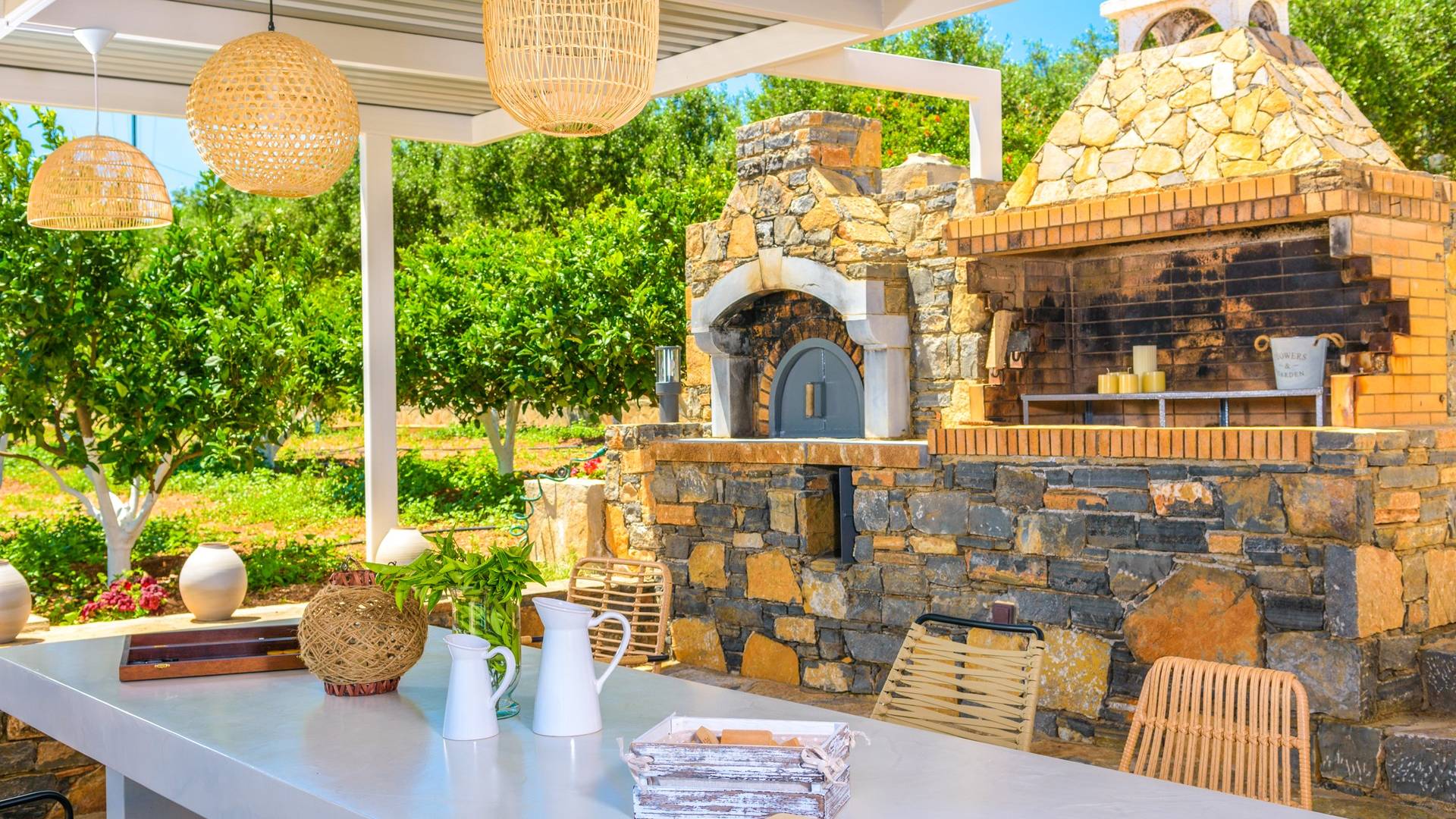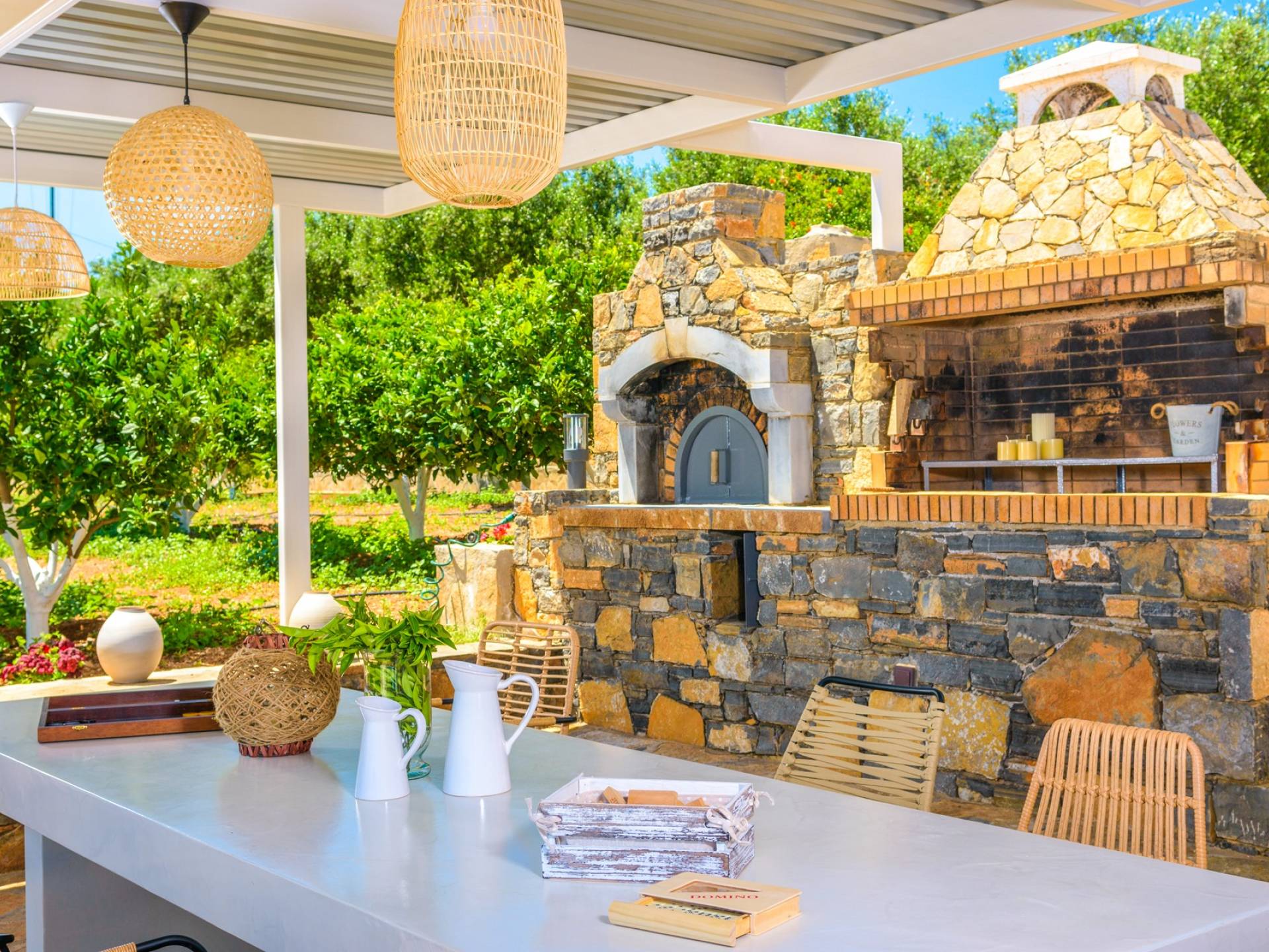 La tenuta è composta da 4000 mq di terreno seminativo e verdeggiante con 70 ulivi, 30 alberi di agrumi, un vigneto, orti con ortaggi, fiori, erbe aromatiche e un giardino di banani che è circondato da una rete speciale per proteggere il alberi dal forte vento. Tutte le piante, così come i frutti della generosa terra cretese, prosperano qui e il posto sembra un paradiso in terra.