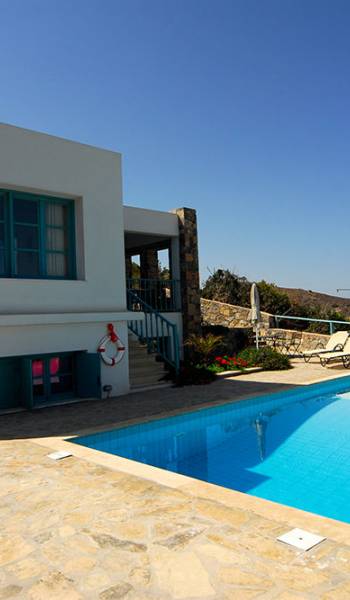 Al livello inferiore, una scala interna conduce dal soggiorno e dall'angolo cottura al livello inferiore, dove si trovano anche due camere da letto e un bagno decorato con colori, arredi e attrezzature simili. Calypso Villa Mochlos è indipendente, garantendo la massima privacy con l'area circostante, le verande, i patii e il verde. La villa dispone anche di una piscina e di diversi posti auto. Naturalmente è previsto un servizio di pulizia giornaliero (tranne la domenica).
