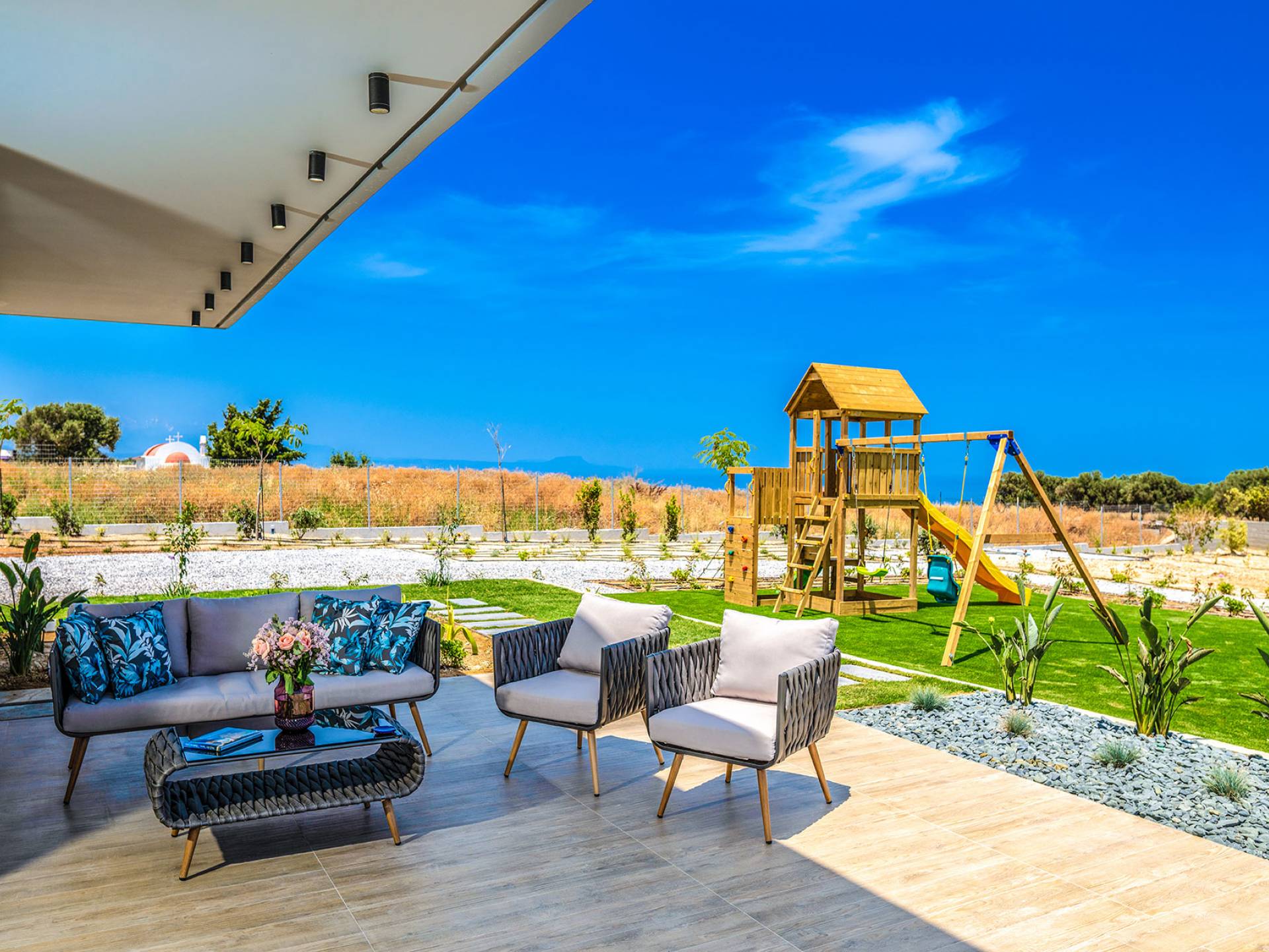 Nell'area esterna c'è molto spazio tra cui una zona pranzo con patio e un parcheggio privato. Tutta la famiglia si divertirà nella piscina a sfioro e i bambini adoreranno l'area giochi. Spaziosa, arredata in modo semplice ma elegante e piena di cose da fare, Villa Orizontes Rethymno è sicuramente una scelta da considerare se stai cercando di trascorrere del tempo di qualità con i tuoi cari, leggermente lontano dal resto del mondo, ma abbastanza vicino per unirti torna ogni volta che ne hai voglia. Il più vicino possibile al paradiso!