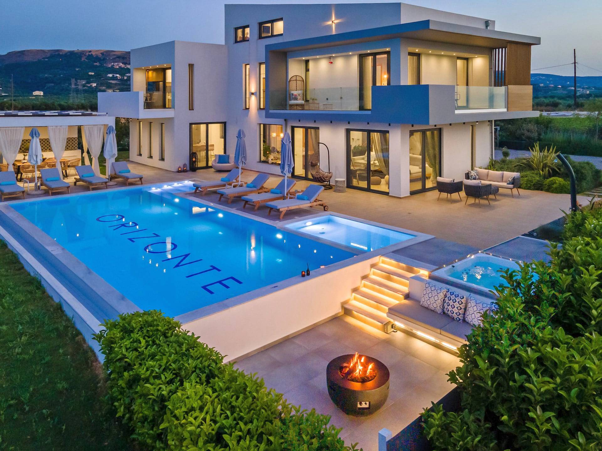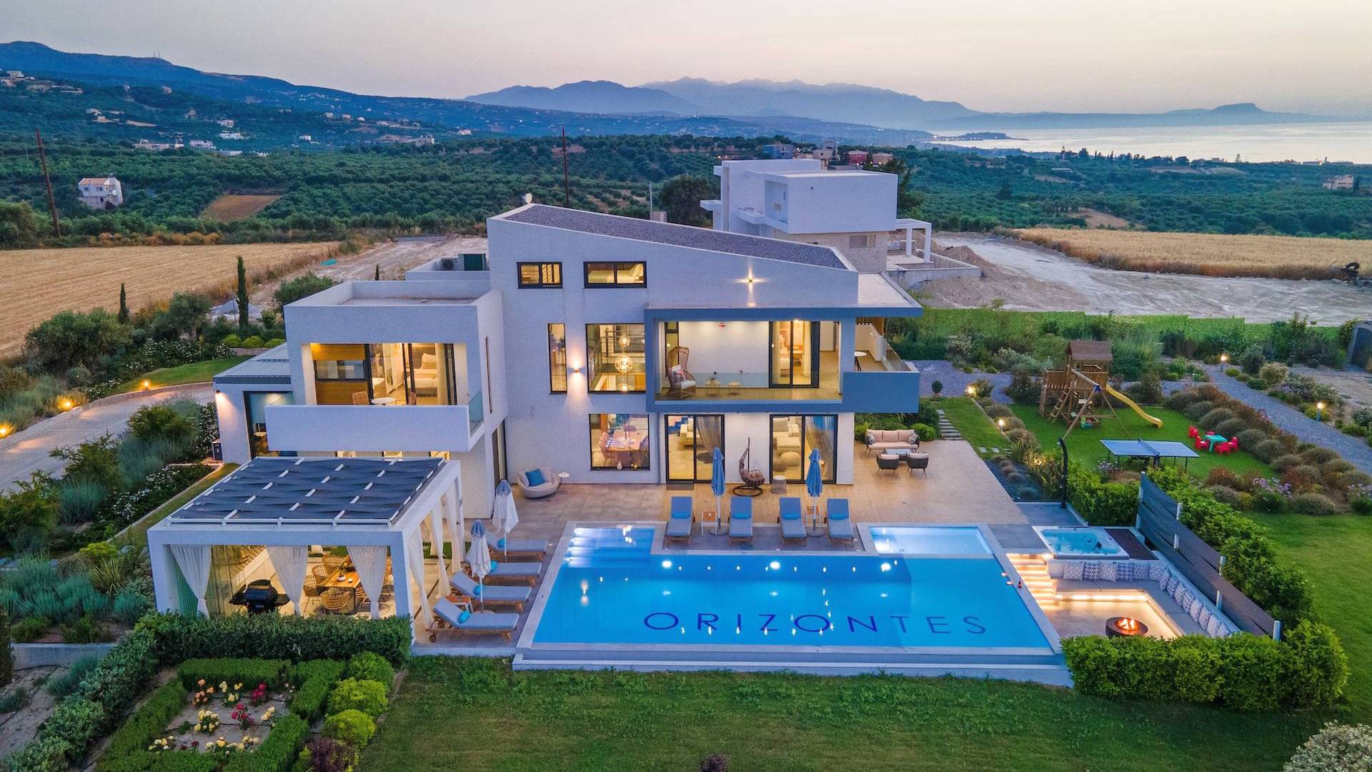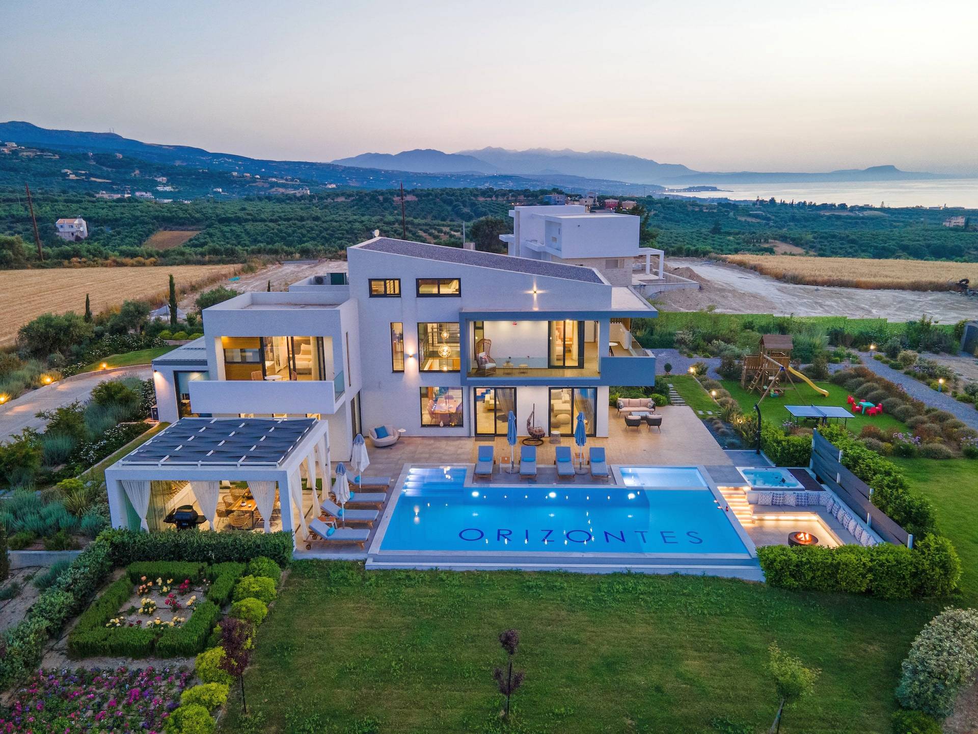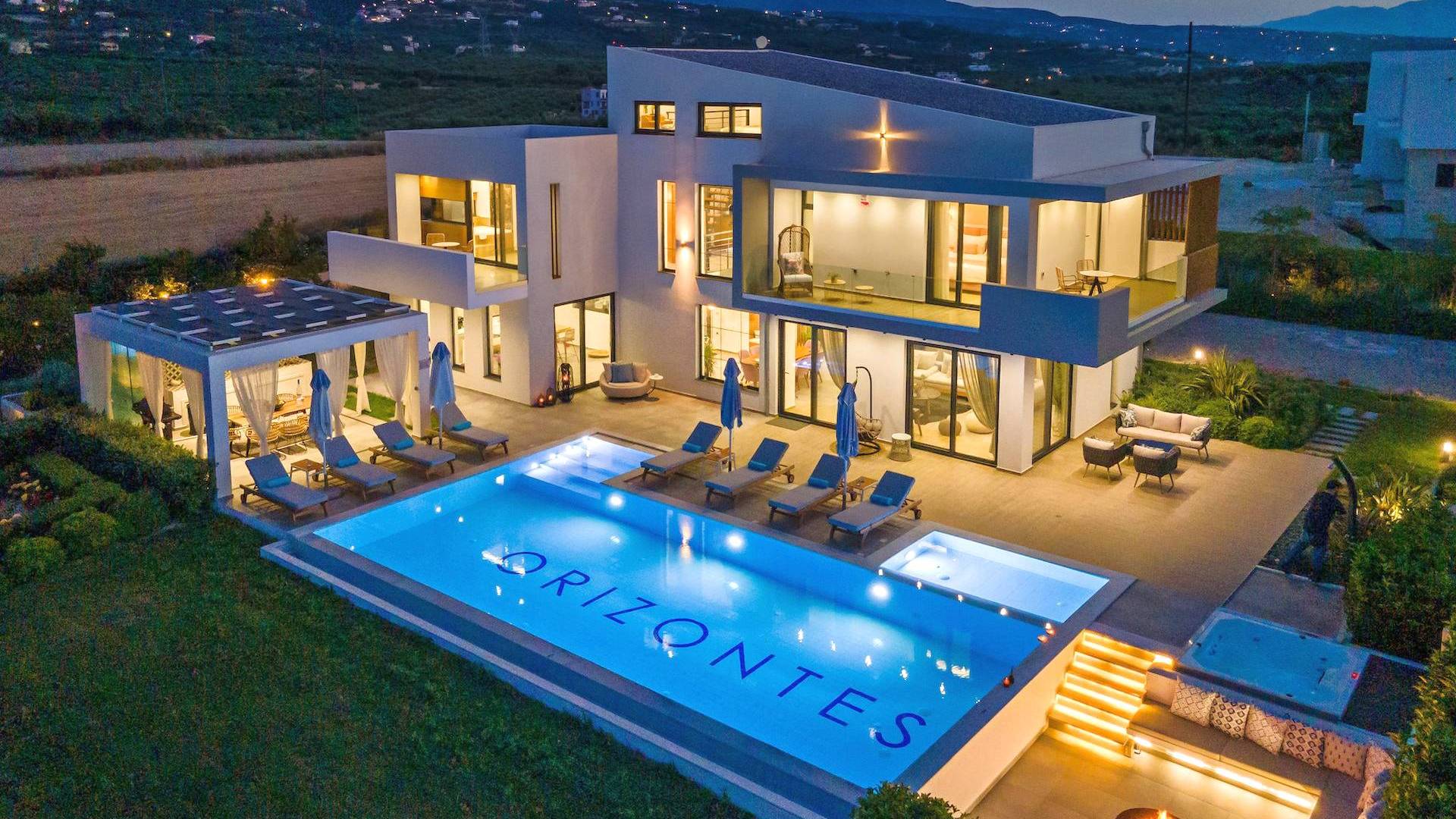 Villa Orizontes Rethymno è una villa di lusso in affitto con 4 camere da letto e una piscina privata. L'Orizontes Deluxe Residence può ospitare fino a 9 persone, fornendo sistemazioni comode e convenienti all'interno dei suoi spazi interni ed esterni. All'interno di un appezzamento di terreno di 4 acri, completamente recintato, a 8 km dalla città di Rethymno ea soli 2 km dalla località turistica e dalla spiaggia di Adelianos Kampos, insignita della Bandiera Blu, si trova il Residence di nuova costruzione di 227 mq.