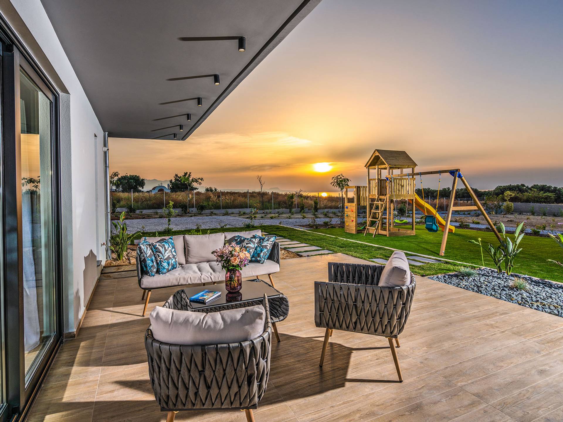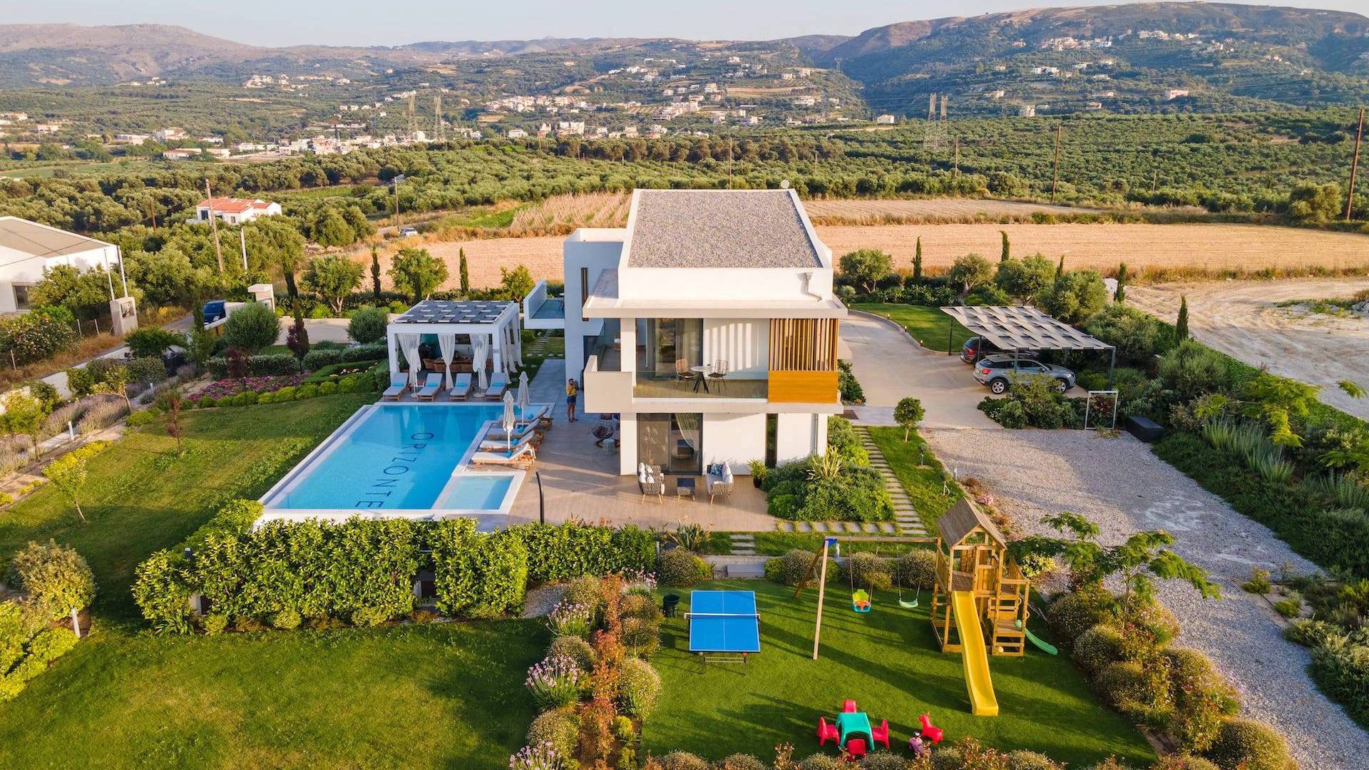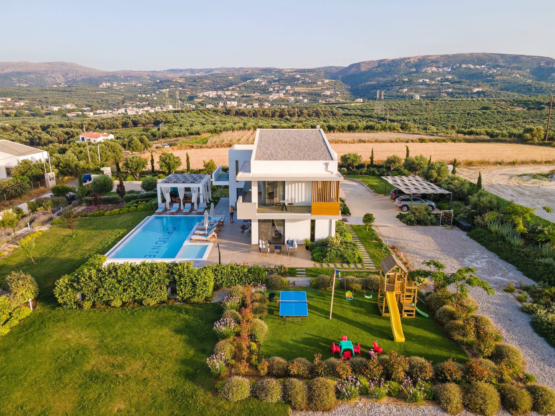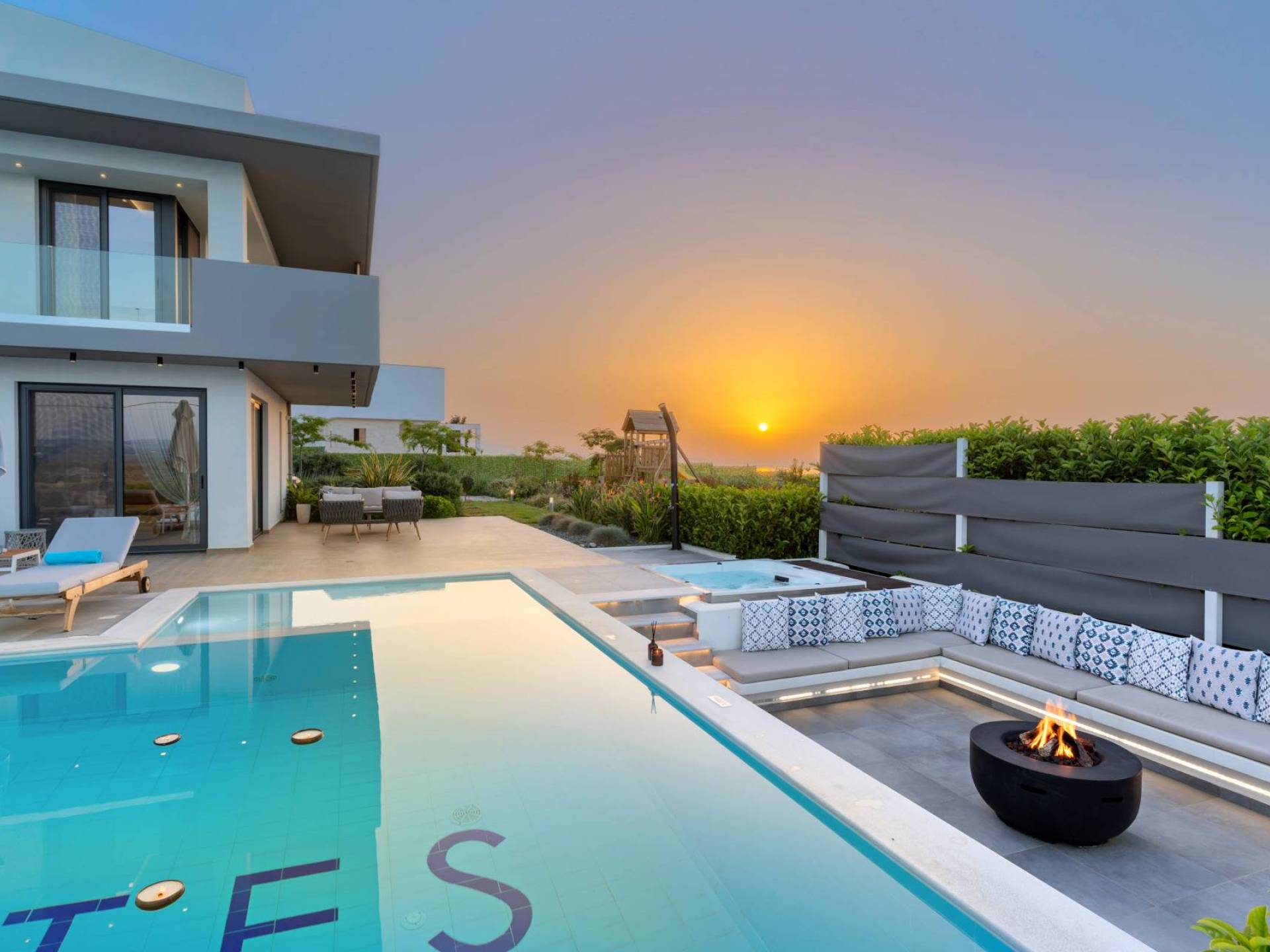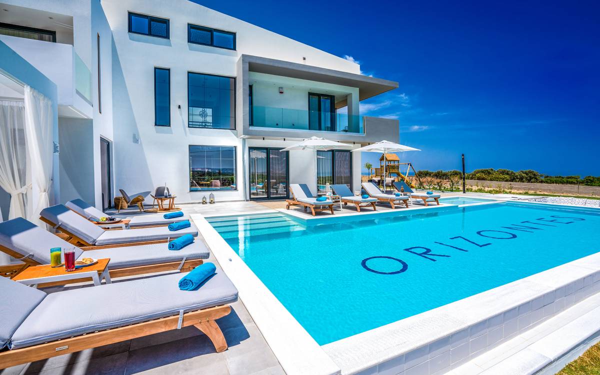 Villa Orizontes Rethymno è una villa di lusso in affitto con 4 camere da letto e una piscina privata. L'Orizontes Deluxe Residence può ospitare fino a 9 persone, fornendo sistemazioni comode e convenienti all'interno dei suoi spazi interni ed esterni. All'interno di un appezzamento di terreno di 4 acri, completamente recintato, a 8 km dalla città di Rethymno ea soli 2 km dalla località turistica e dalla spiaggia di Adelianos Kampos, insignita della Bandiera Blu, si trova il Residence di nuova costruzione di 227 mq.