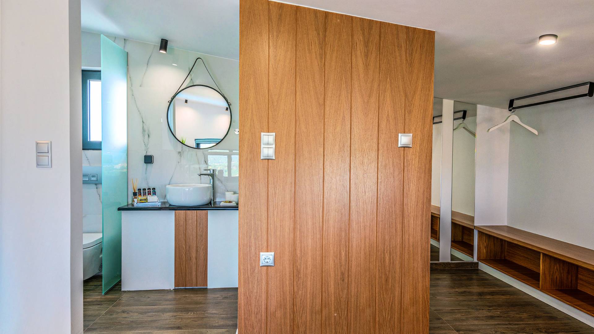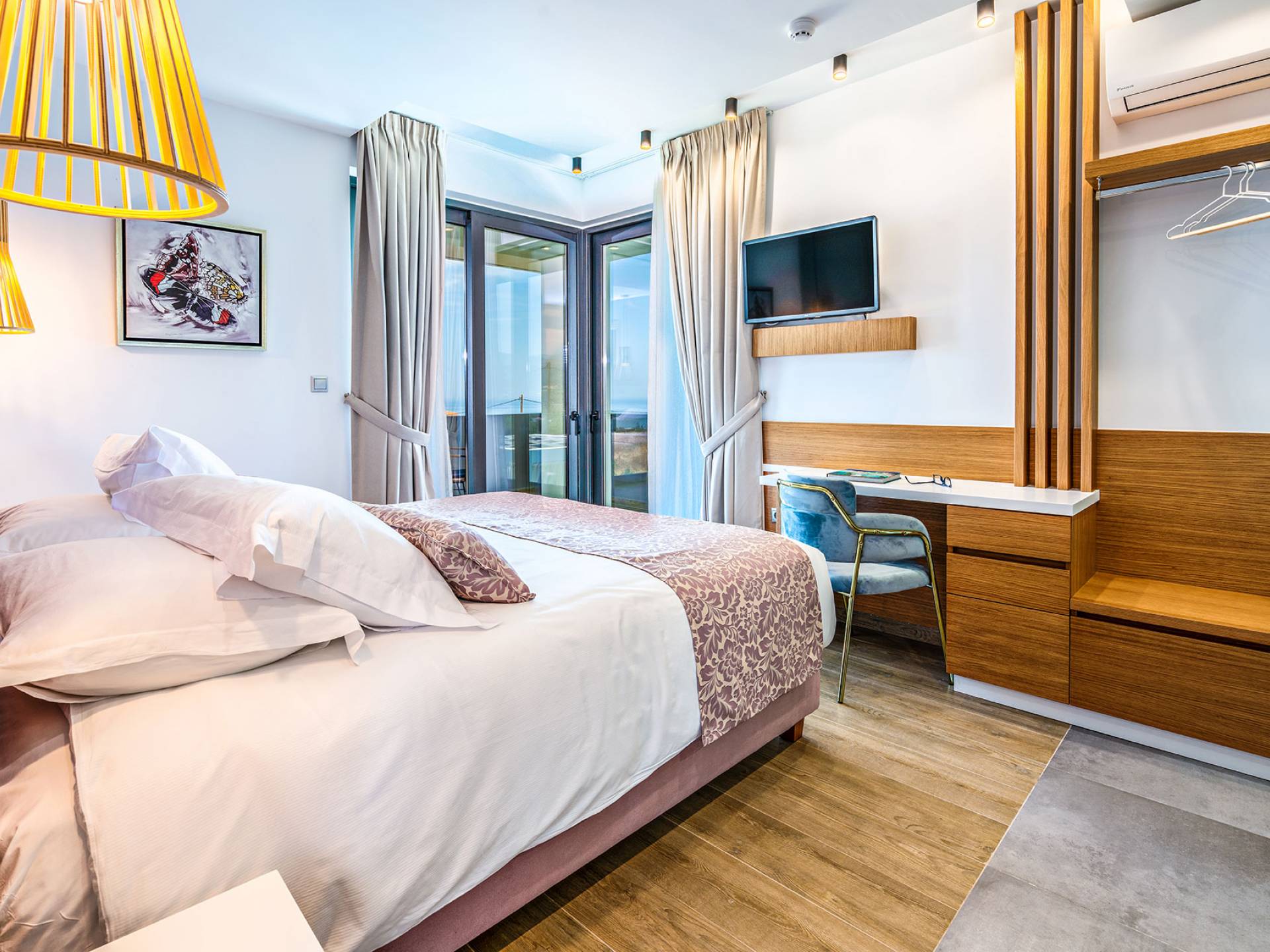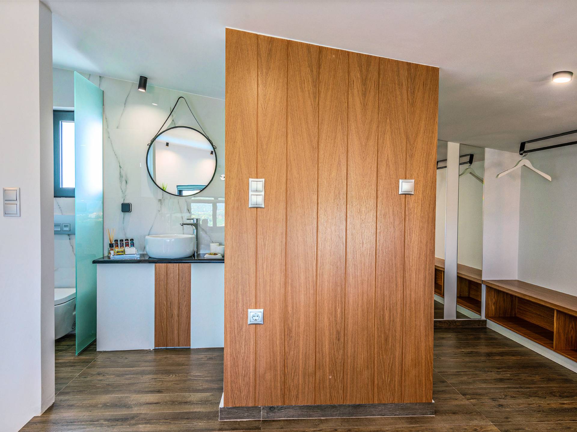 Utilizzando le scale o l'ascensore ci si trova al primo piano dove si trovano tre spaziose camere da letto, tutte con accesso ad un terrazzo privato. La camera da letto principale si trova nella magnifica vista Mansarda. Tutte le camere sono dotate di smart TV 32'', zanzariere, climatizzatori con tecnologia silenziosa e bagno privato.