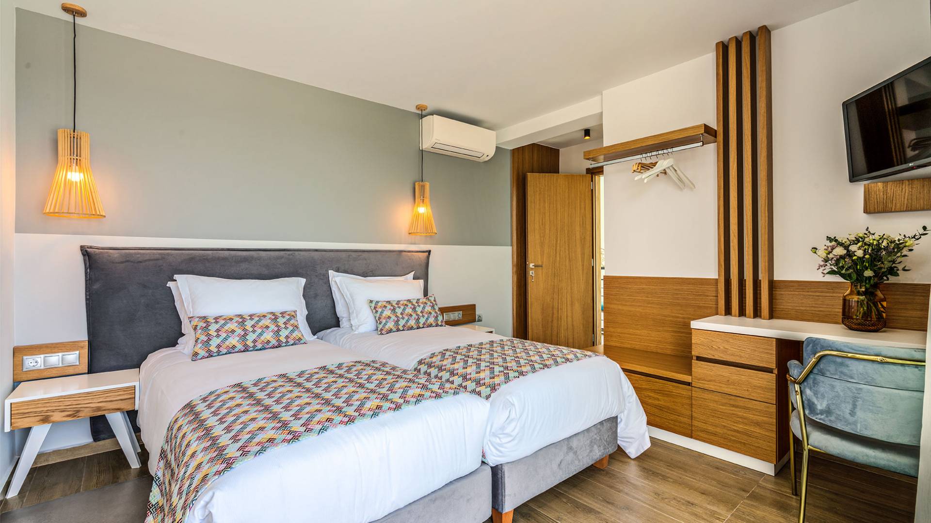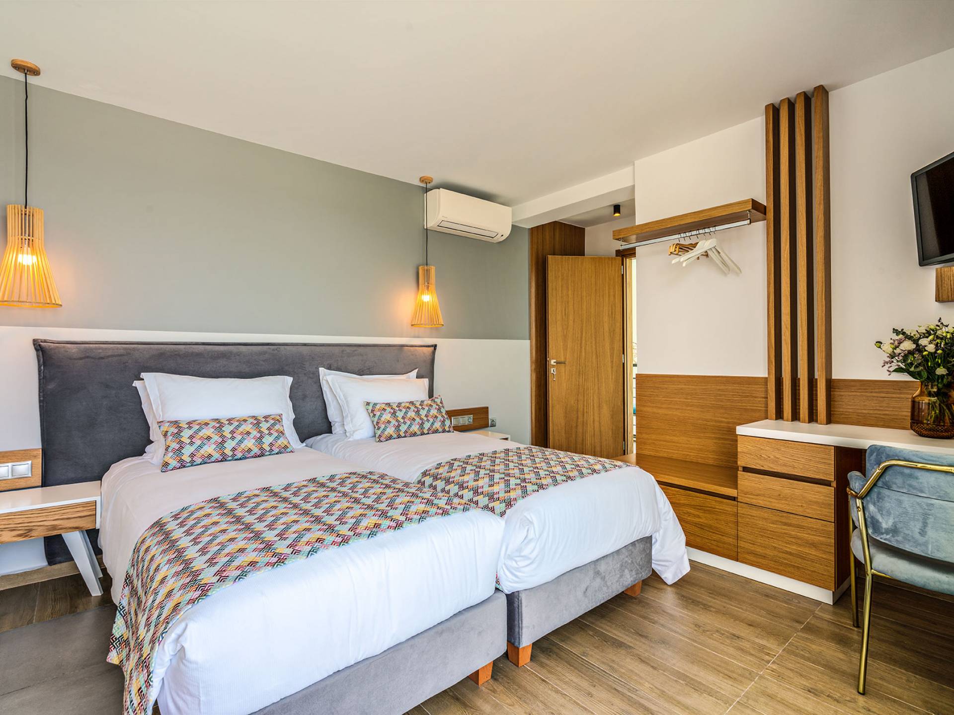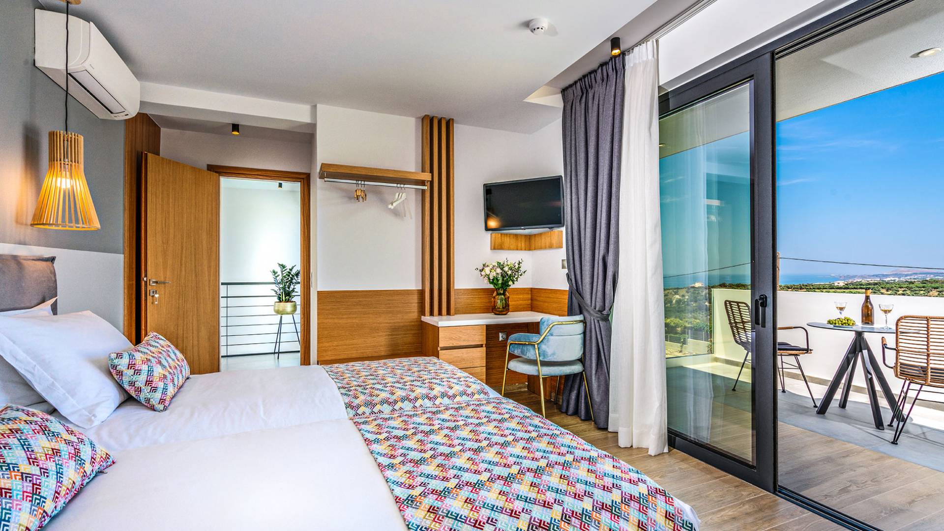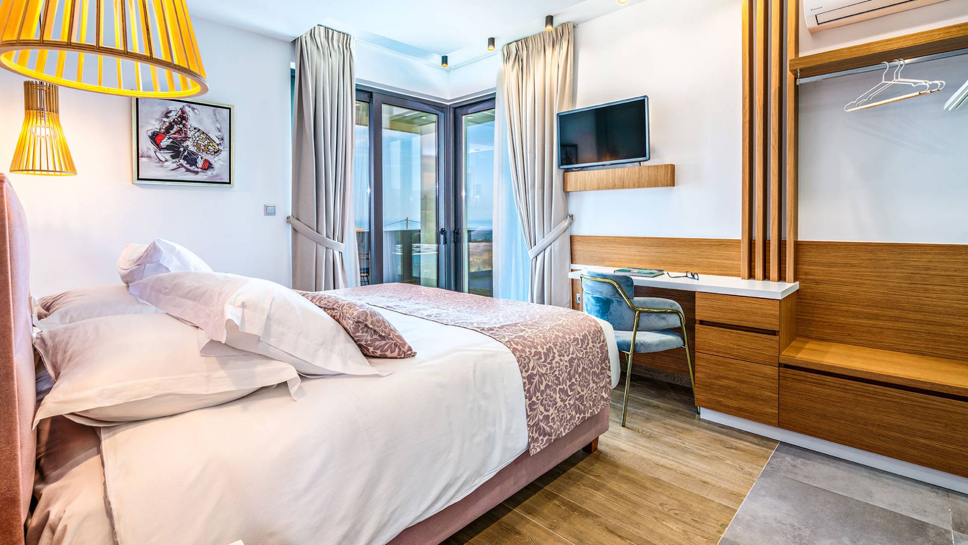 Utilizzando le scale o l'ascensore ci si trova al primo piano dove si trovano tre spaziose camere da letto, tutte con accesso ad un terrazzo privato. La camera da letto principale si trova nella magnifica vista Mansarda. Tutte le camere sono dotate di smart TV 32'', zanzariere, climatizzatori con tecnologia silenziosa e bagno privato.